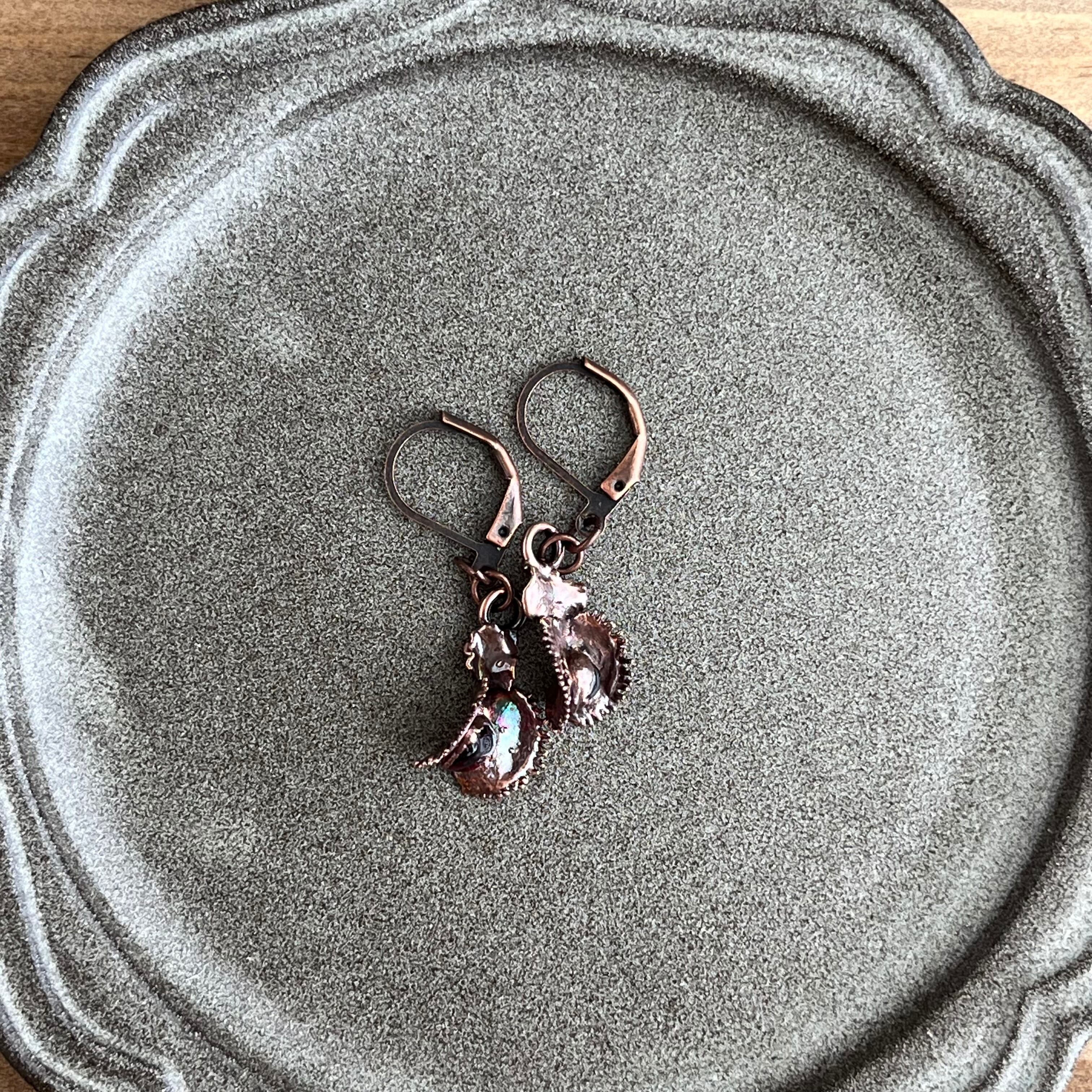 作者が世界で一番大好きな食虫植物・ハエトリグサの捕虫葉で制作したピアス(イヤリング)です。