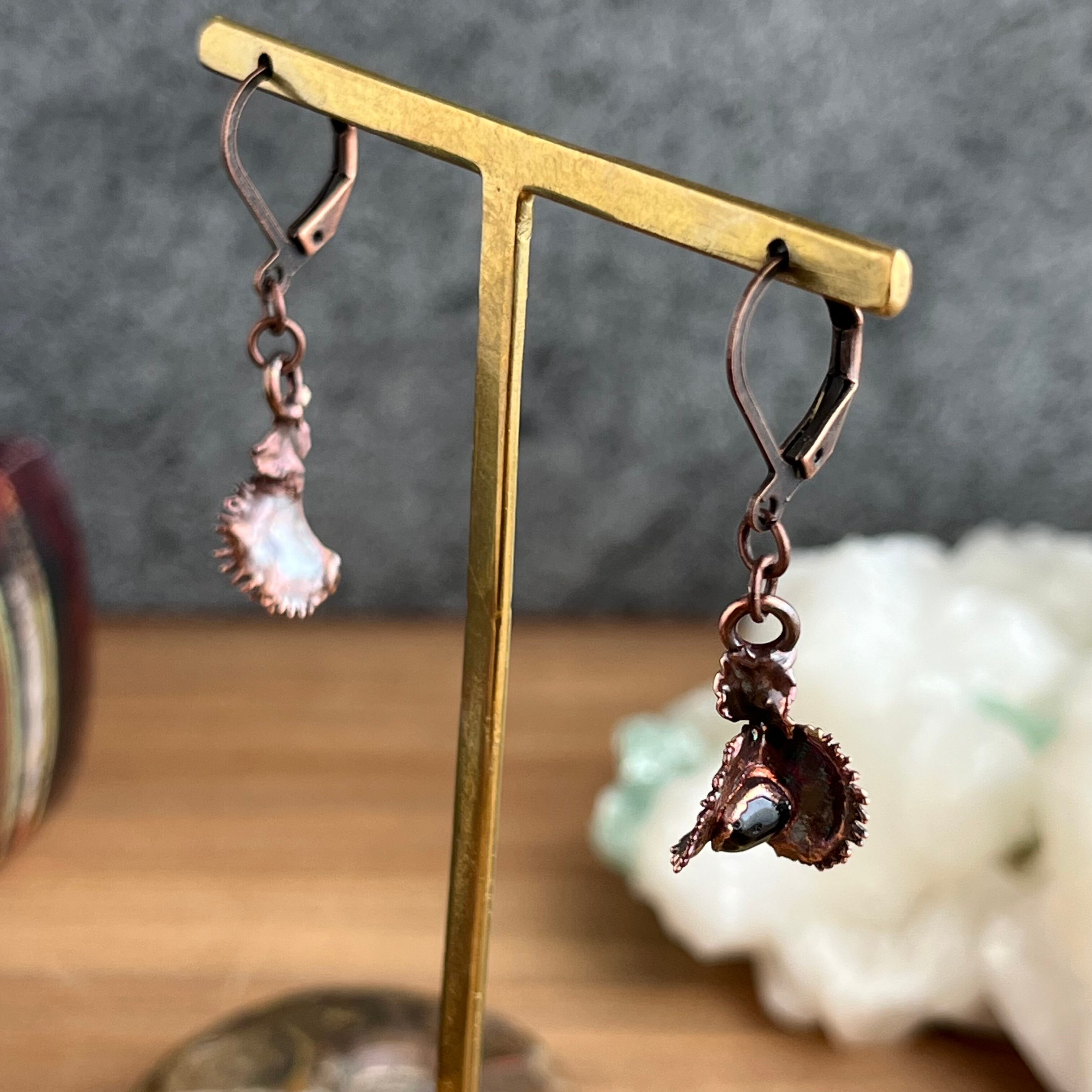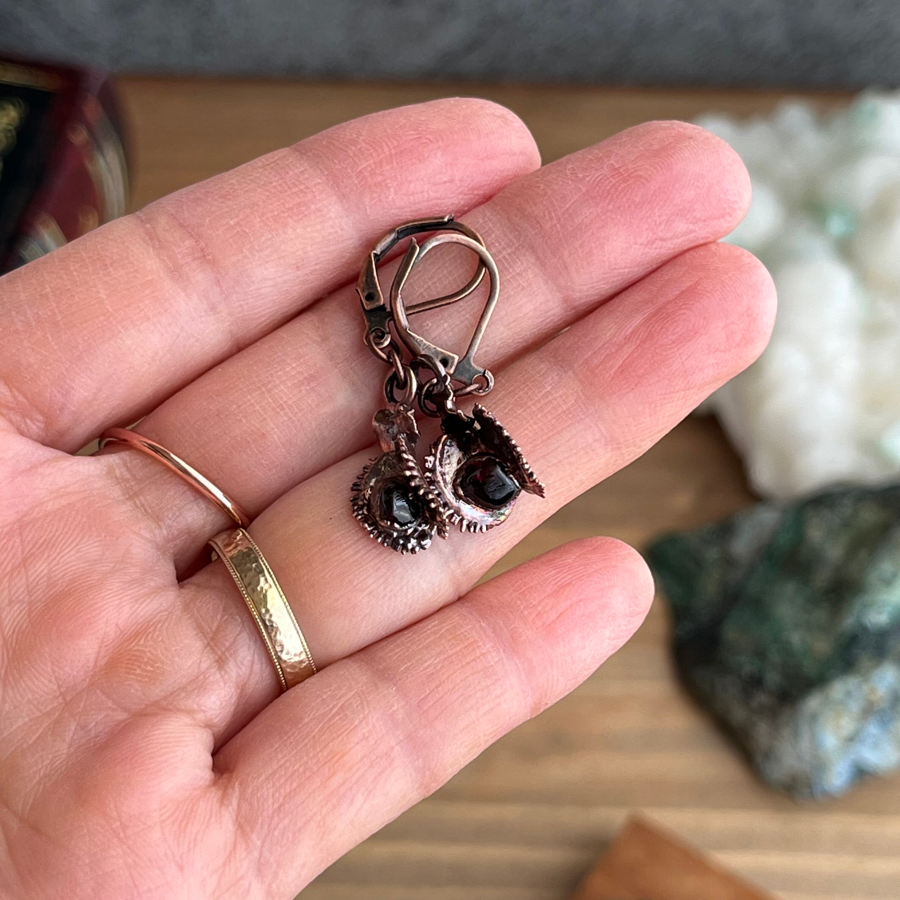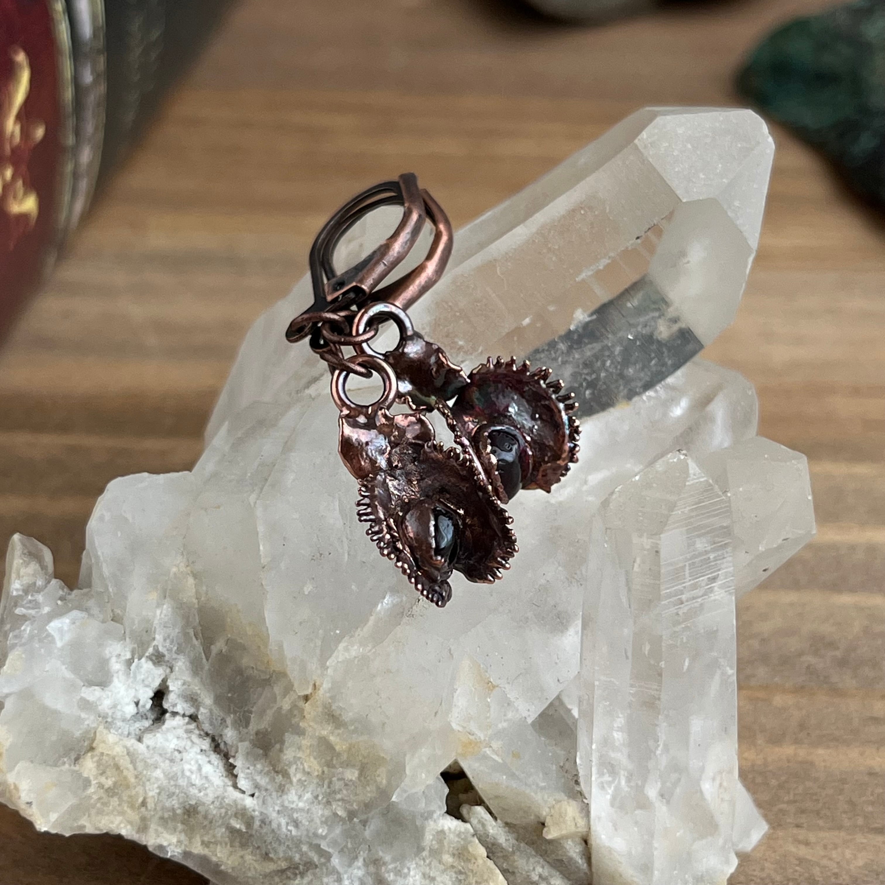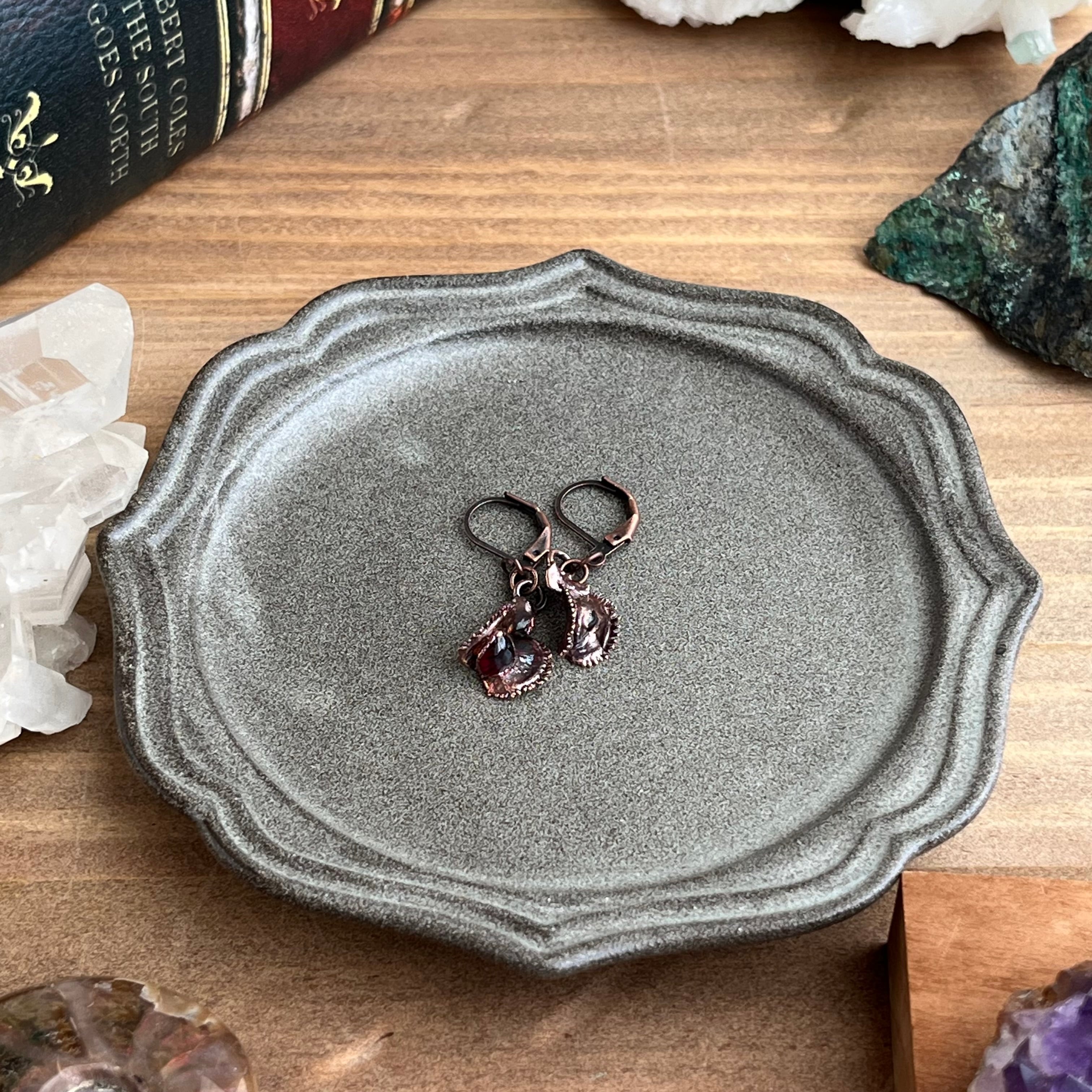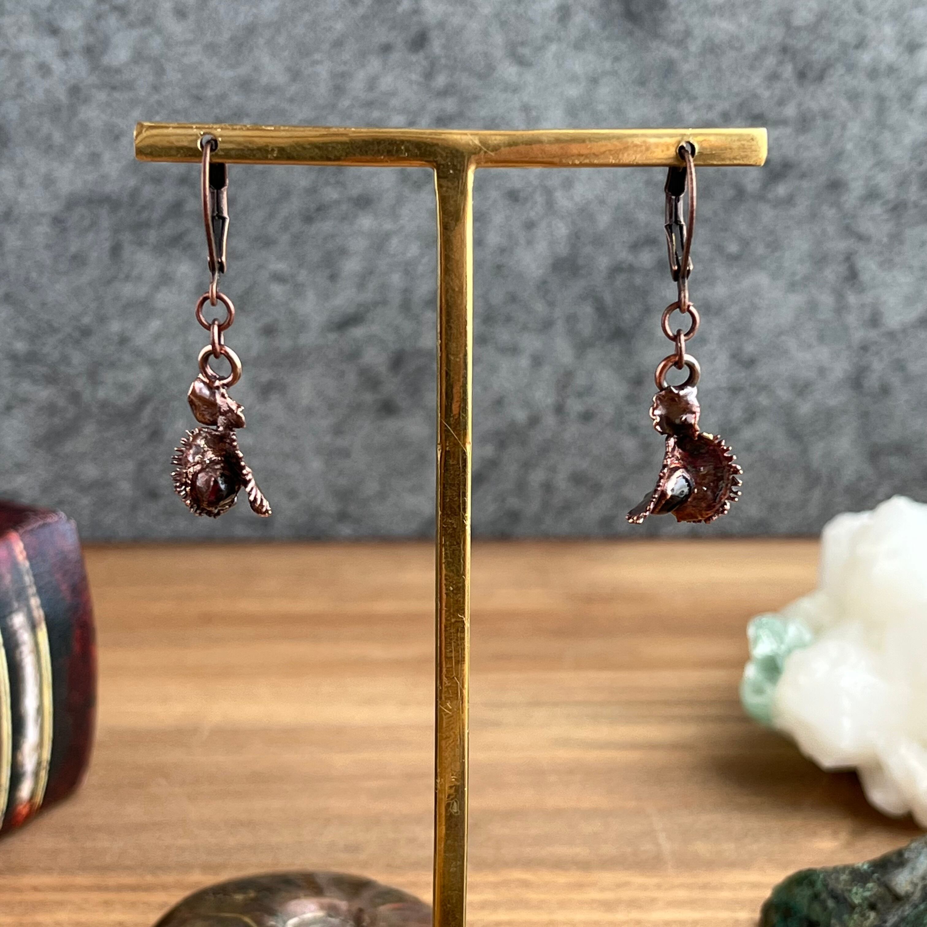宝石を食べたハエトリグサのピアス②(ガーネット×アンティーク)