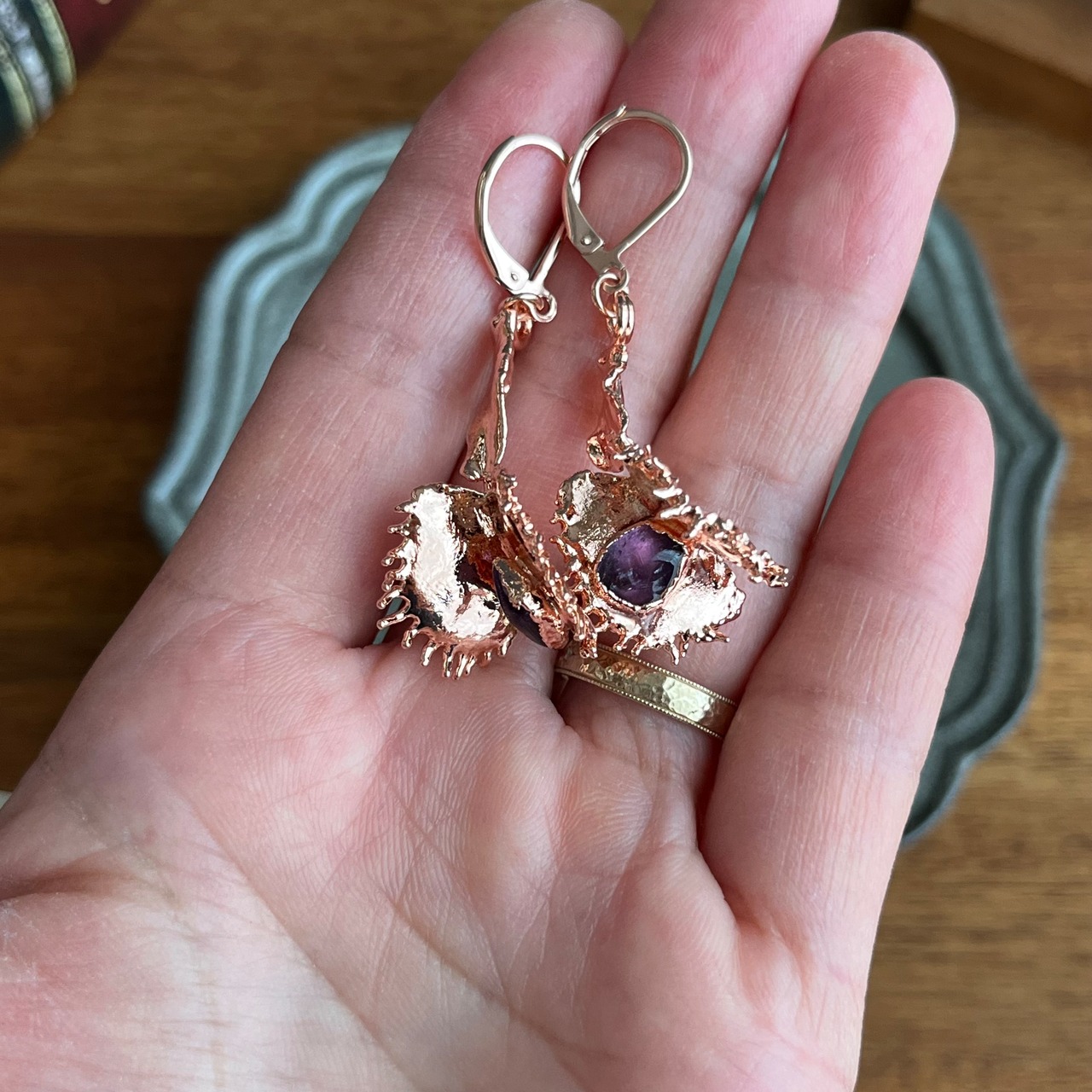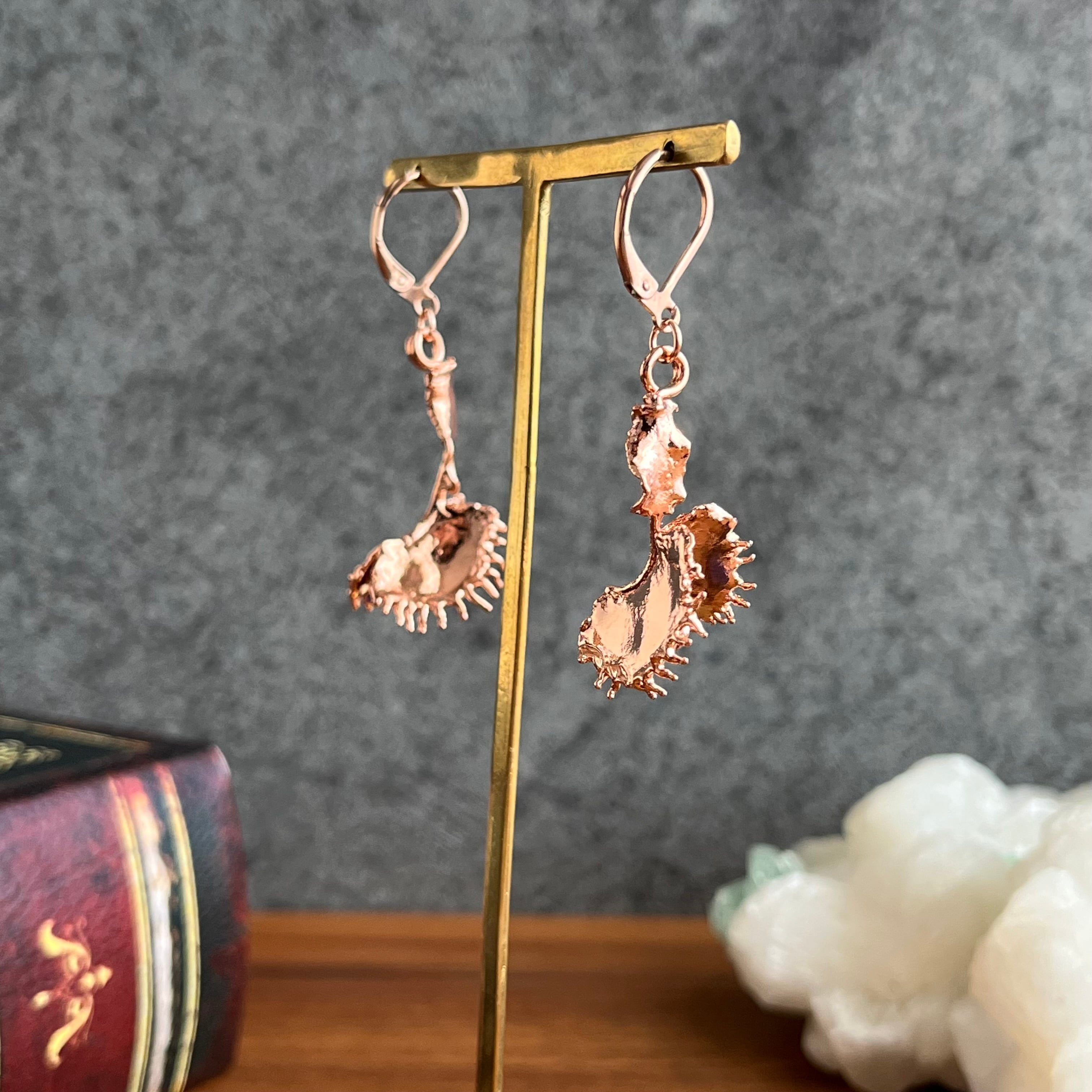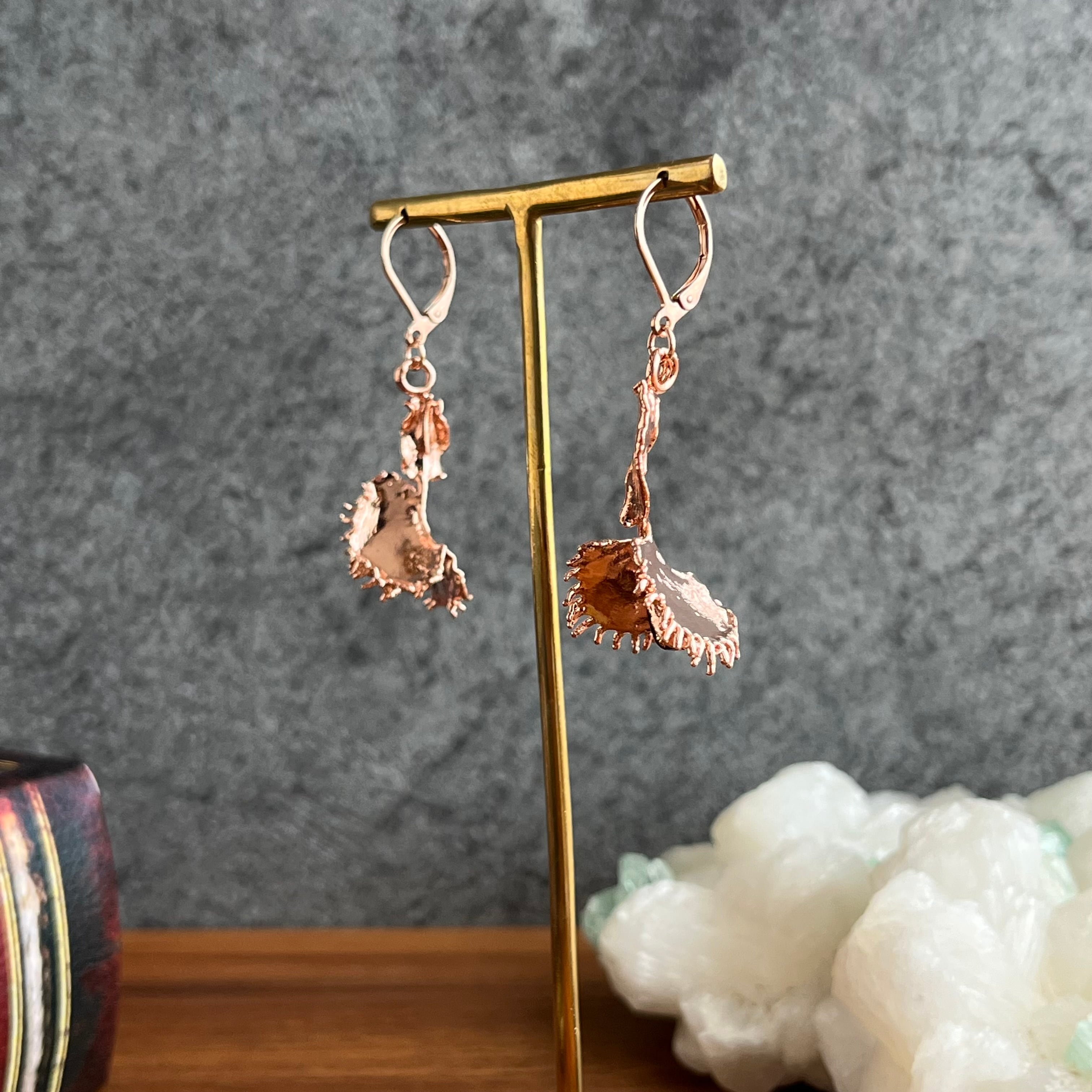 これまで、レジンの作品では棘が残ってしまいアクセサリーに仕立てることができませんでしたが、エレクトロフォーミングを取り入れたことで作者お気に入りのdumplingを耳飾りにすることができました。