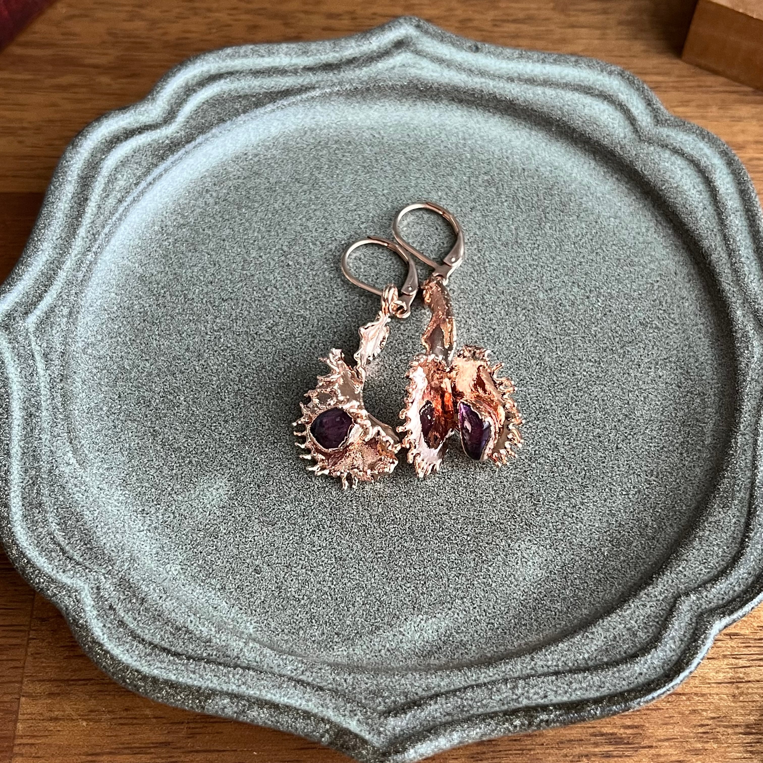 宝石を食べたハエトリグサのピアス①(dumpling×アメジスト)