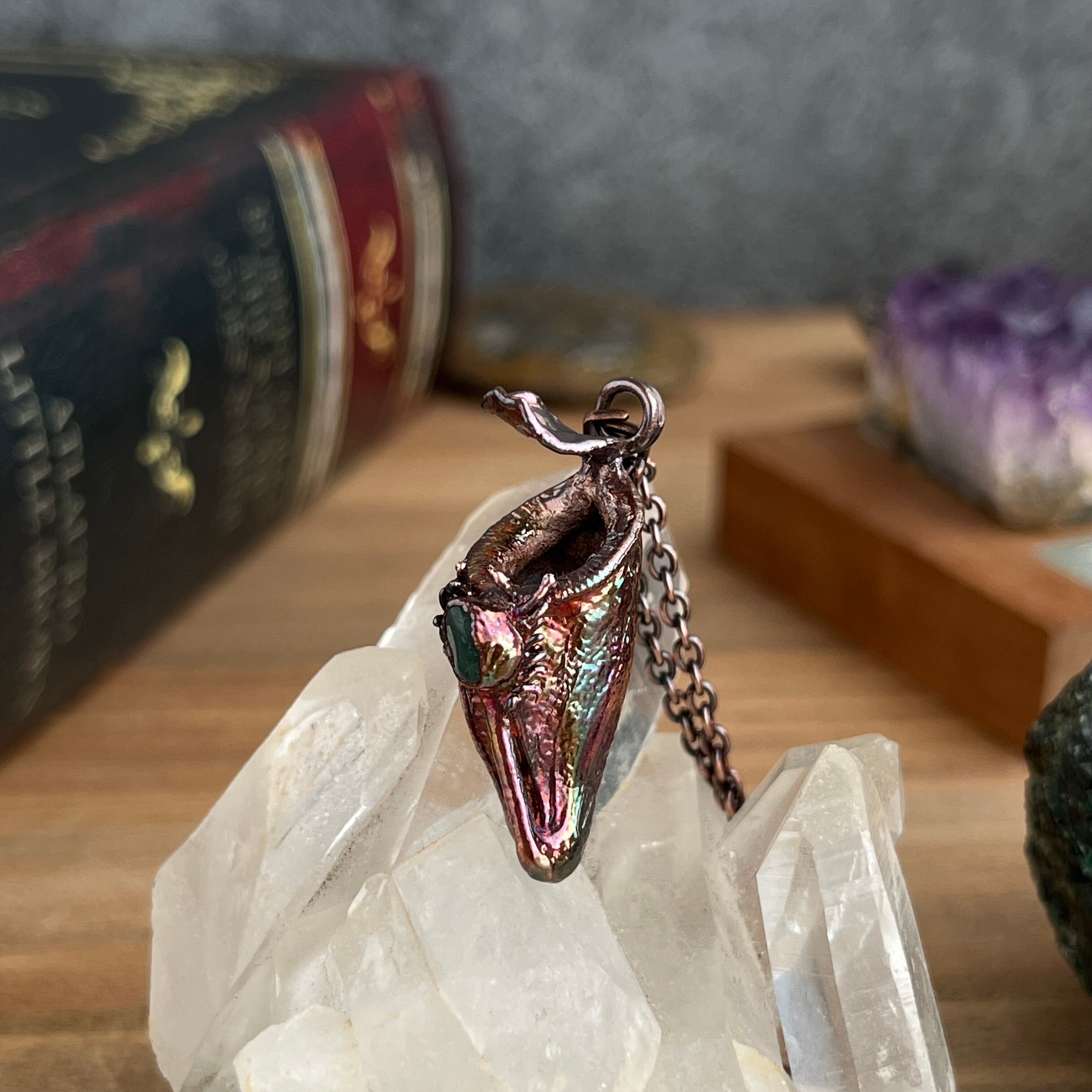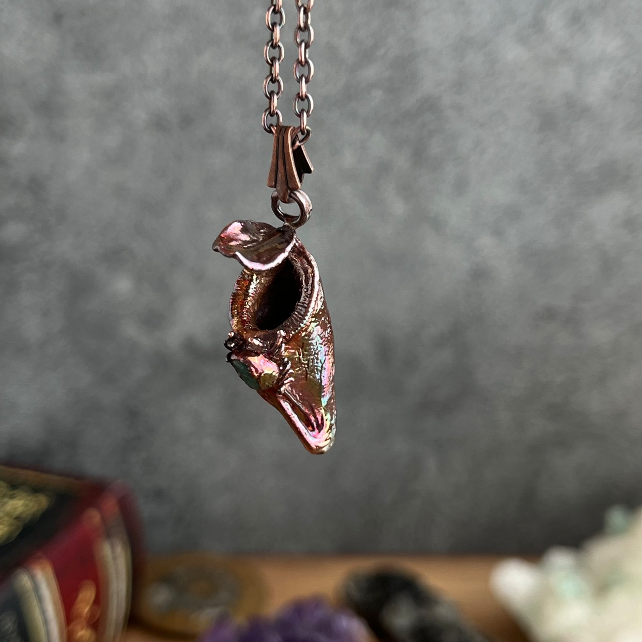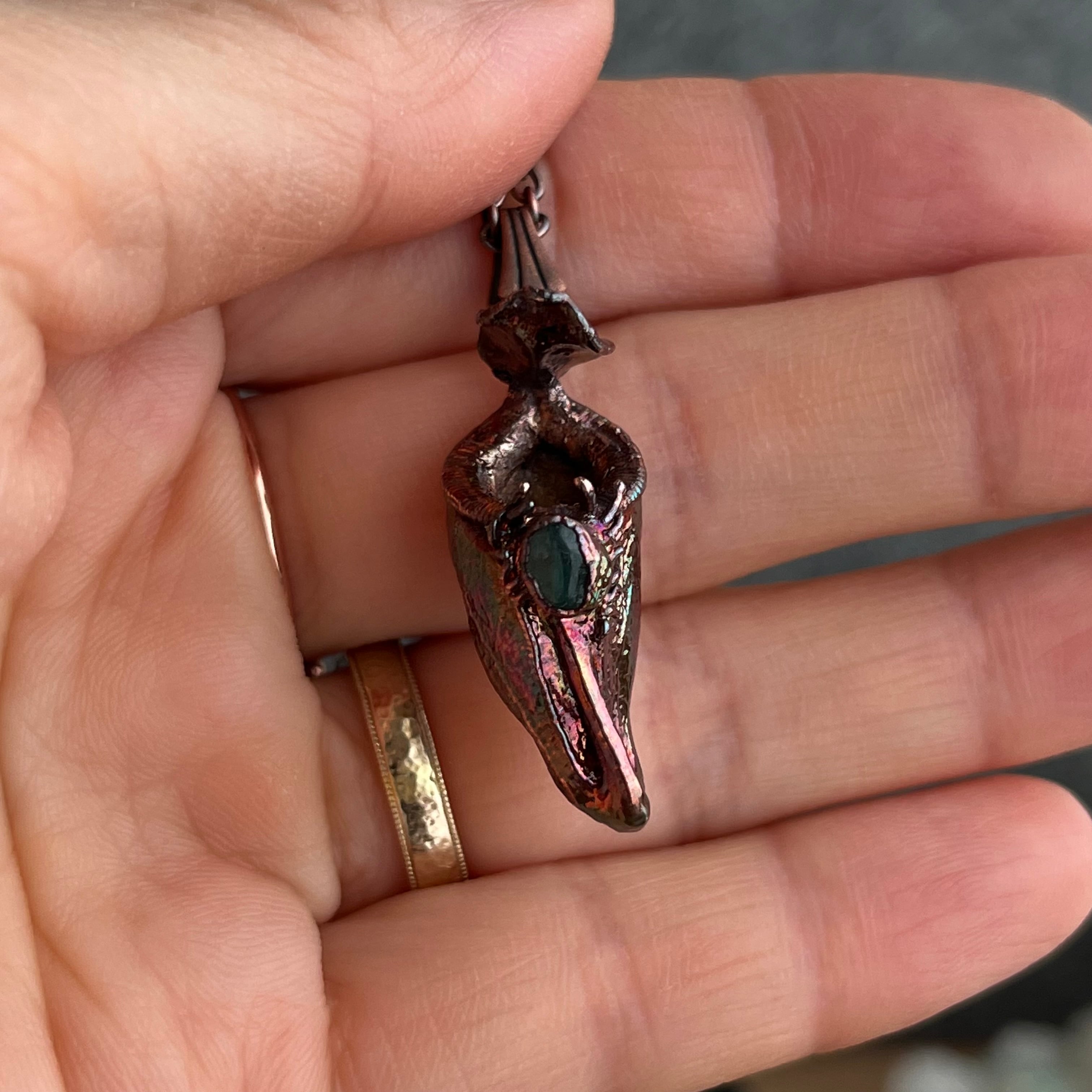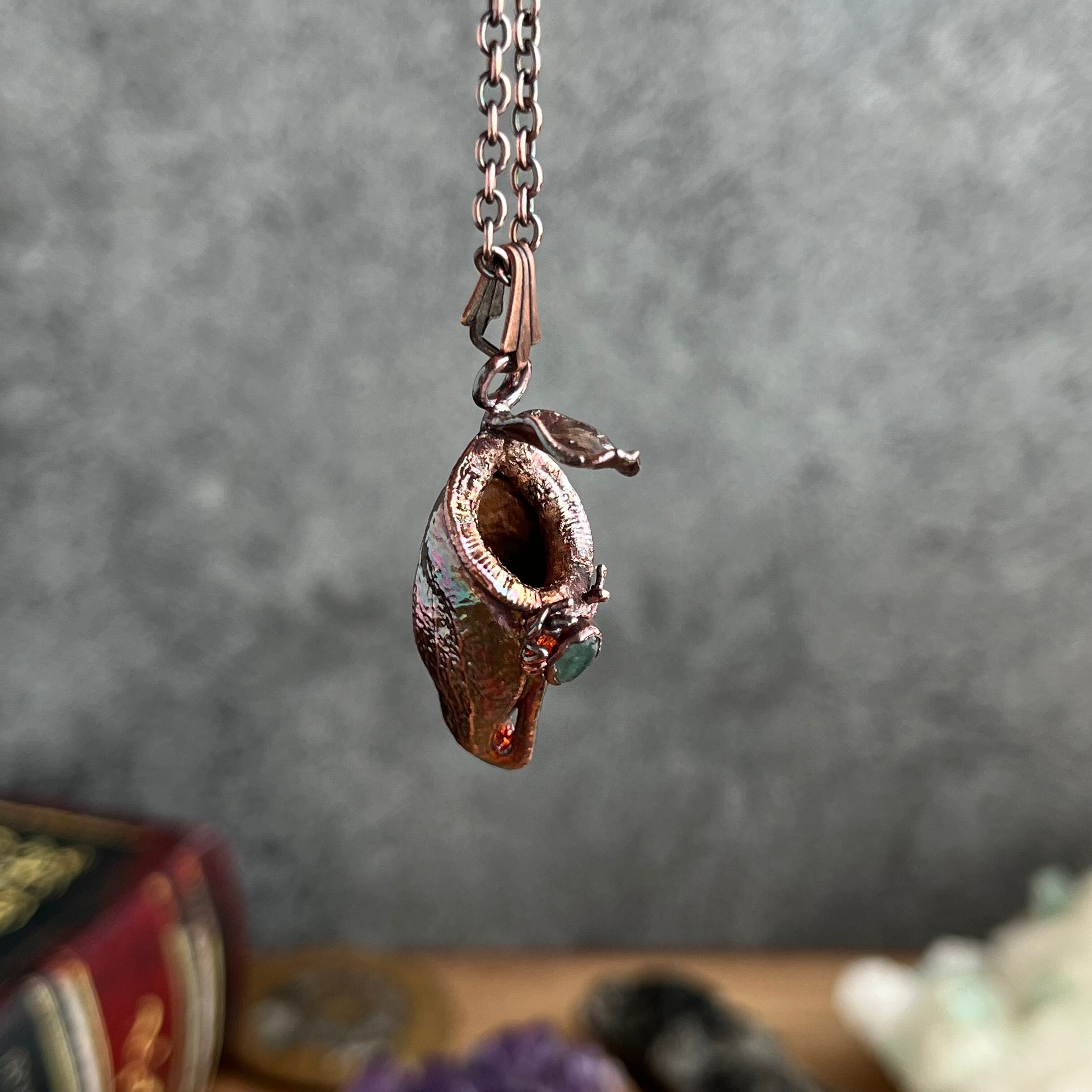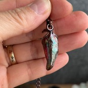 ウツボカズラ「Nepenthes jamban(ジャンバン)」の捕虫袋を収穫し洗浄後、エレクトロフォーミングという技法で銅めっきをほどこし、ネックレスを作製しました。