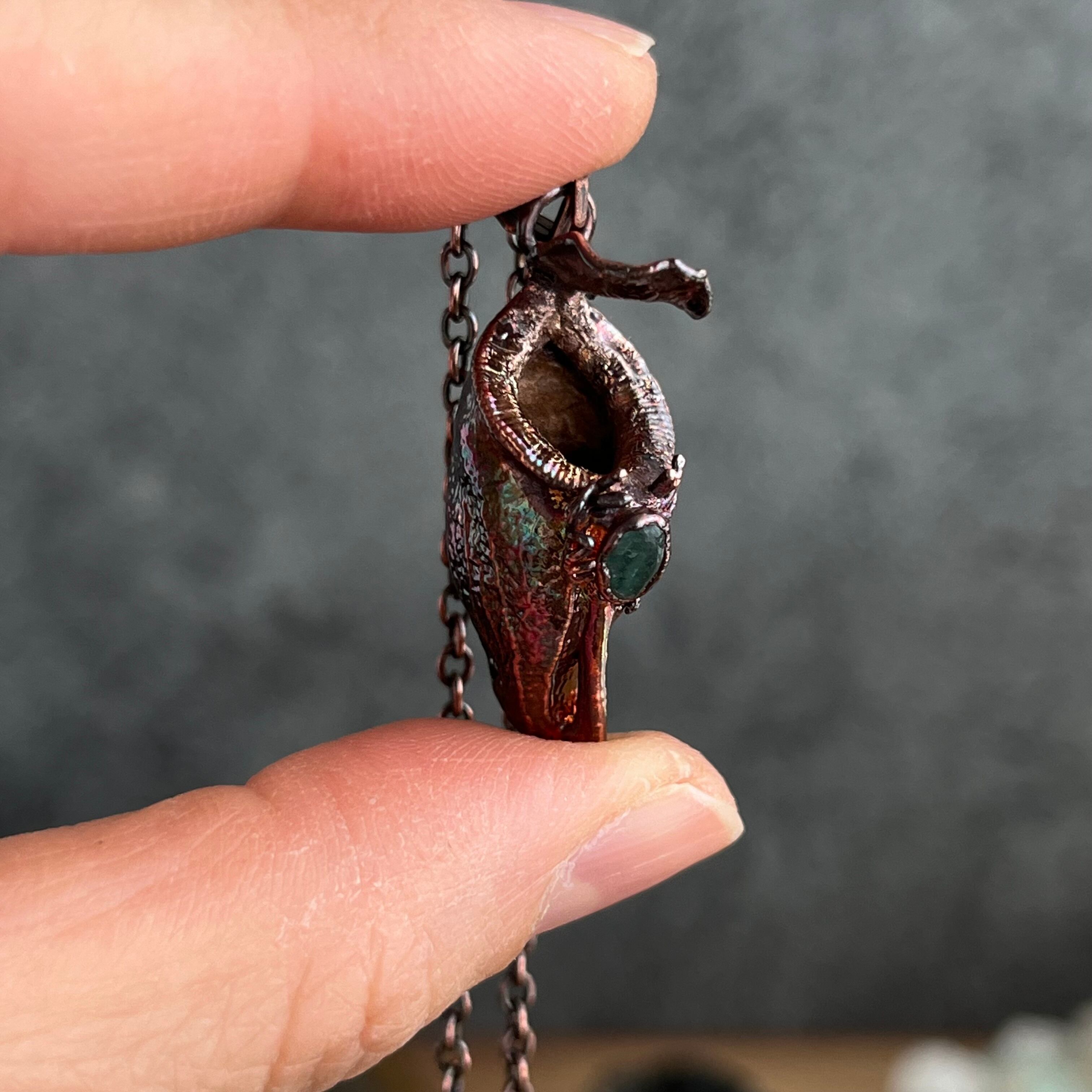 宝石の蜜をこぼすウツボカズラのネックレス①(N.jamban×エメラルド)