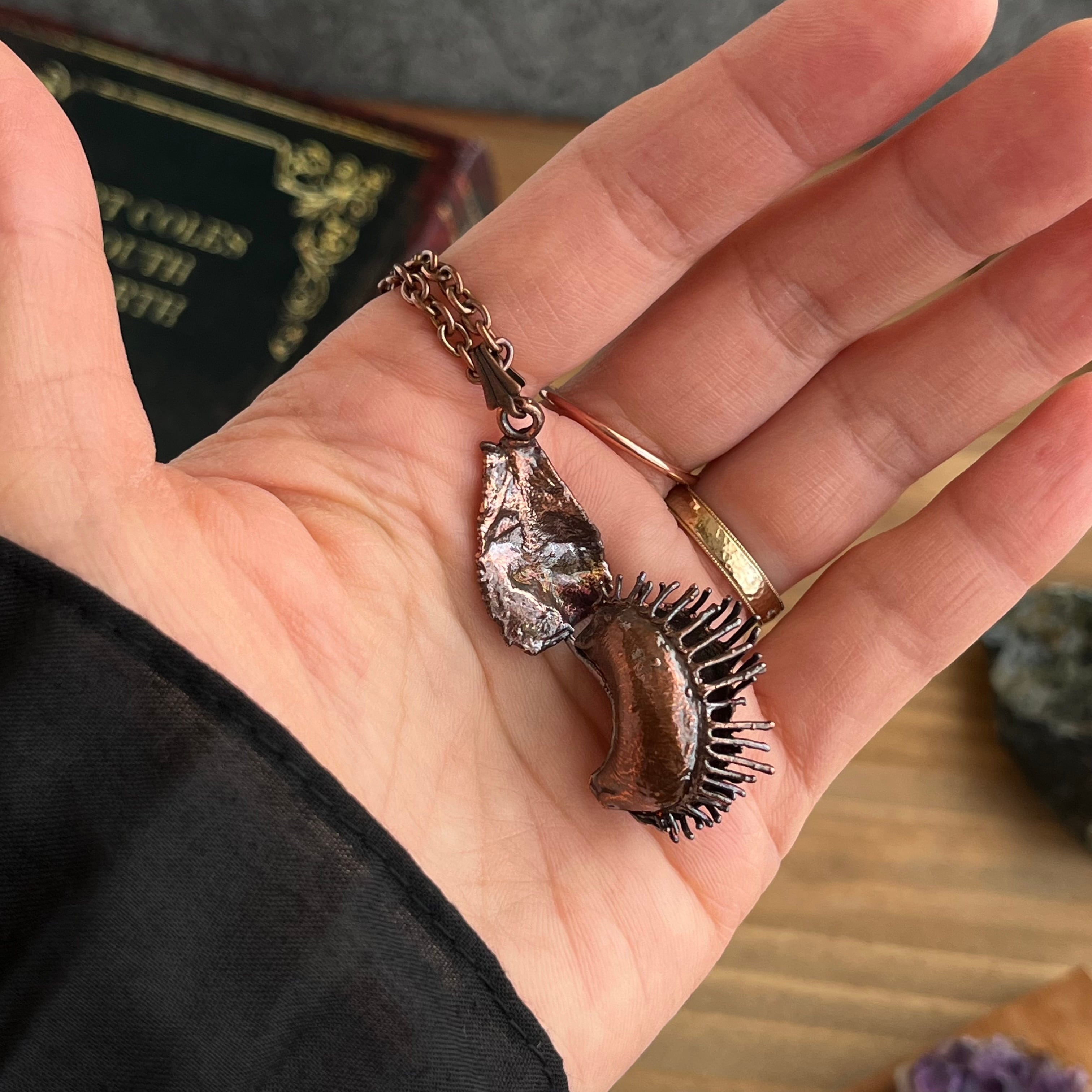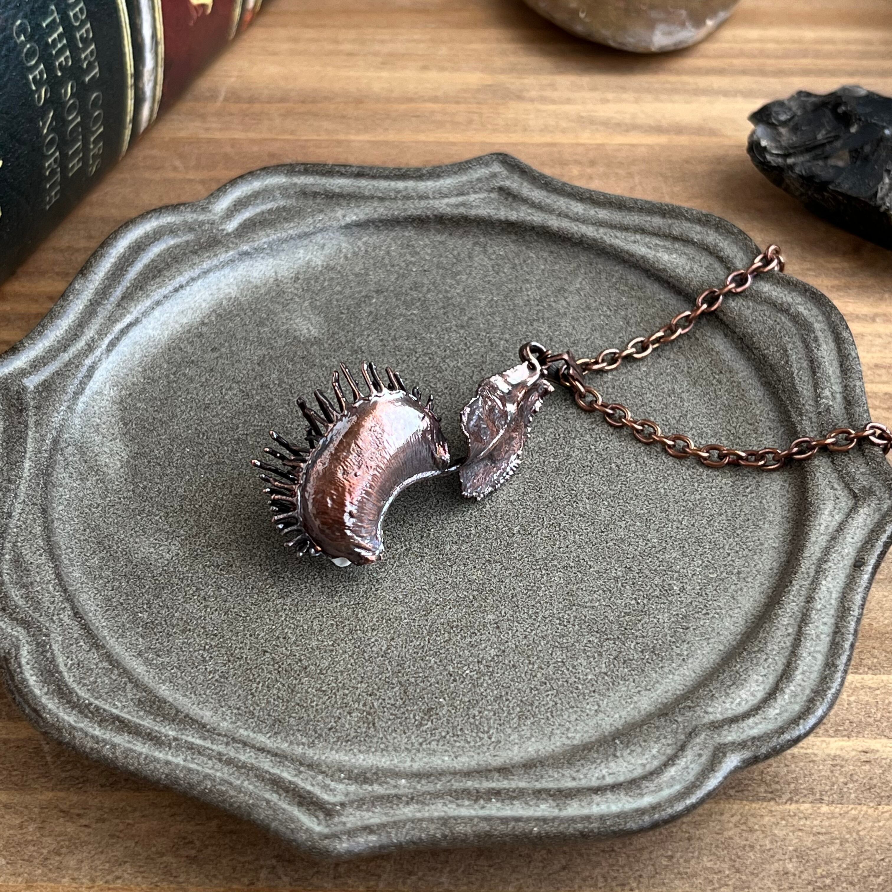 銅になったハエトリグサのネックレス①(Big mouth ×アンティーク)