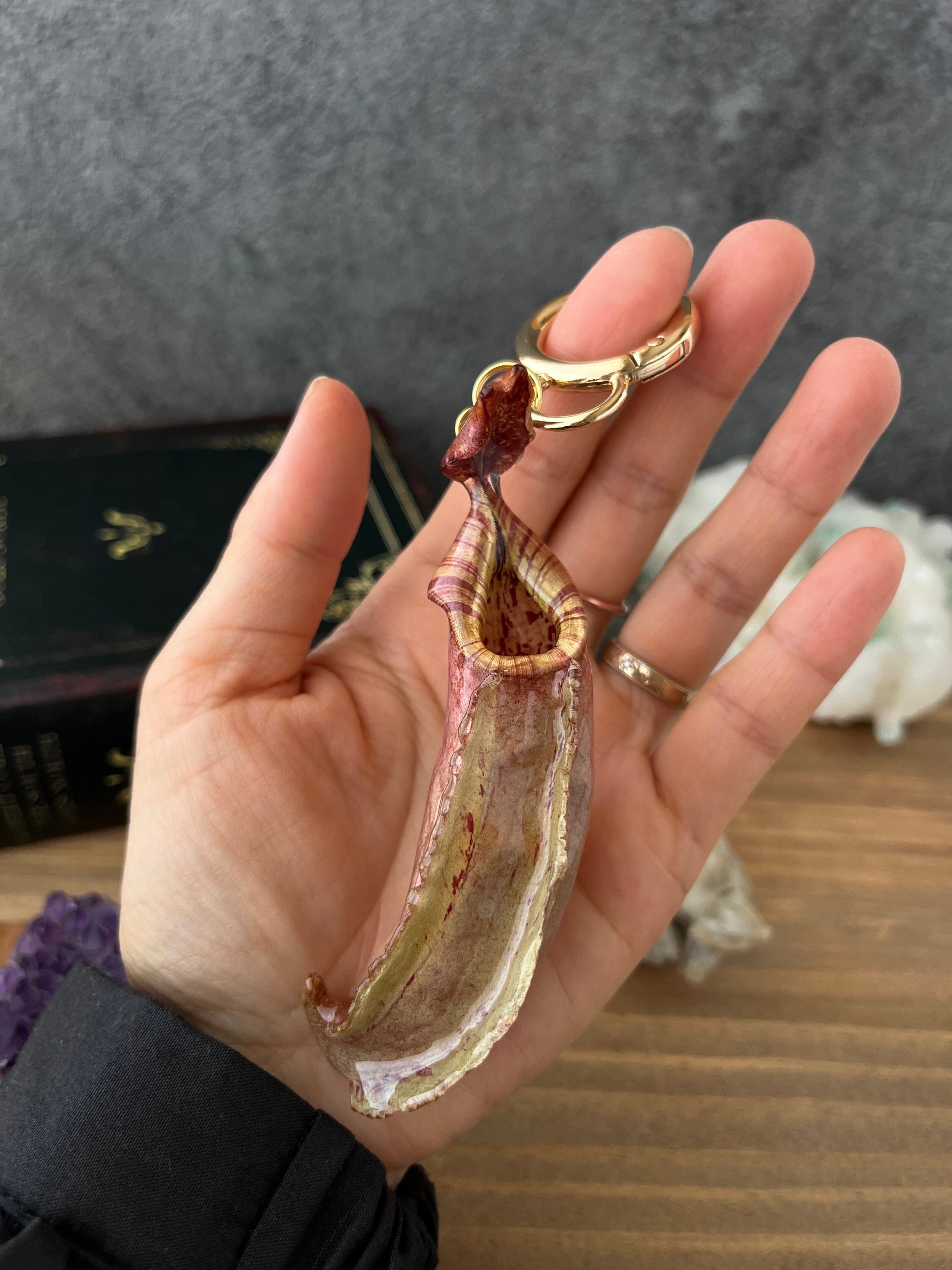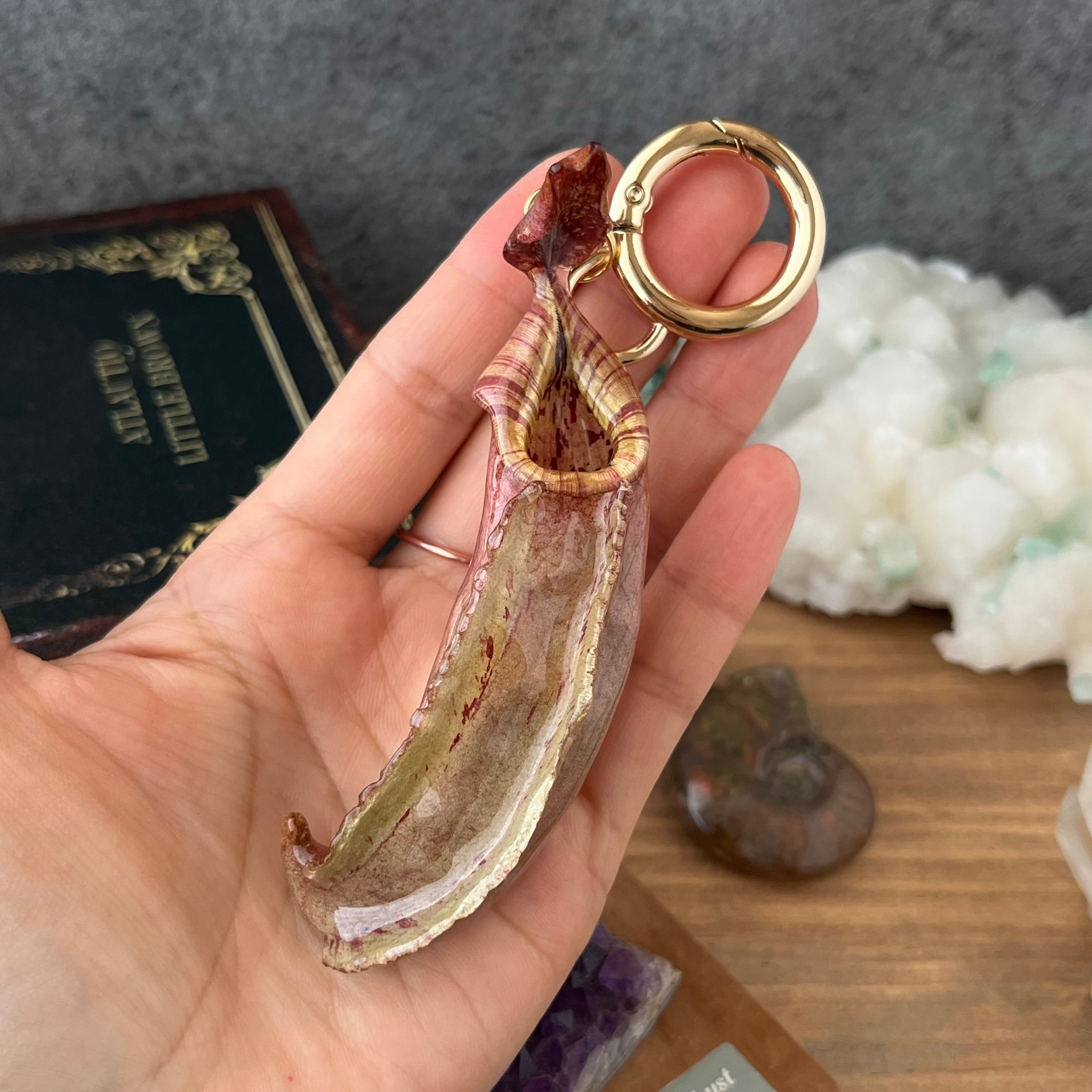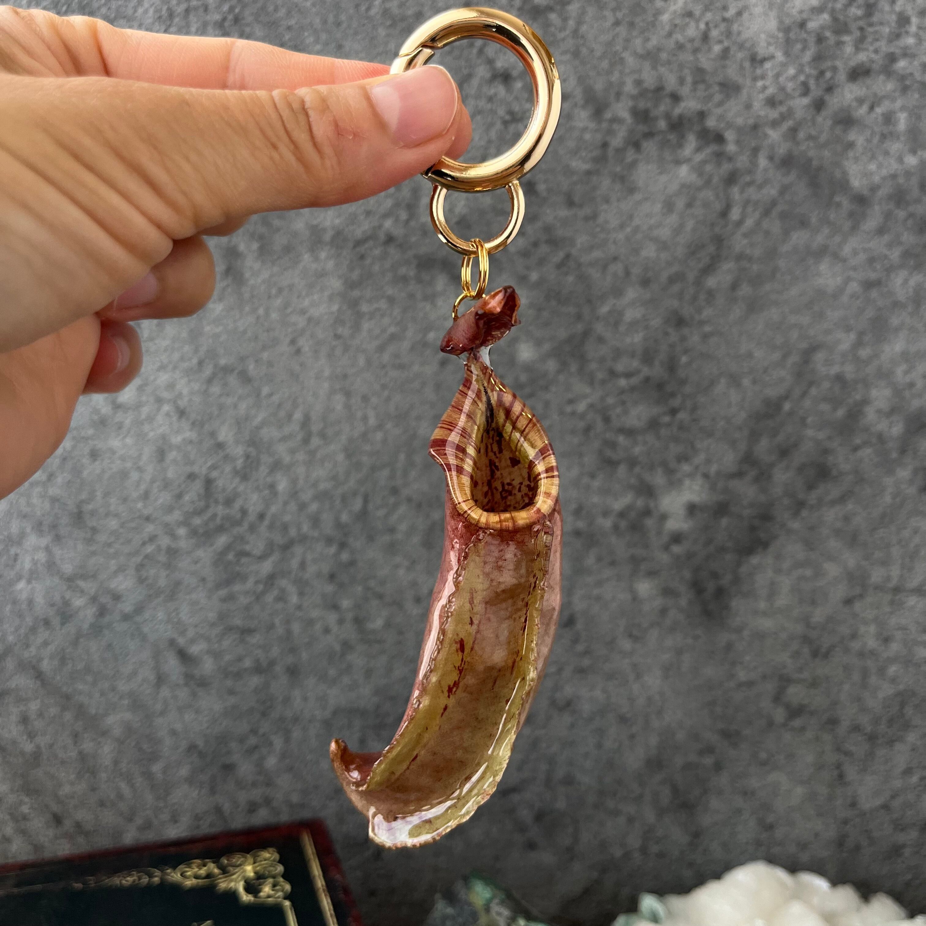 ウツボカズラ「Nepenthes veitchii(ネペンテス・ビーチー)」の捕虫袋でお作りしたキーホルダーです。