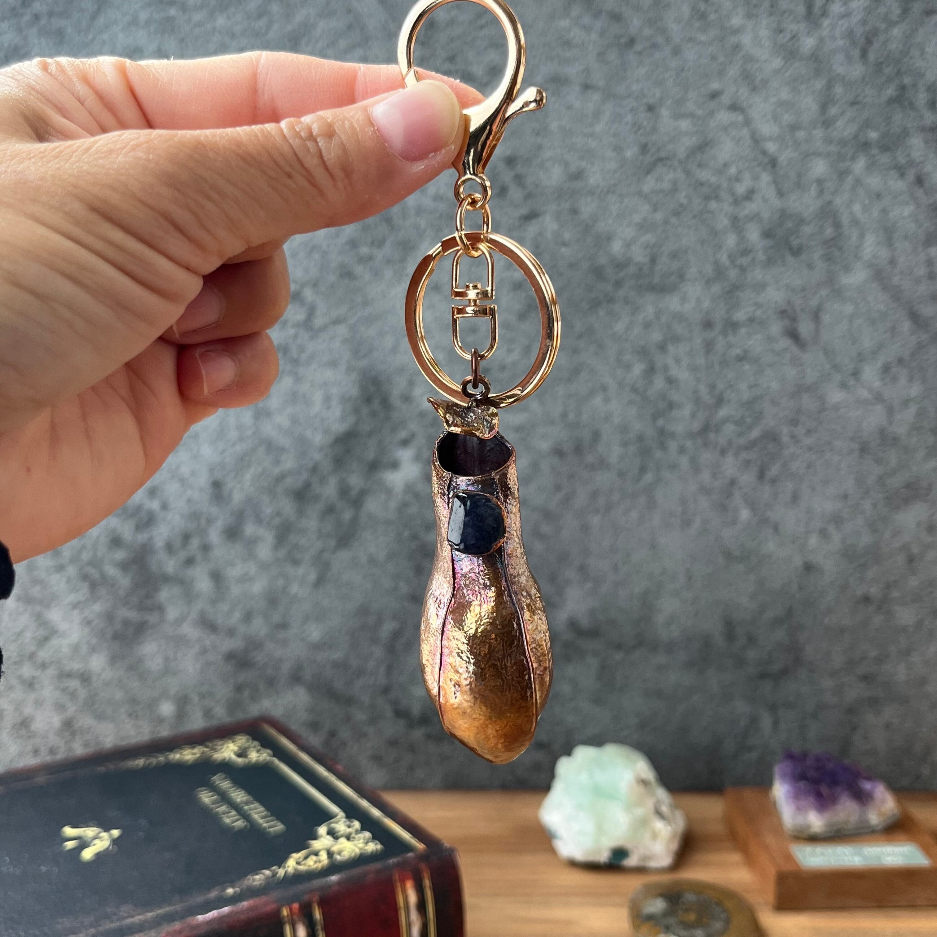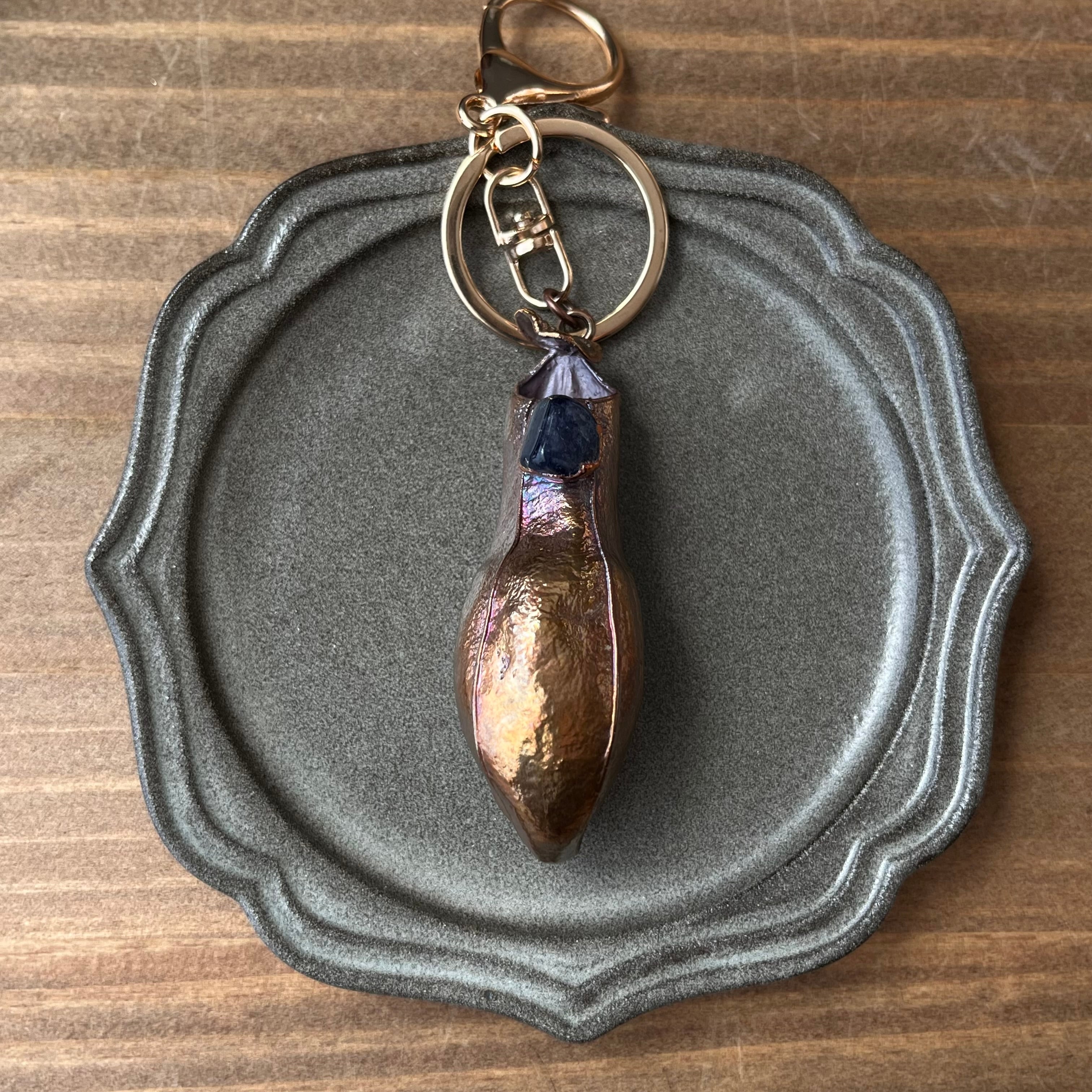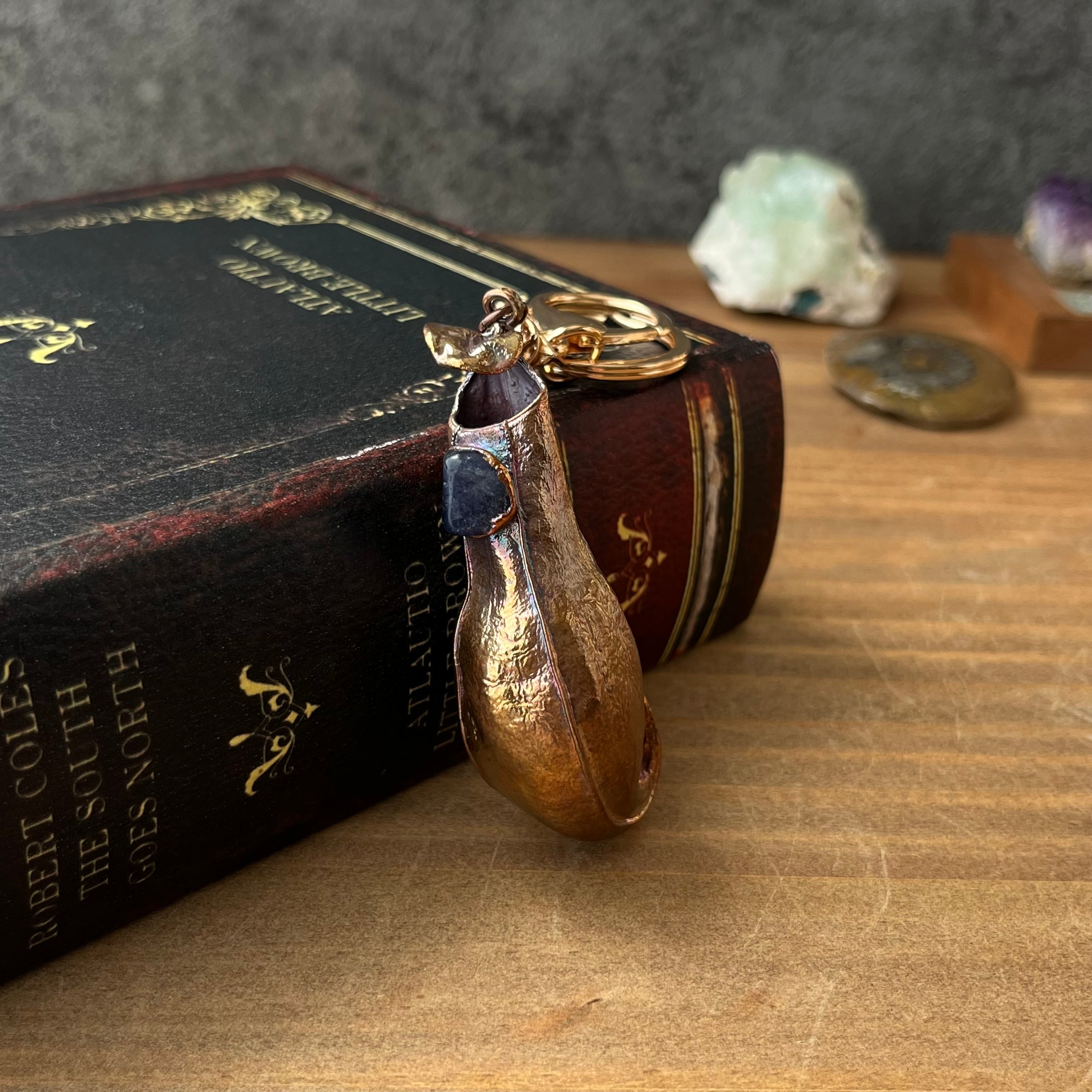 宝石の蜜をこぼすウツボカズラのキーホルダー40(N. gracilis×アイオライト×アンティーク)