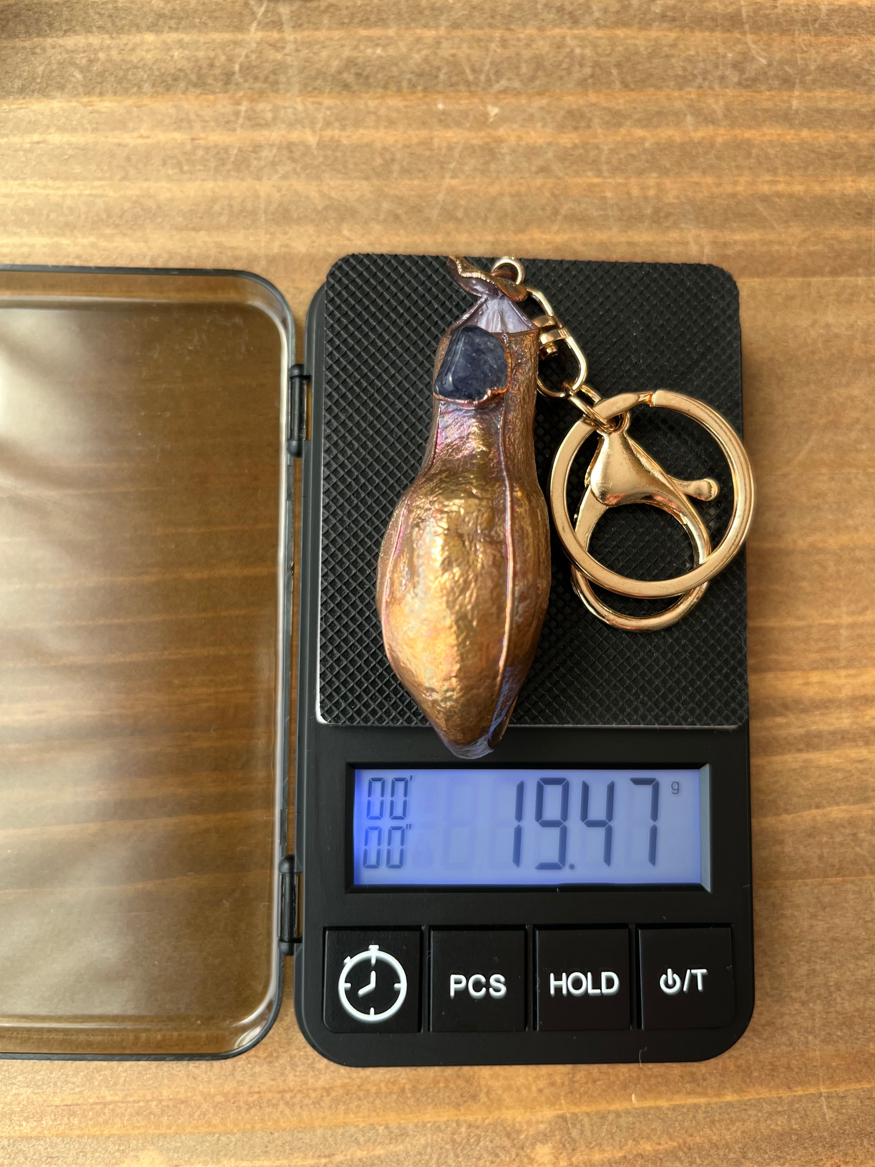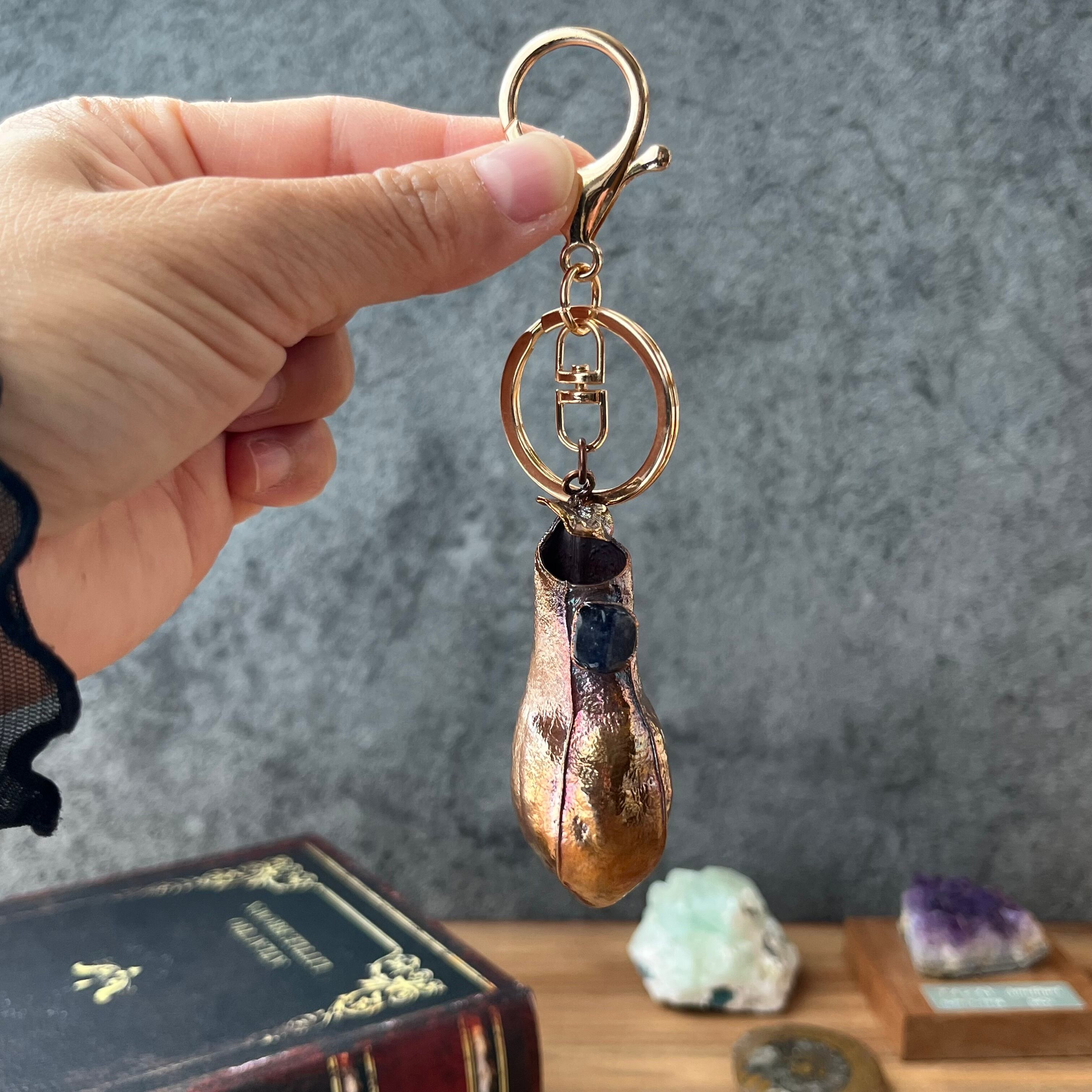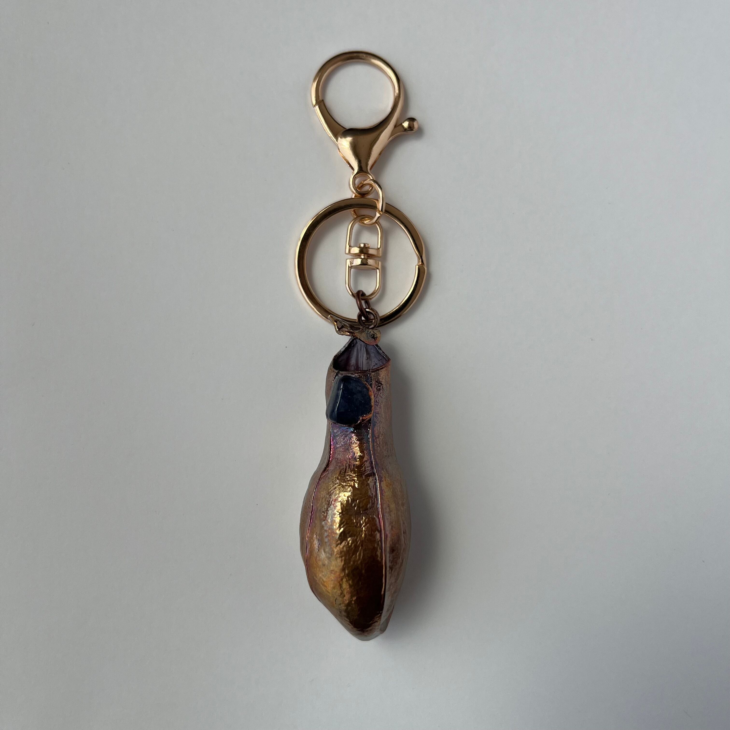 宝石の蜜をこぼすウツボカズラのキーホルダー40(N. gracilis×アイオライト×アンティーク)
