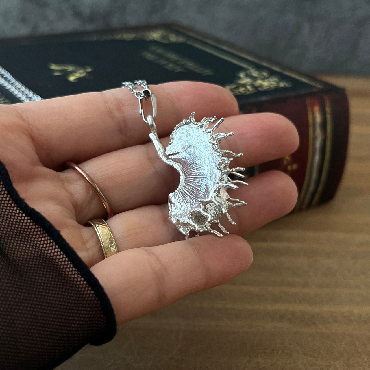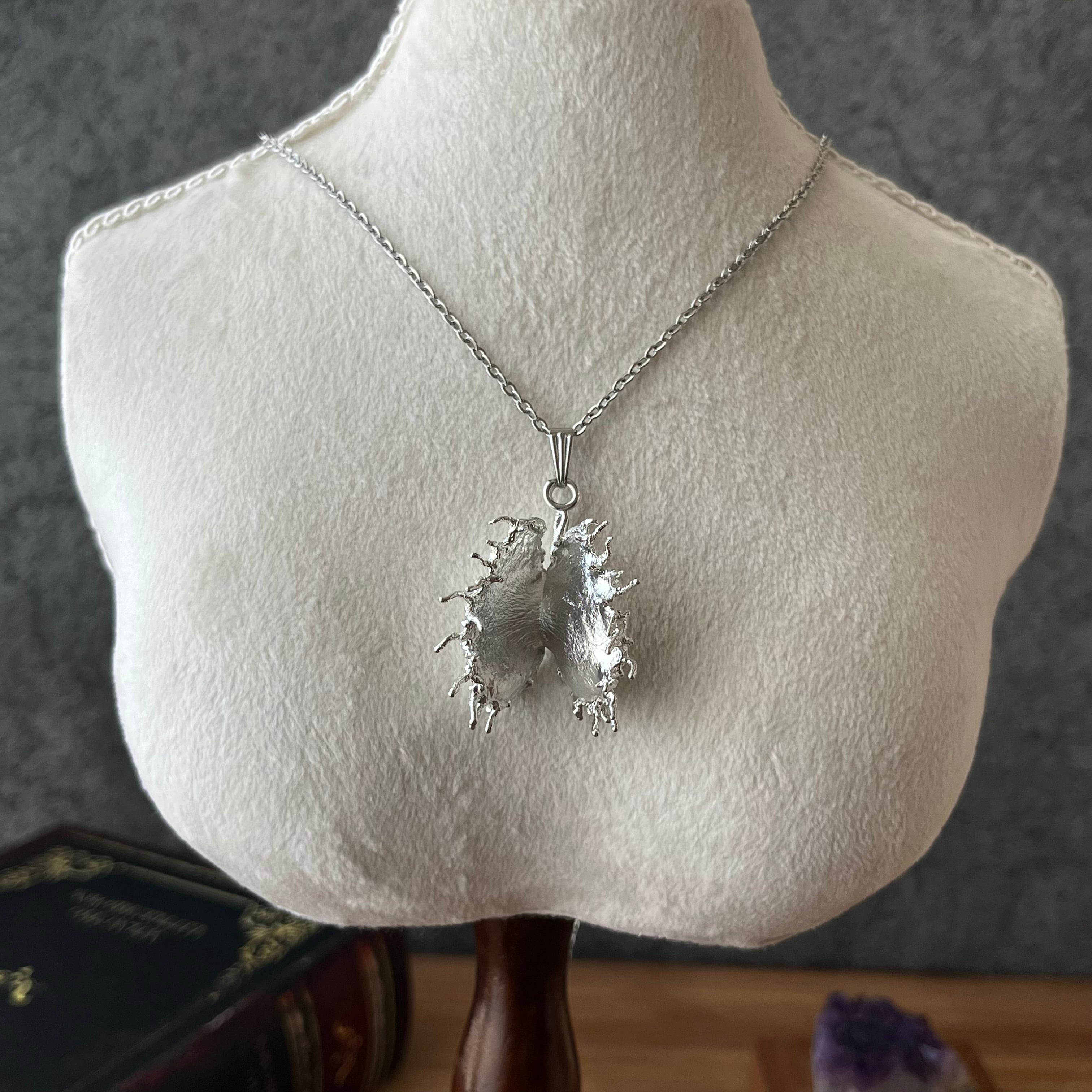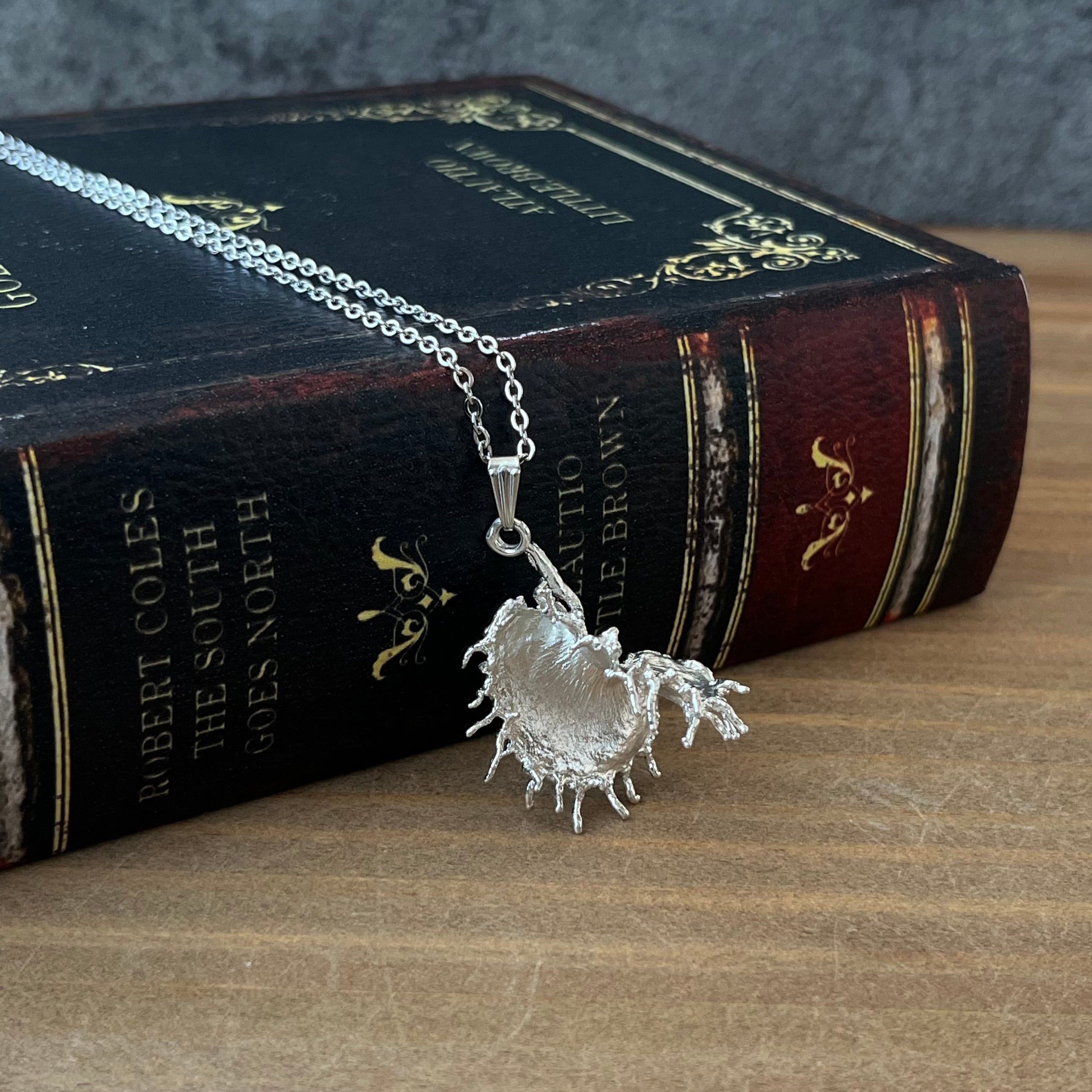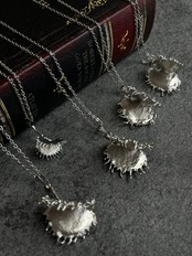 作者が世界で一番大好きな食虫植物・ハエトリグサの捕虫葉で制作したネックレスです。