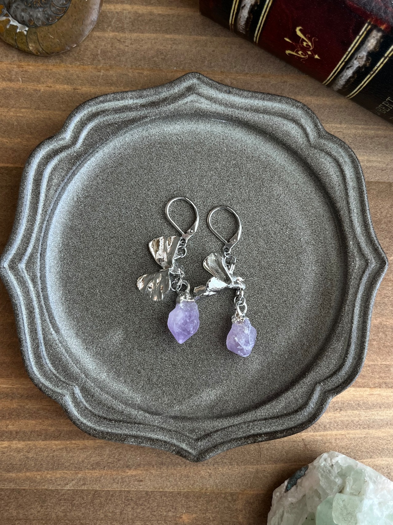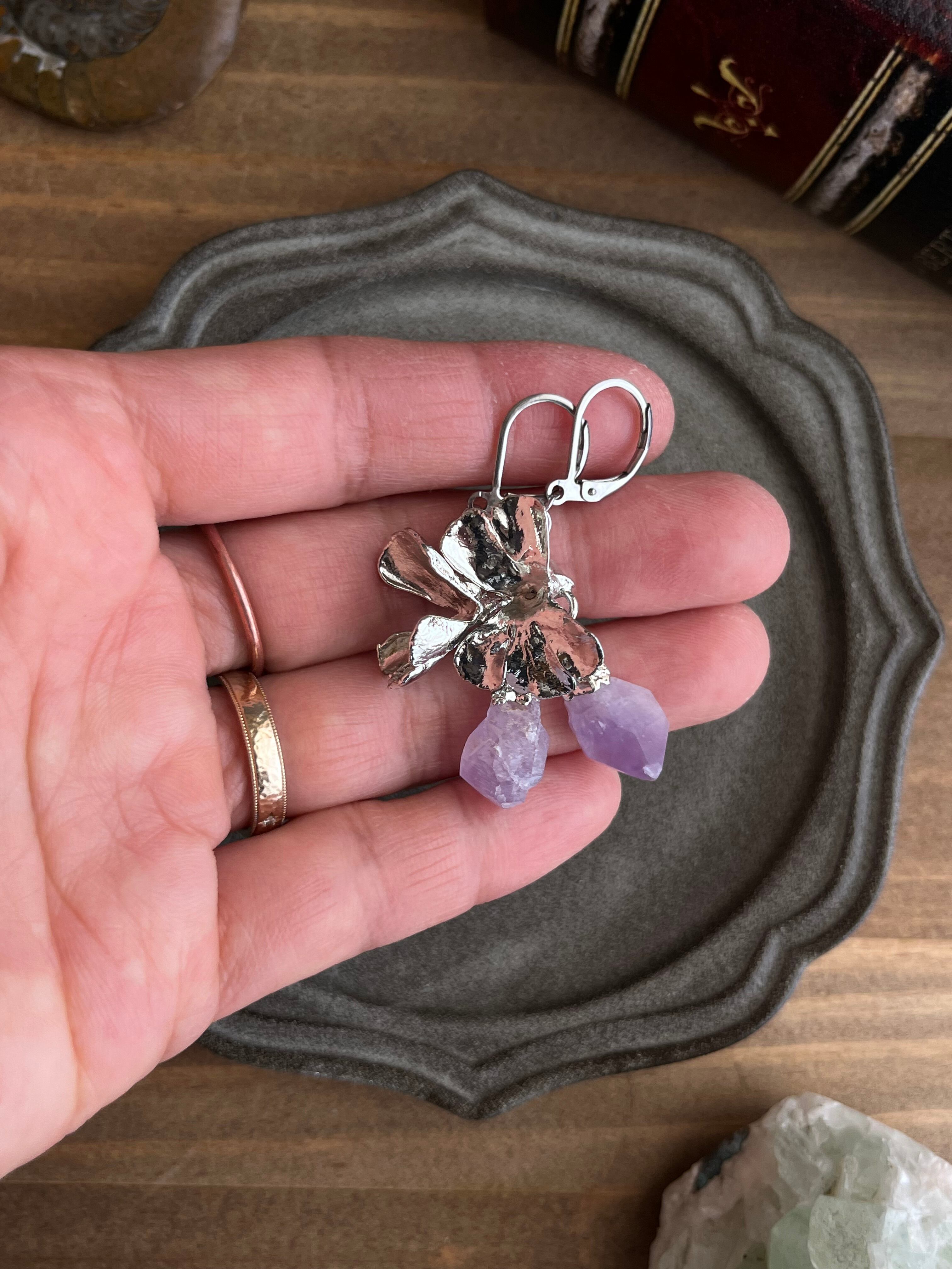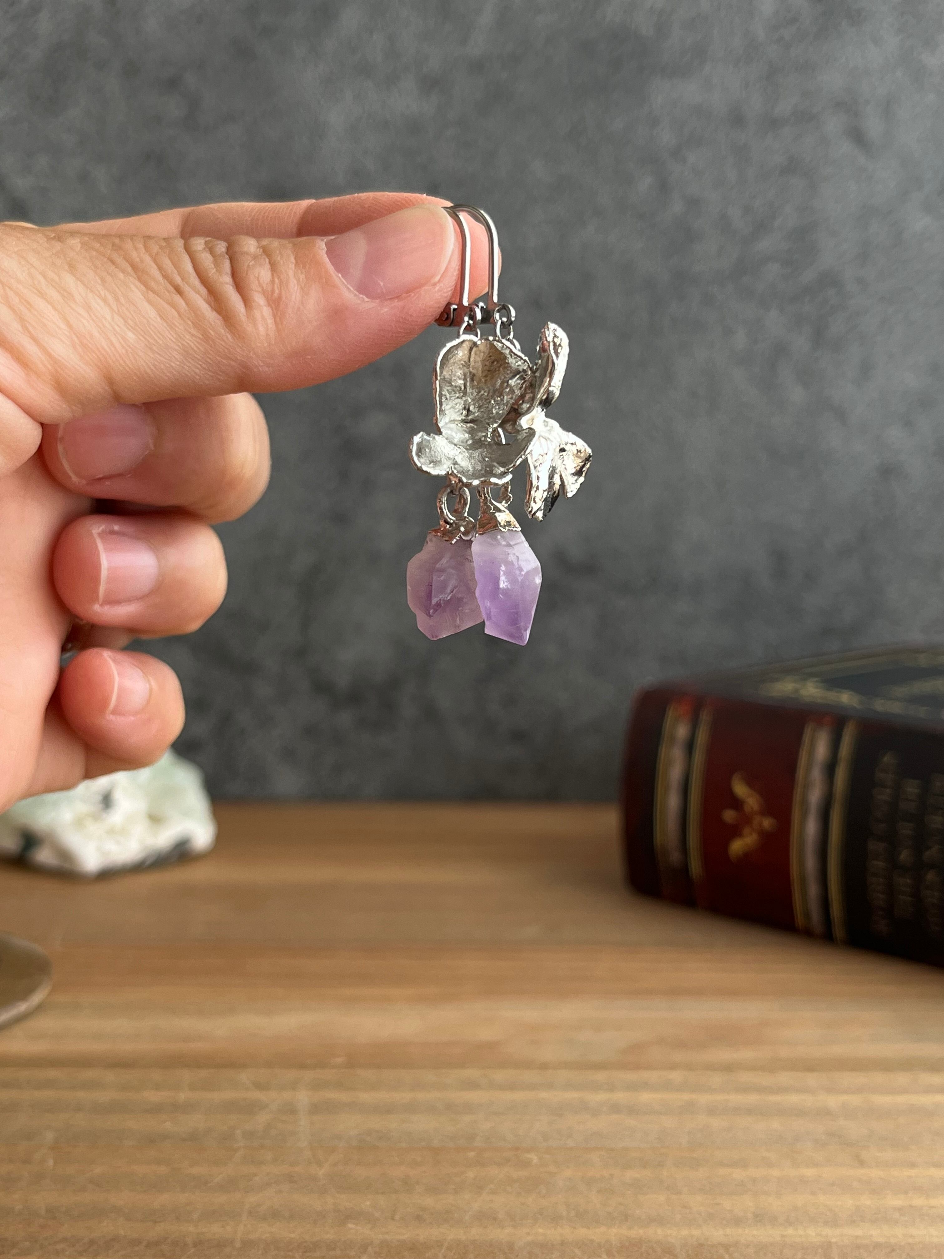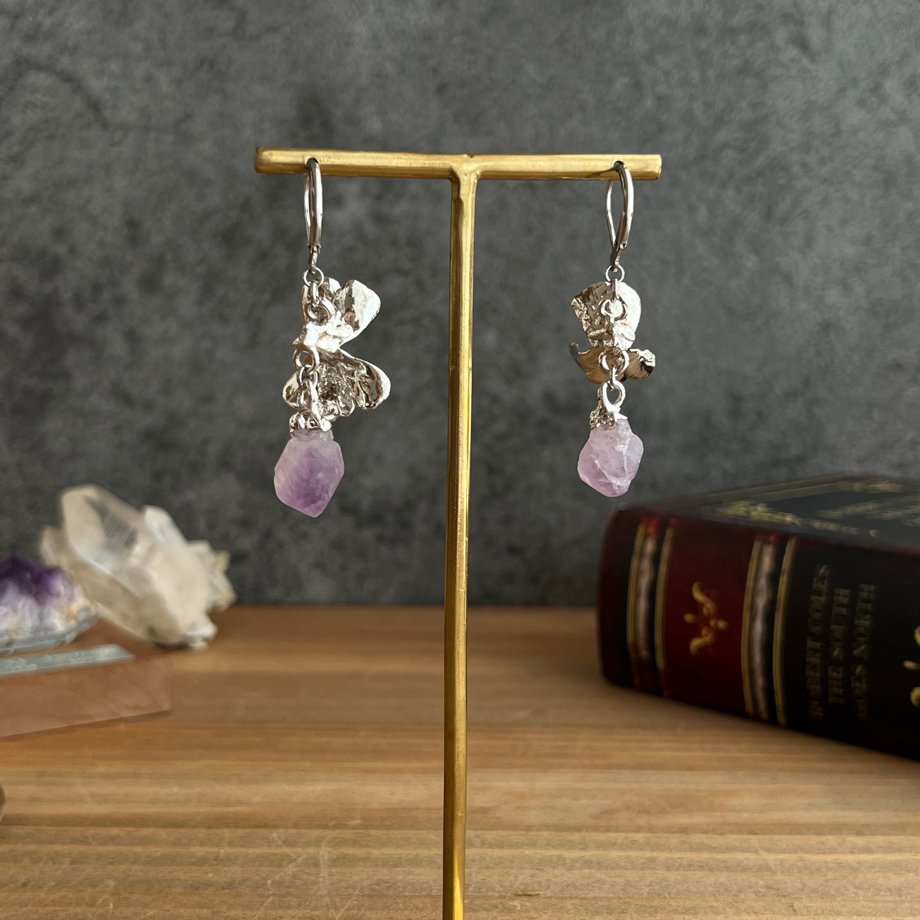 すずになった蜜を宝石に変えたムシトリスミレのピアス56(esseriana ×アメジスト)