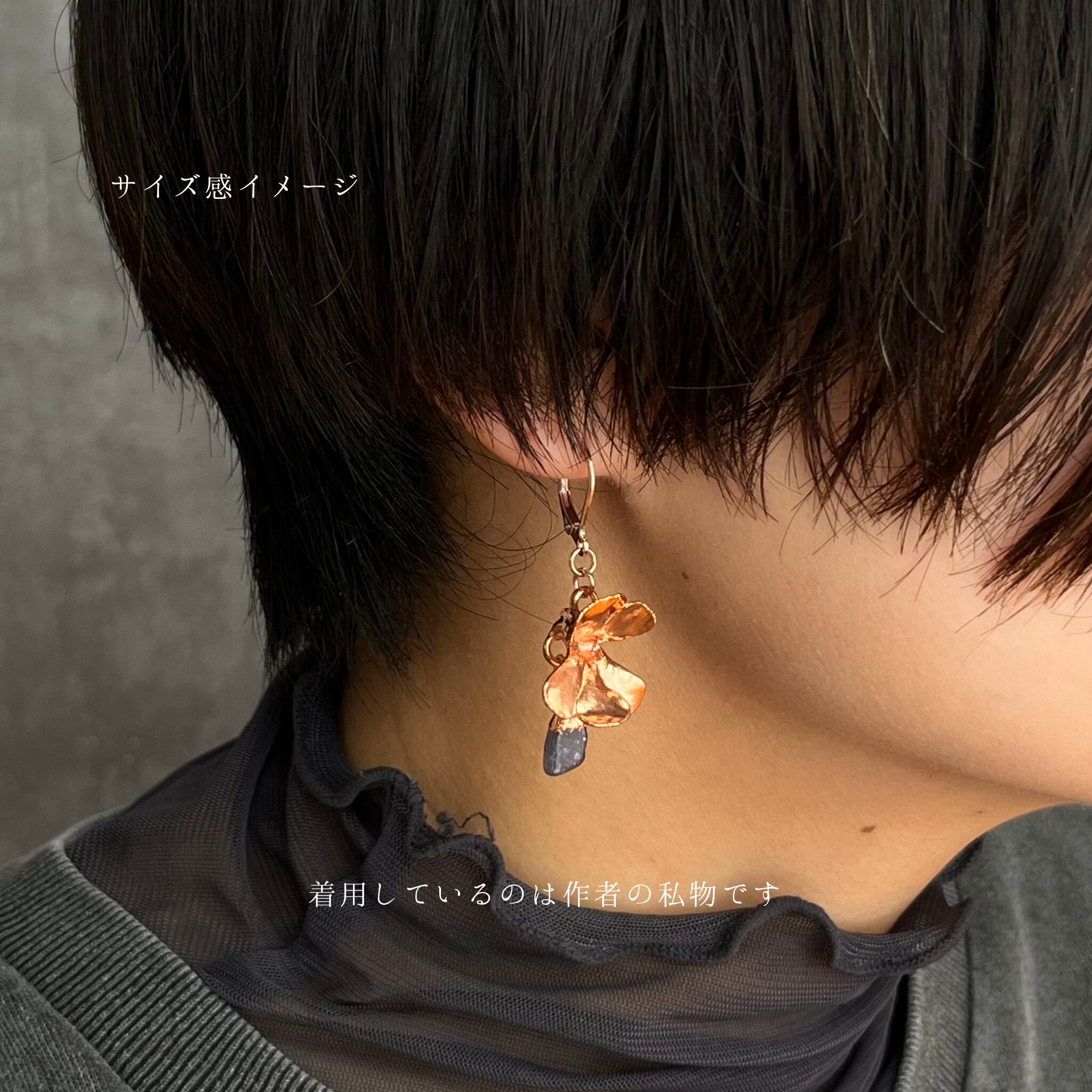 ムシトリスミレ「エッセリアナ」の花をエレクトロフォーミングし、ピアスに仕立てました。