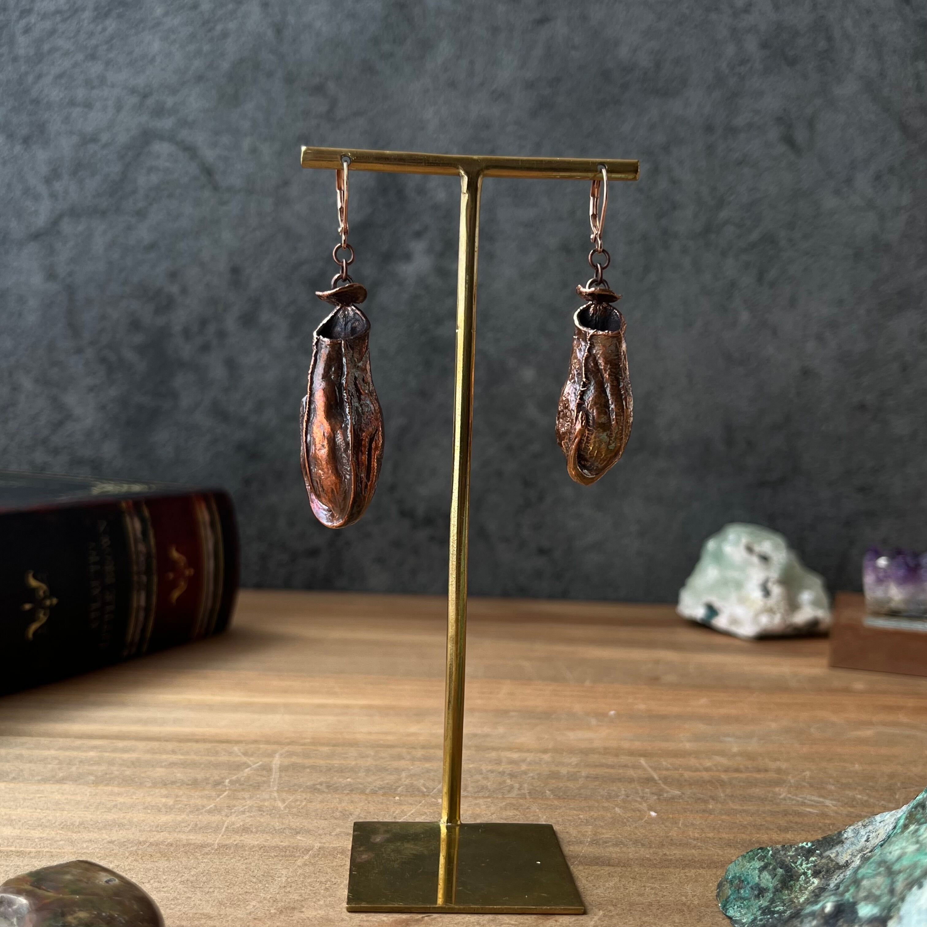 銅になったウツボカズラのピアス11(N. gracilis×アンティーク)