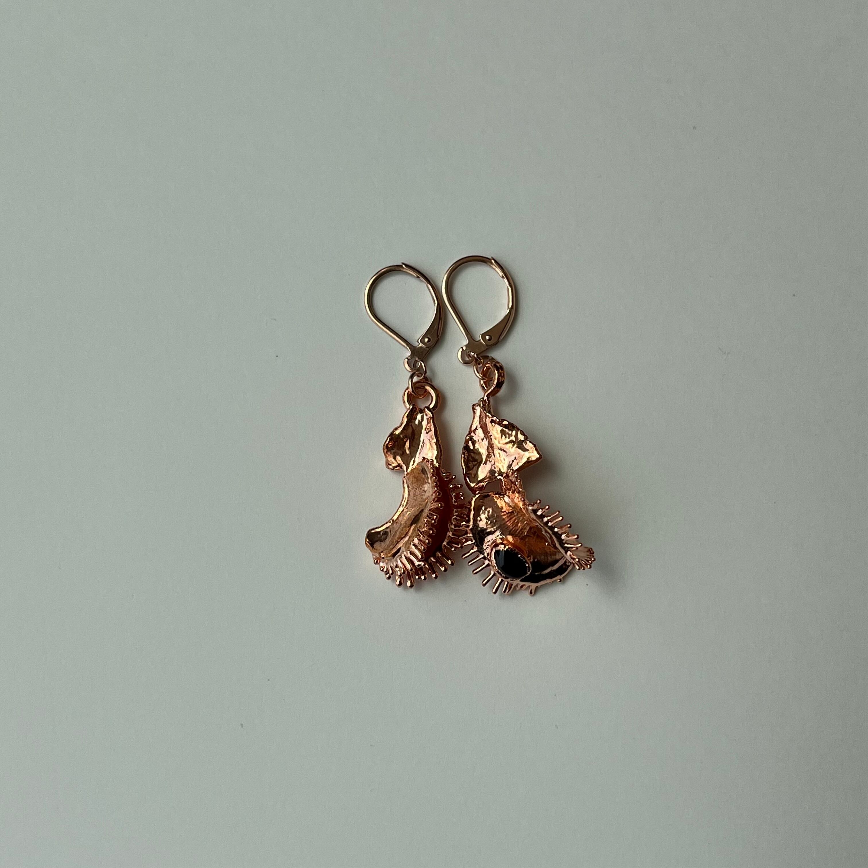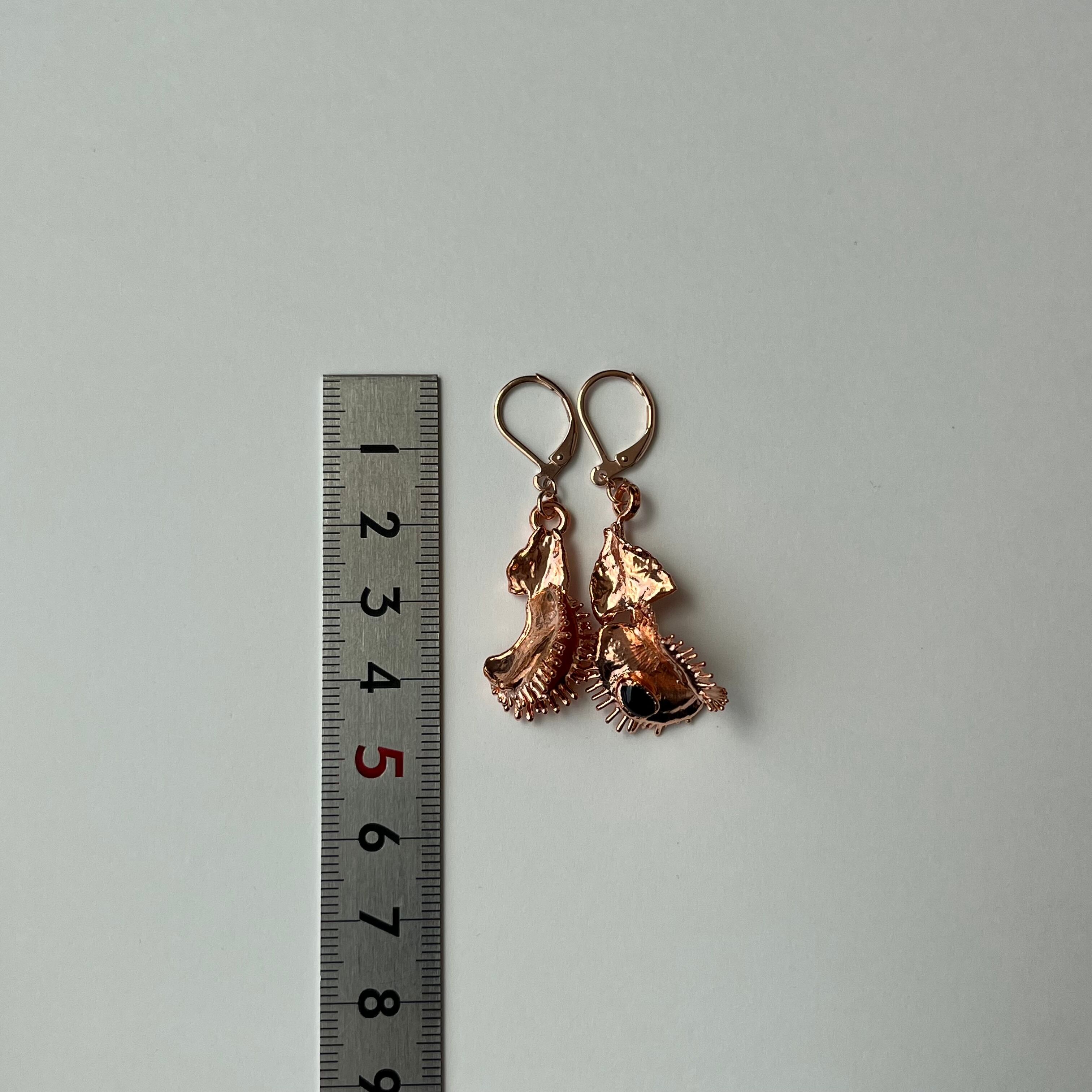 作者が世界で一番大好きな食虫植物・ハエトリグサの捕虫葉で制作したピアス(イヤリング)です。