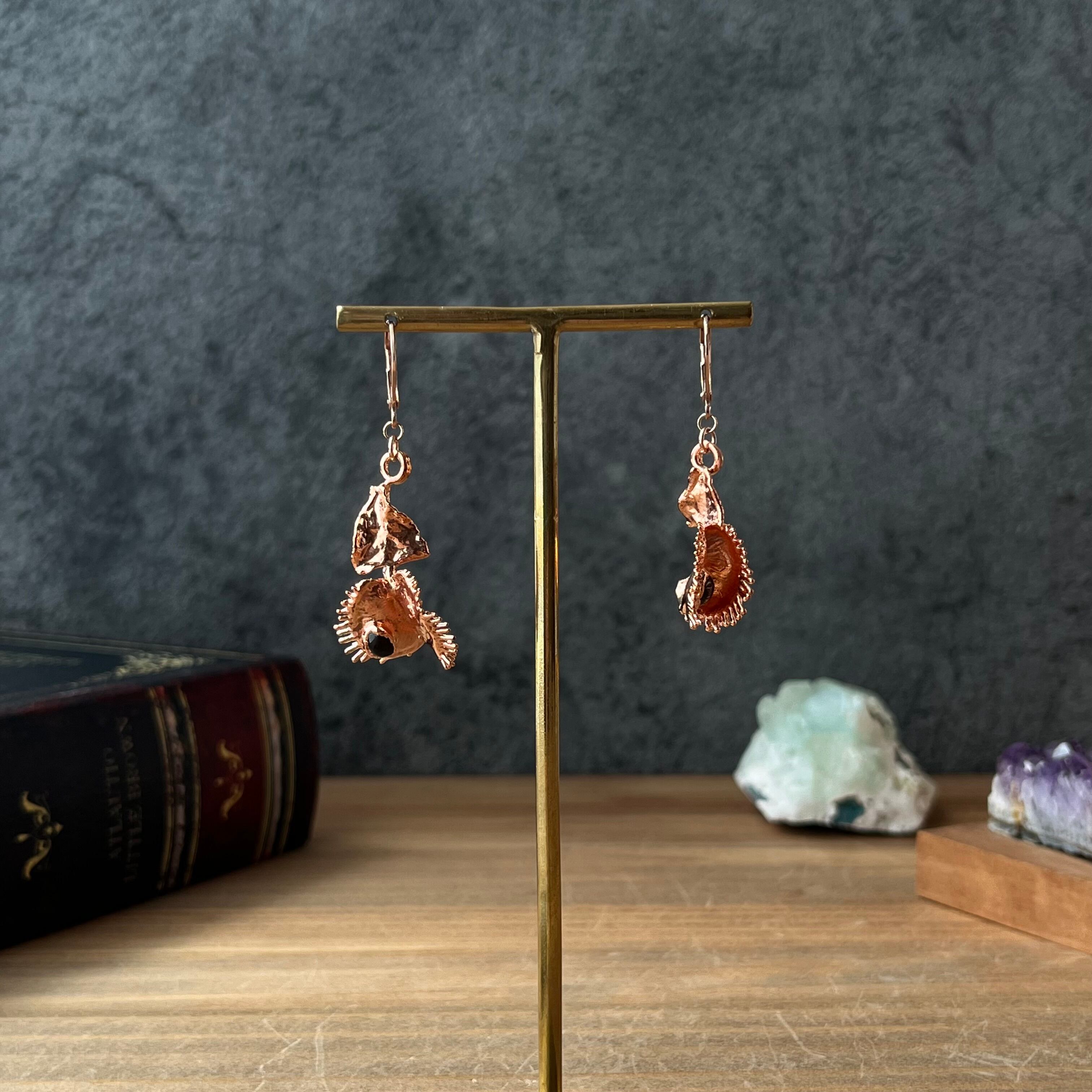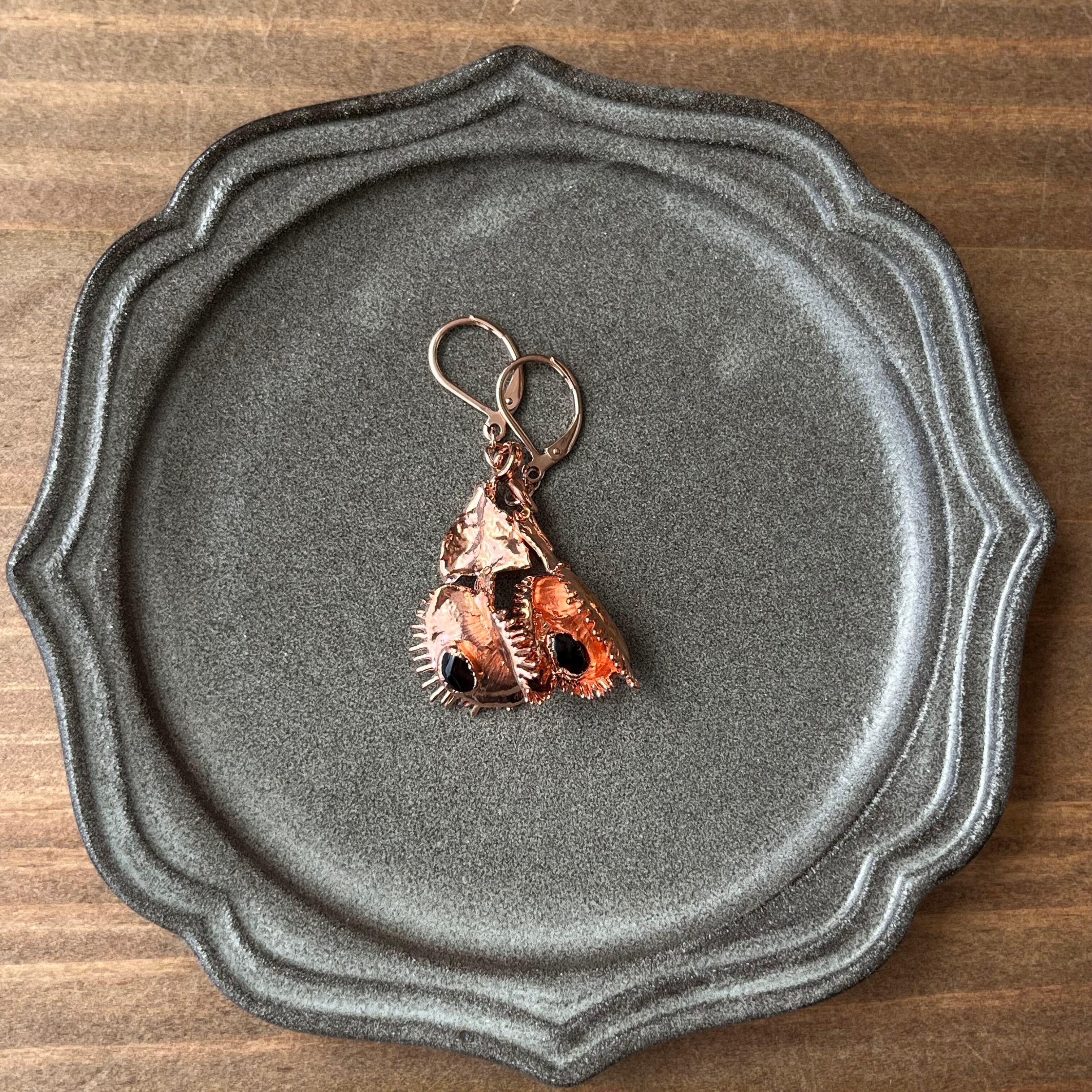 宝石を食べたハエトリグサのピアス53( Shark teeth×ガーネット)