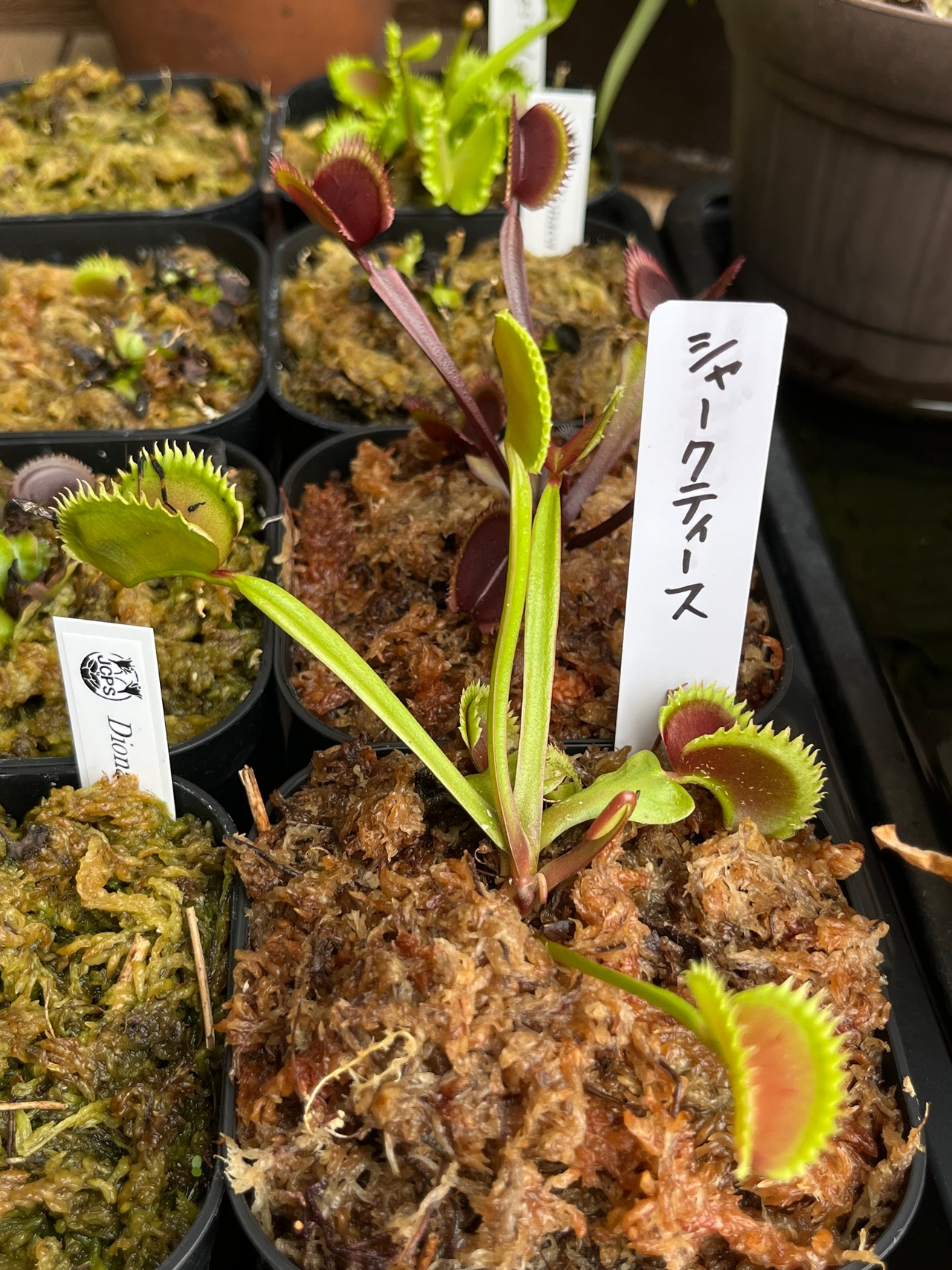 作品には、棘の部分がその名の通りサメの歯に見える「シャークティース」という種類のハエトリグサを使用しています。