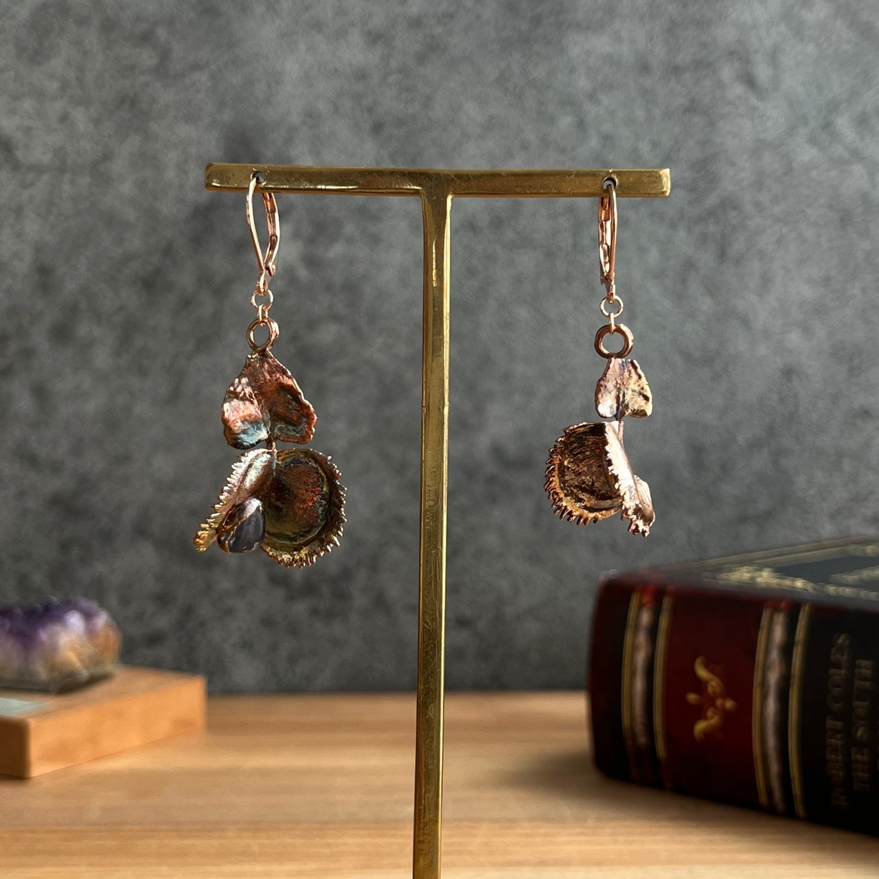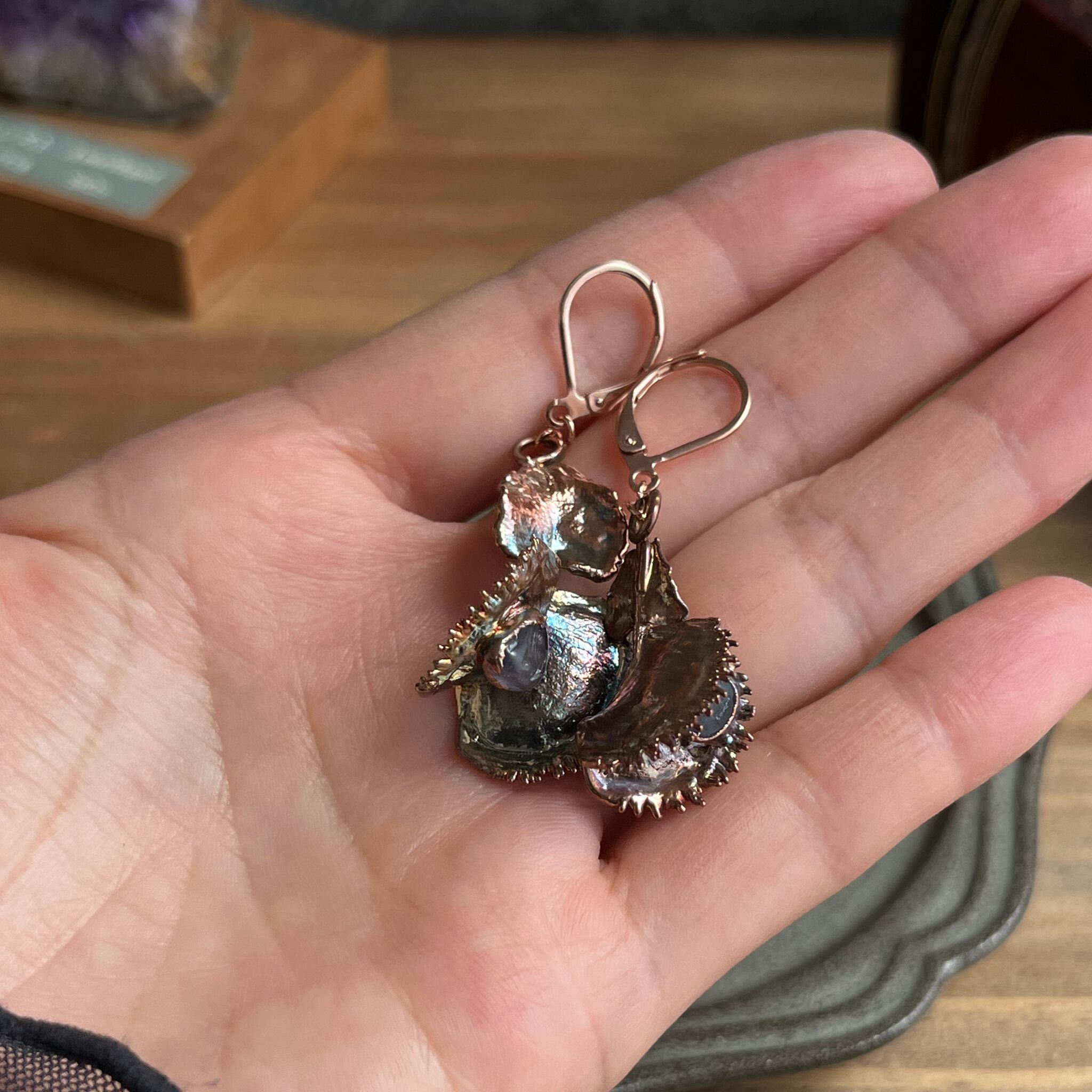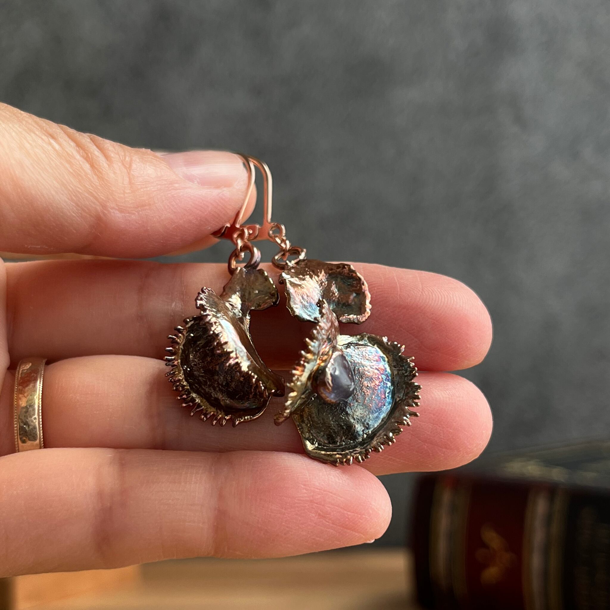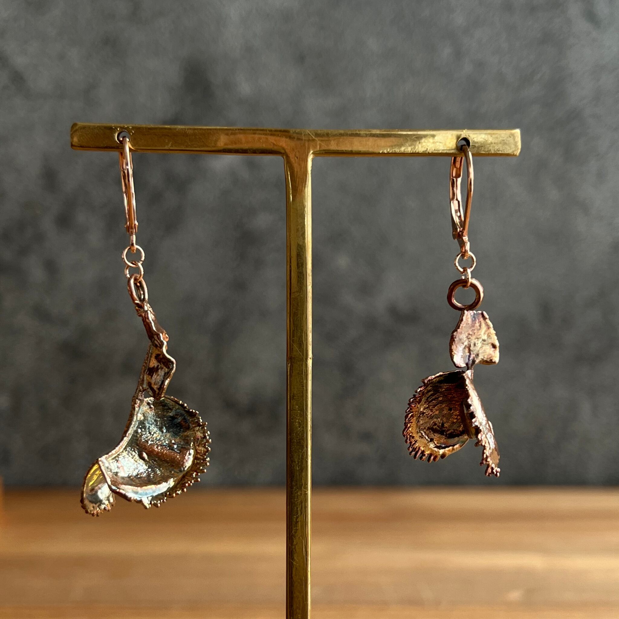 収穫した捕虫葉をエレクトロフォーミングという技法で銅めっきし、アクセサリーに仕立てているため、銅の中には本物のハエトリグサが入っています。