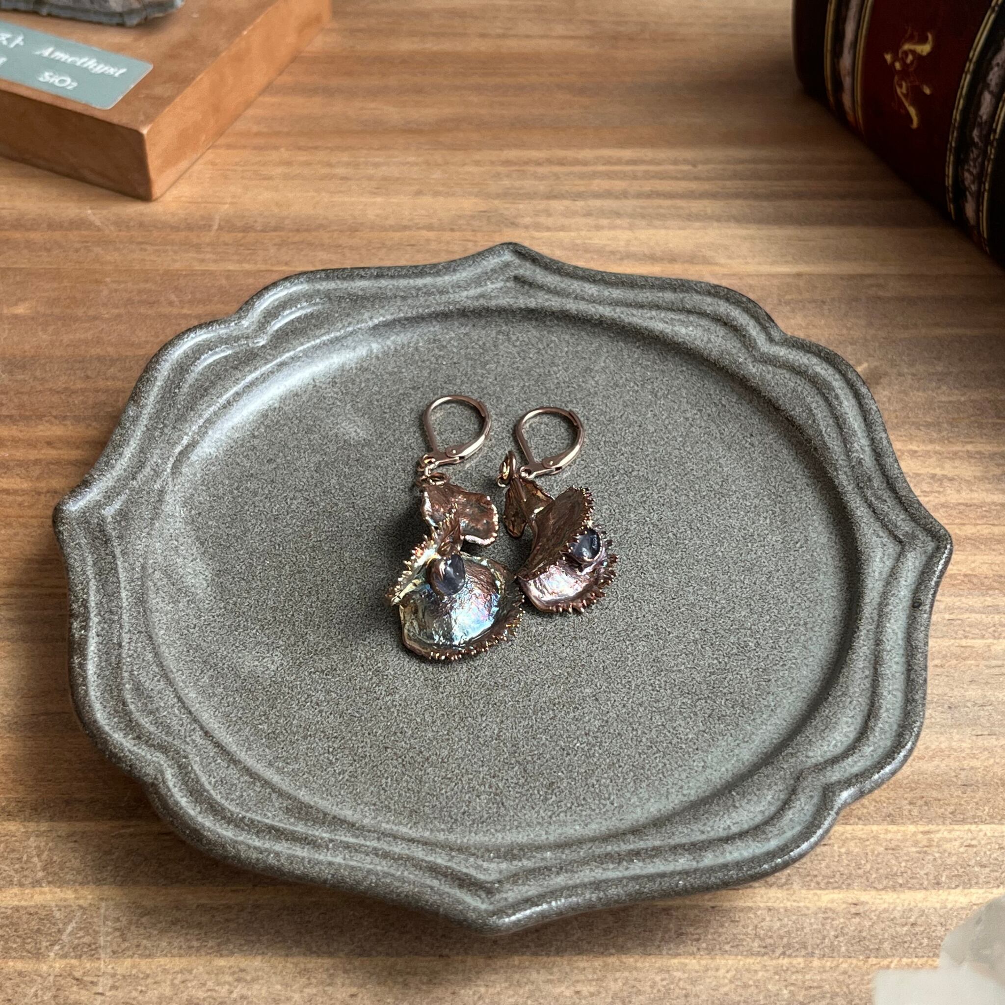 宝石を食べたハエトリグサのピアス63( Bristle tooth×アイオライト×アンティーク)
