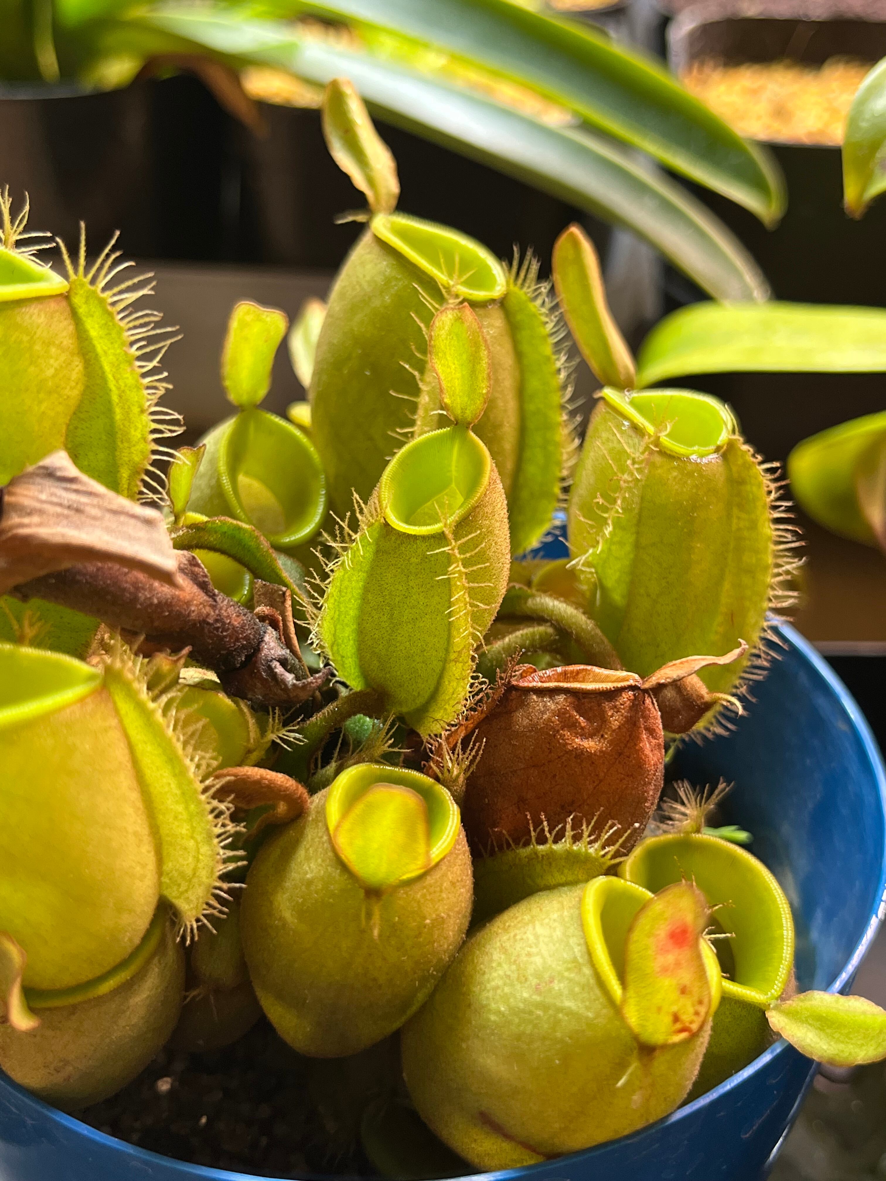 我が家で栽培中の株はまだ小さいため、他のネペンテスと同様捕虫嚢は葉先に生じるのみである。
