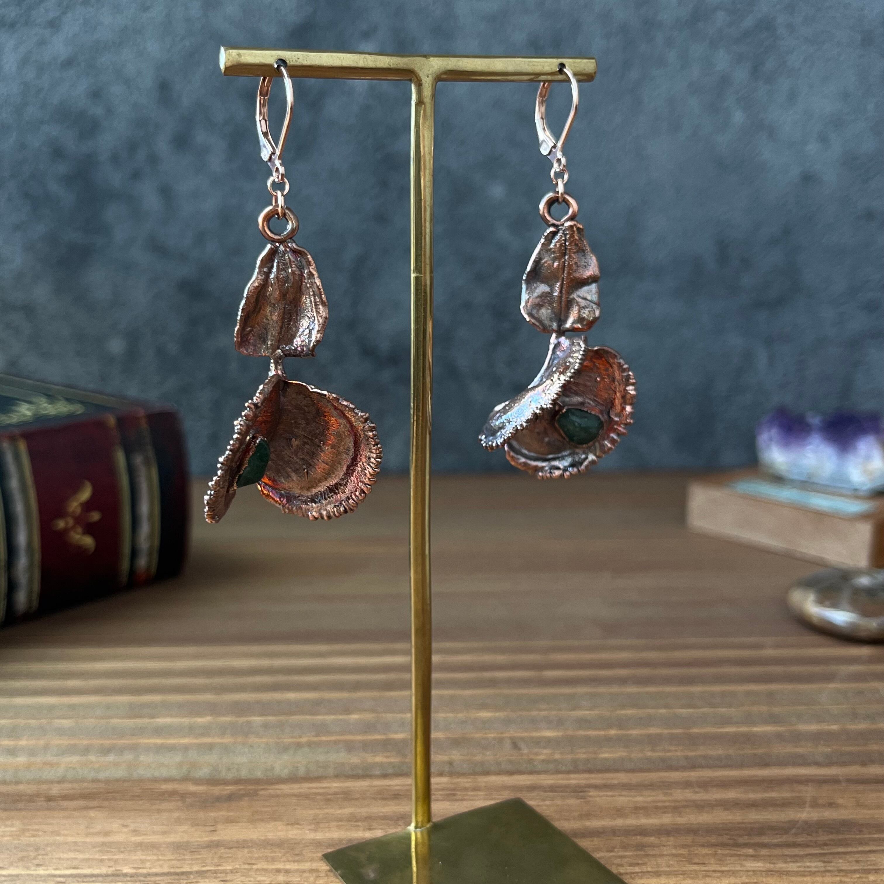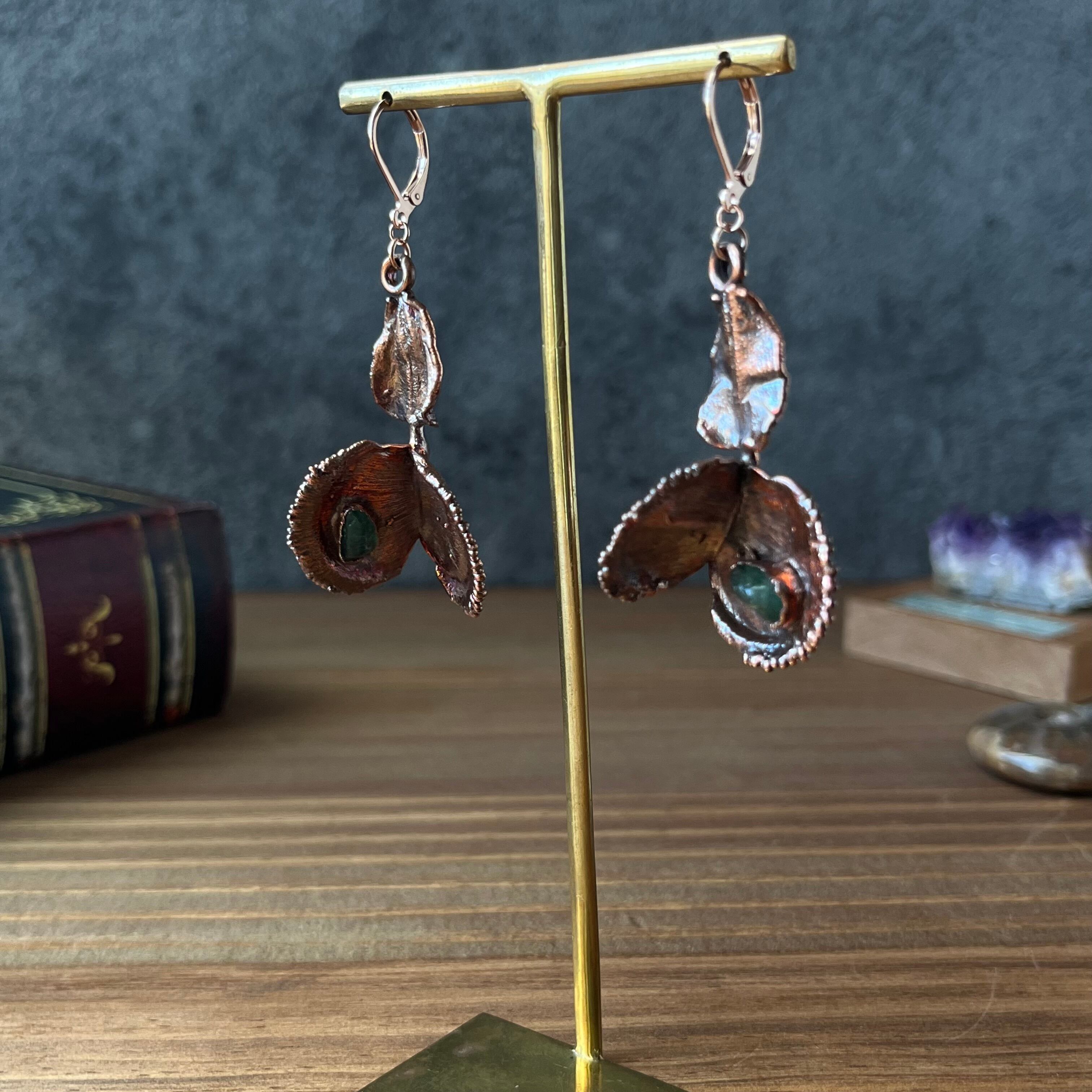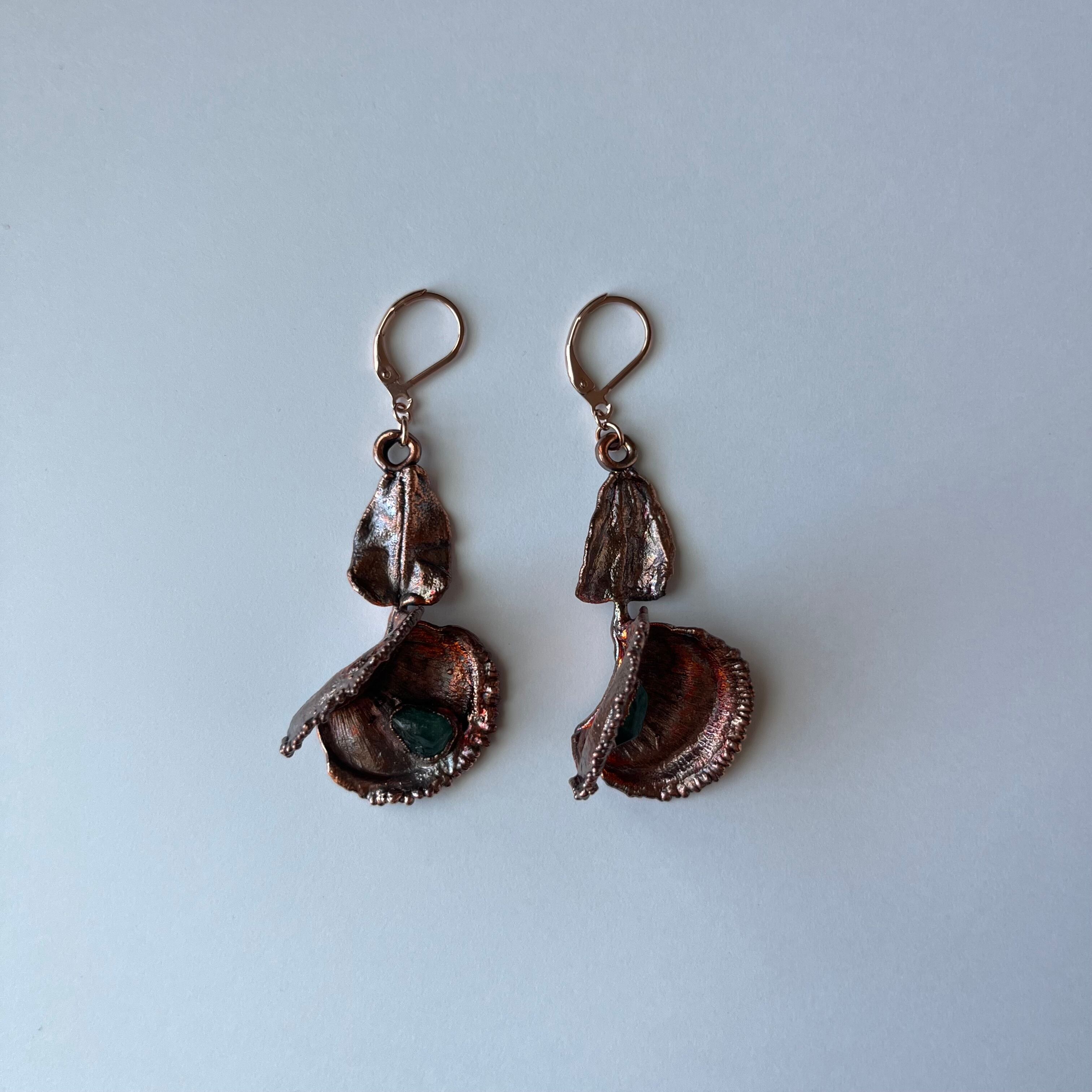 銅、サージカルステンレス316(ピアス、丸カン)、植物、天然石