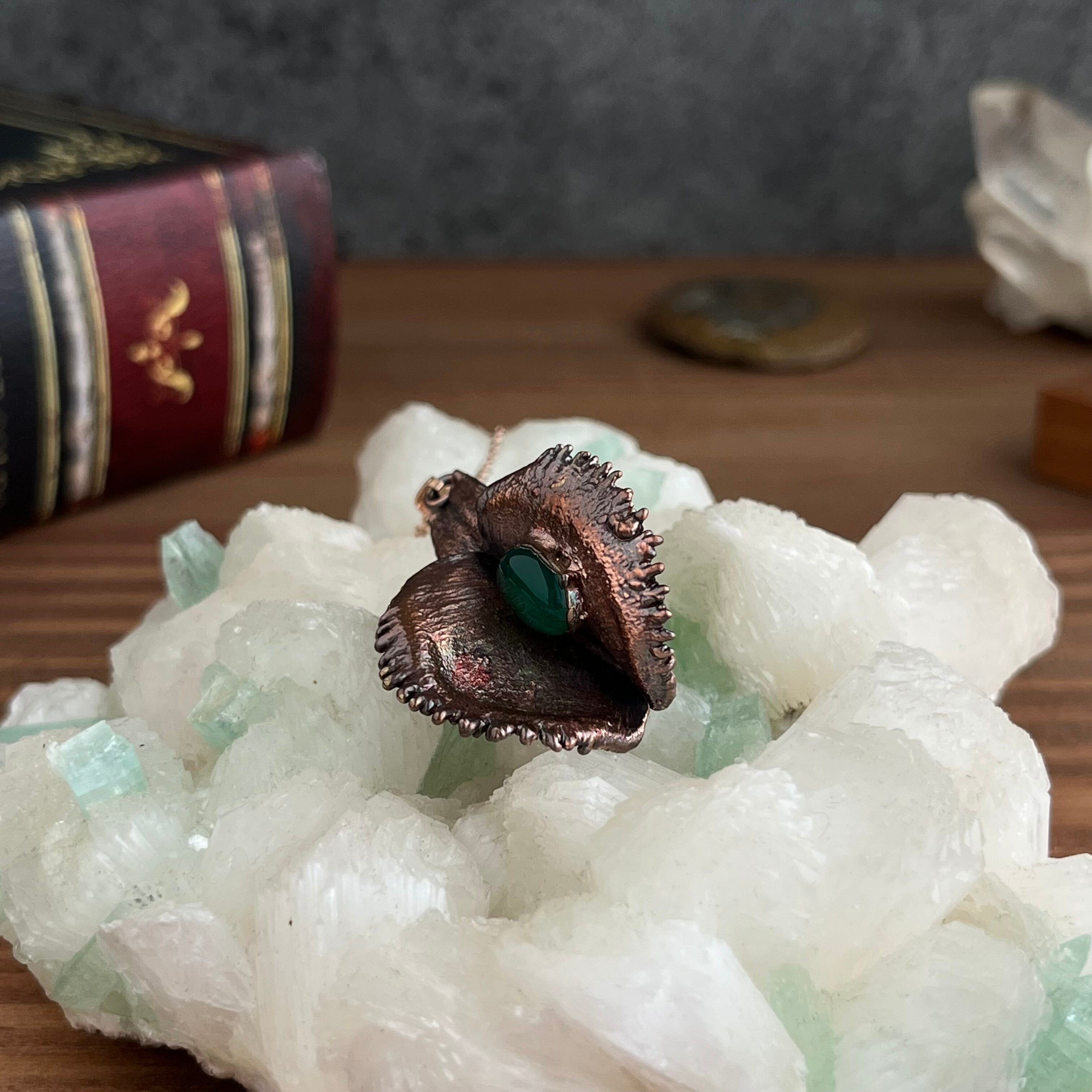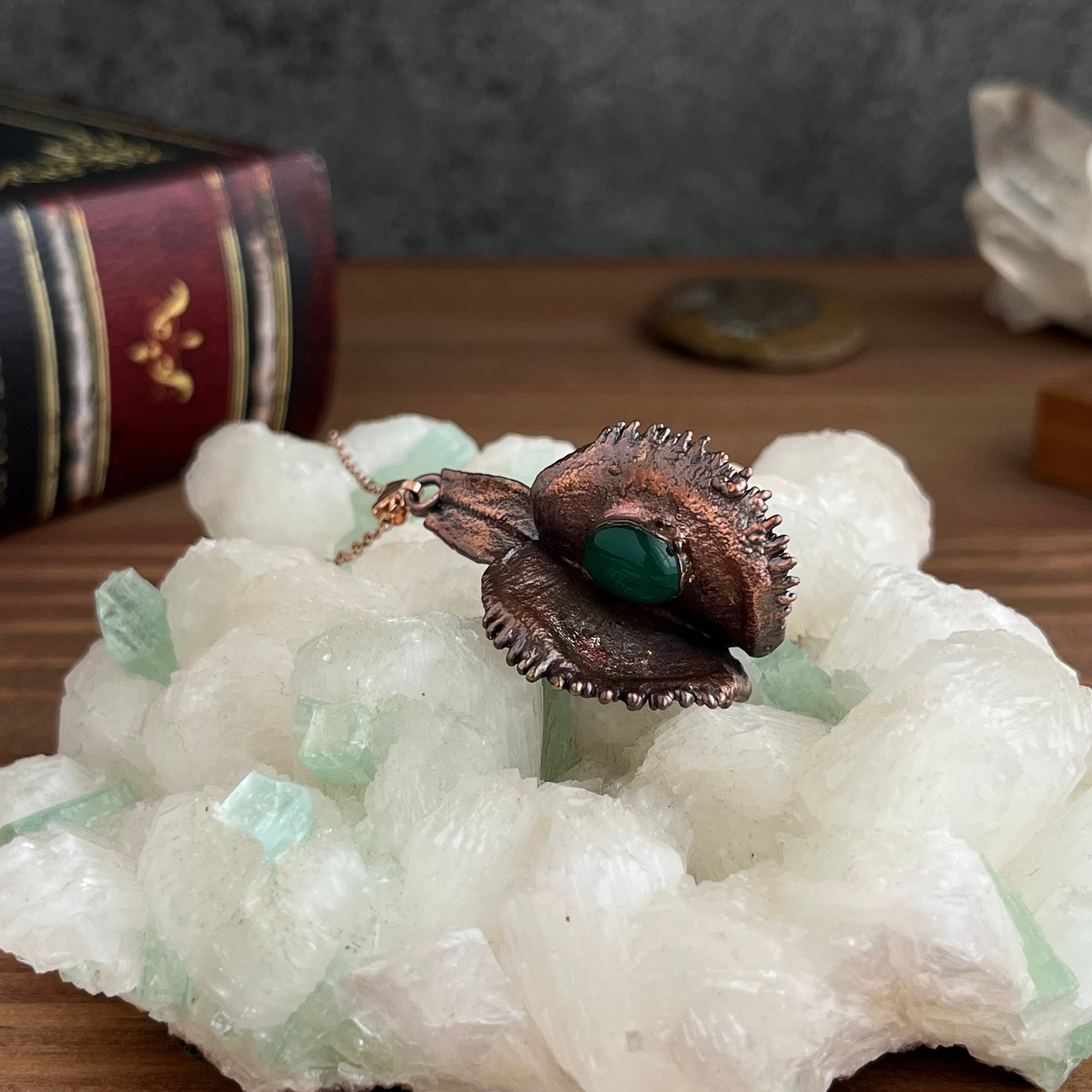 作者が世界で一番大好きな食虫植物・ハエトリグサの捕虫葉で制作したネックレスです。