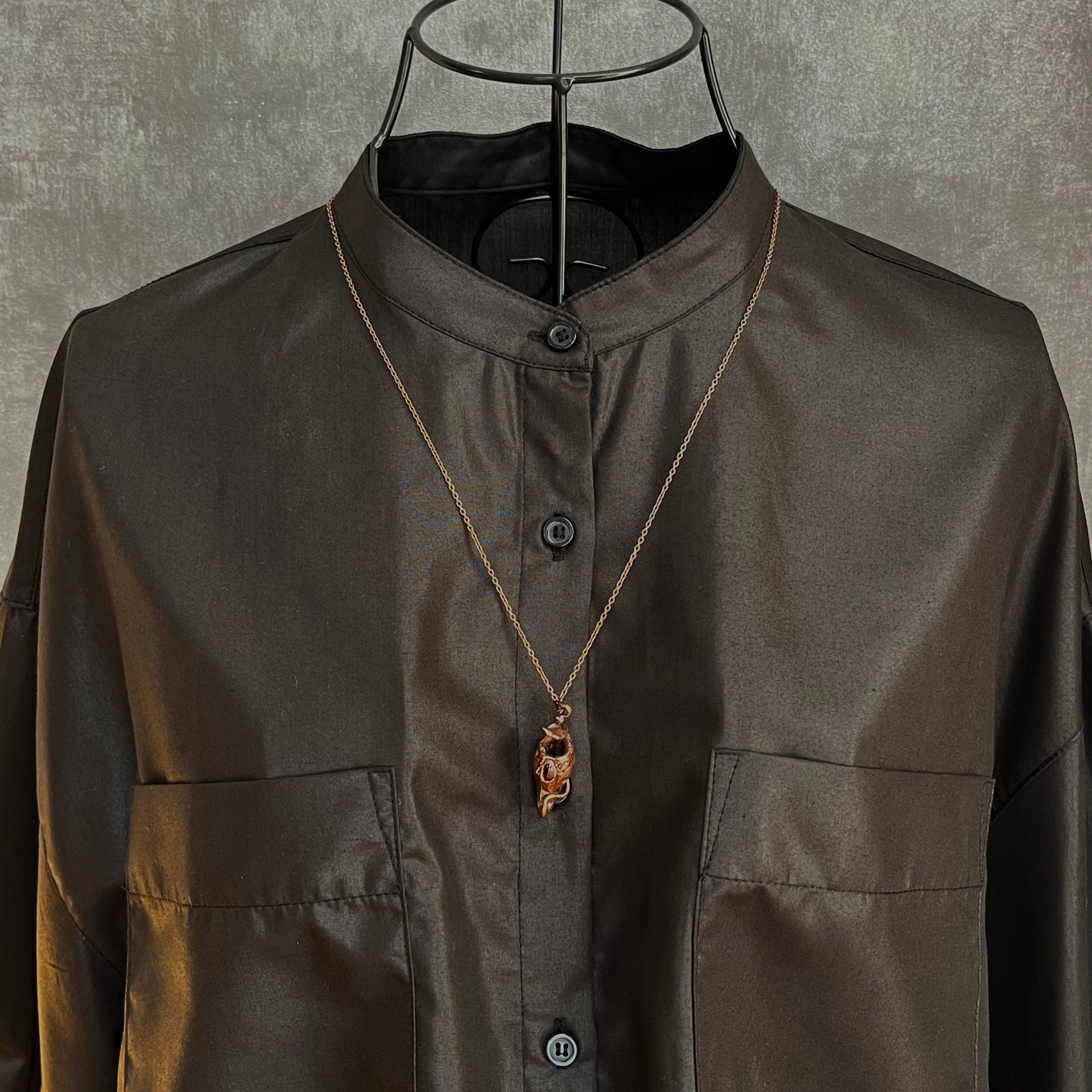 ⚫︎真鍮製のチェーンにいぶし加工を施して制作しているため、ところどころ色の濃淡があります
