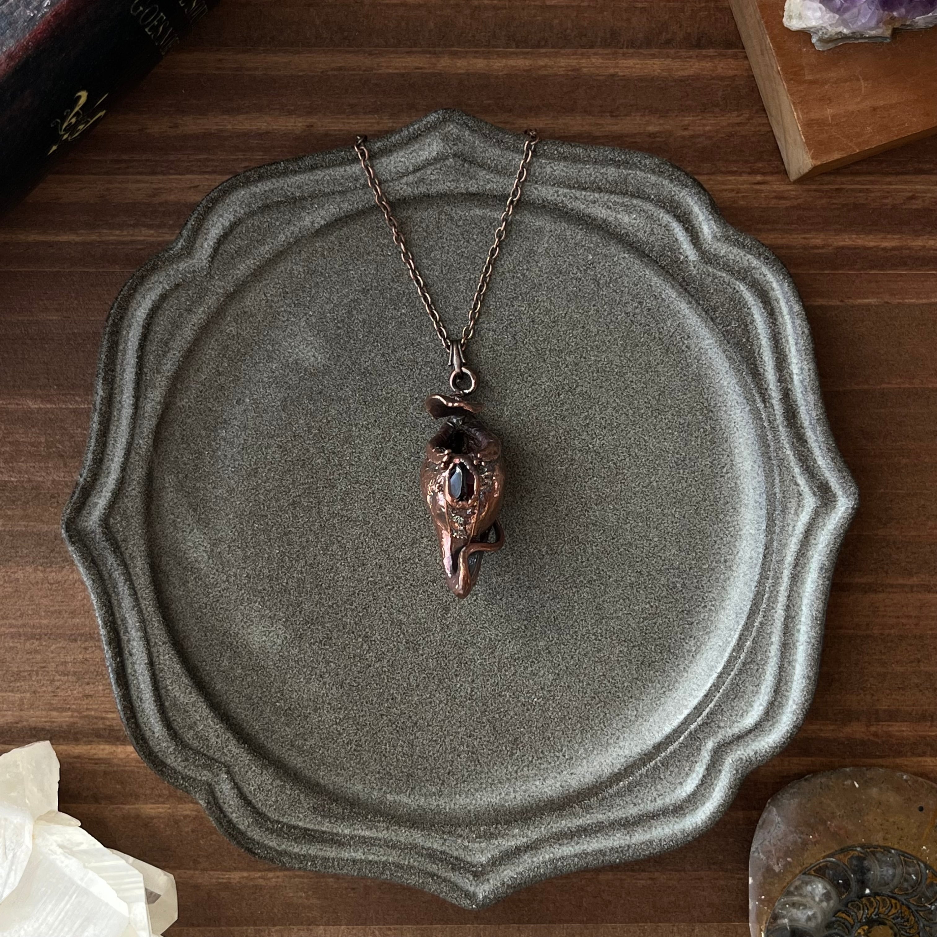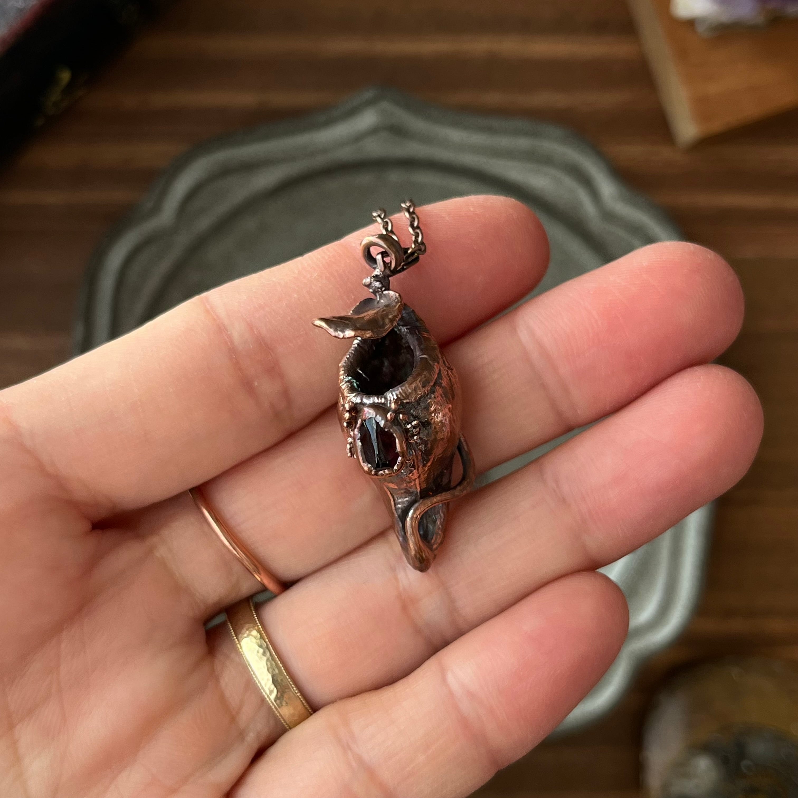 宝石の蜜をこぼすウツボカズラのネックレス77(N.jamban×ガーネット×アンティーク)