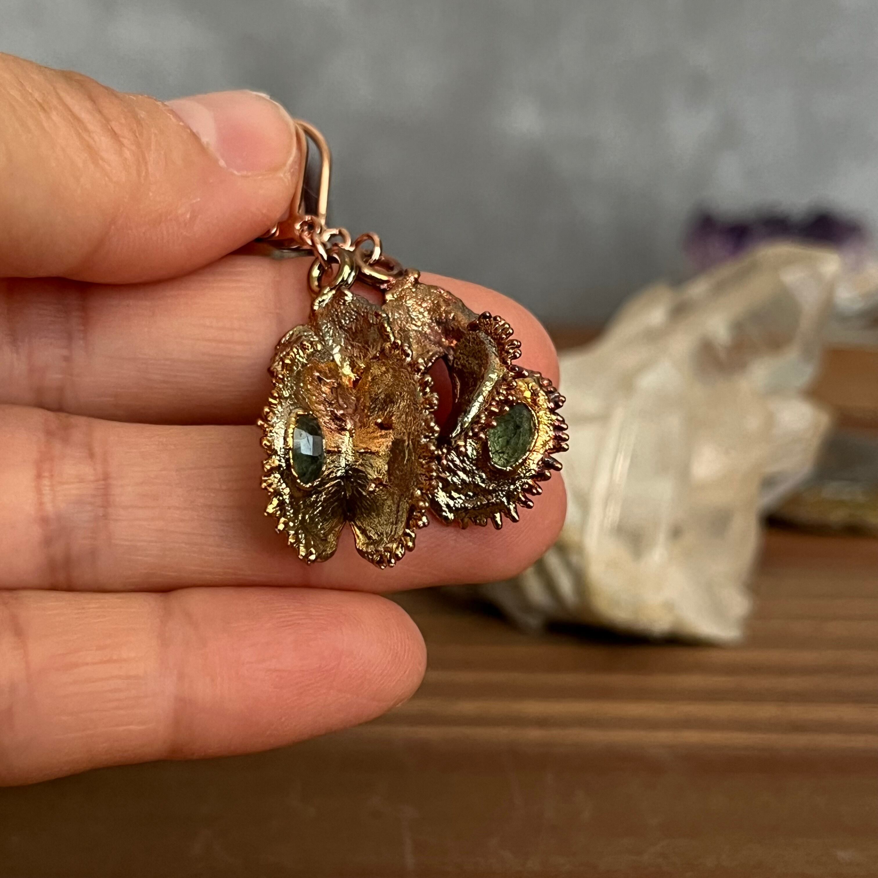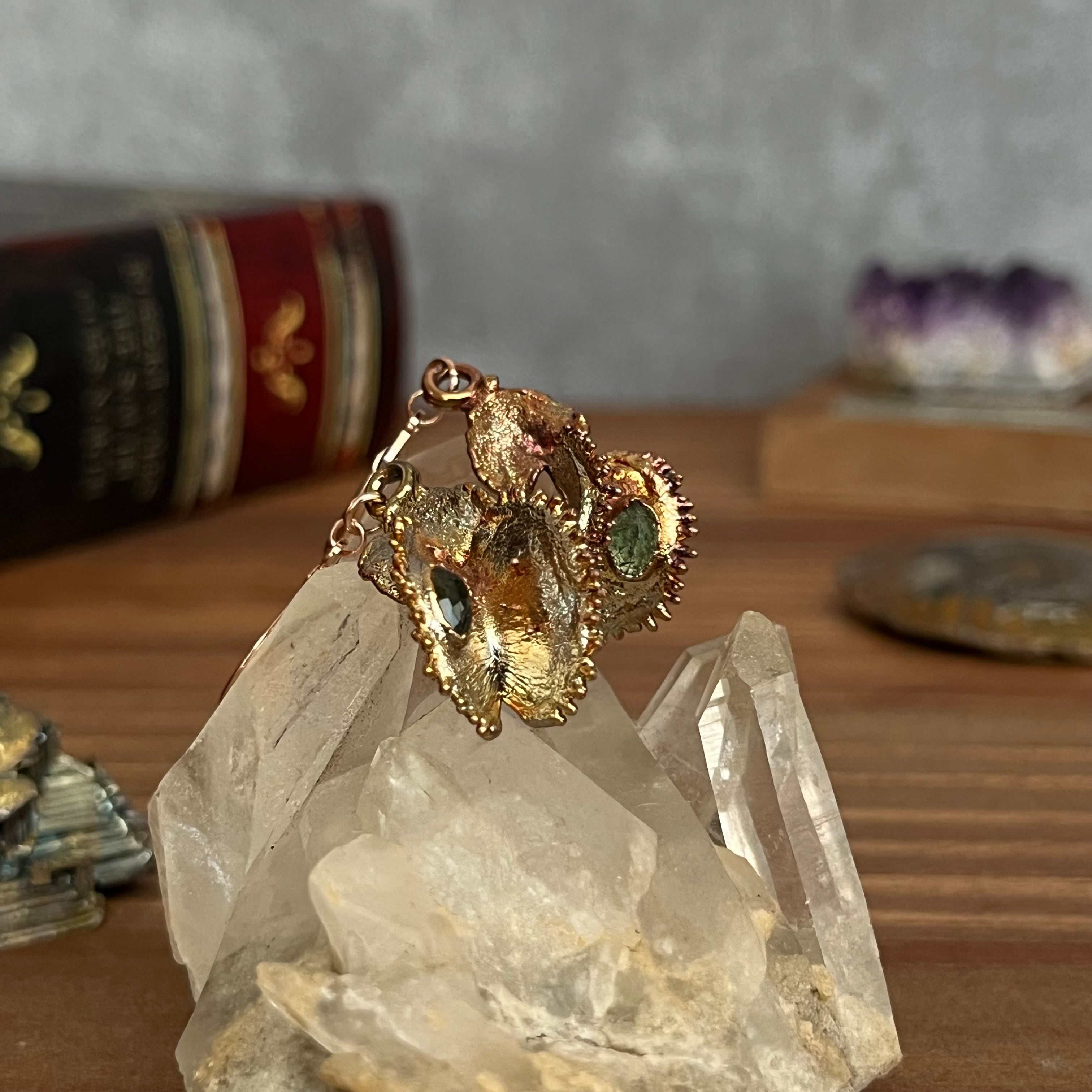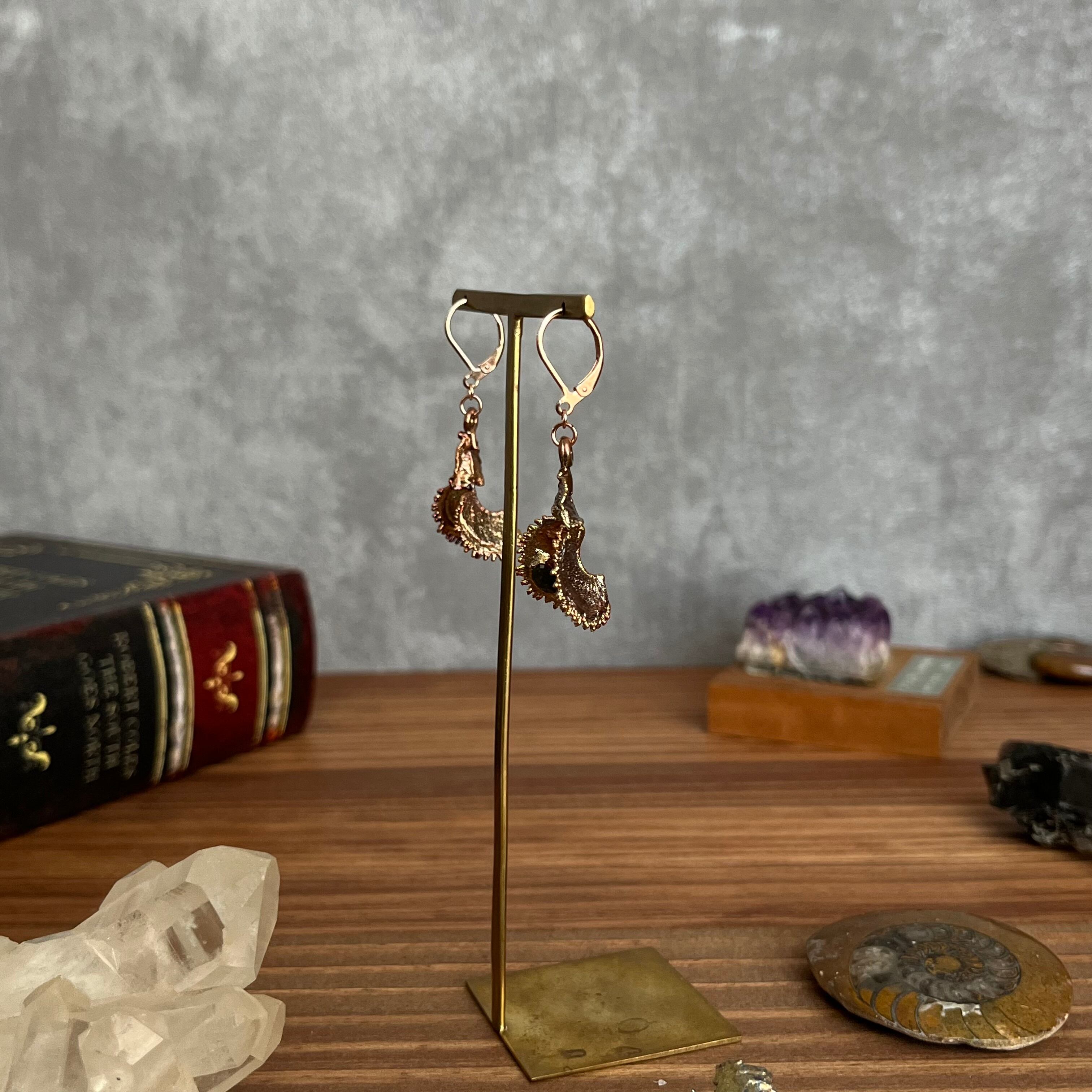 収穫した捕虫葉をエレクトロフォーミングという技法で銅めっきし、アクセサリーに仕立てているため、銅の中には本物のハエトリグサが入っています。