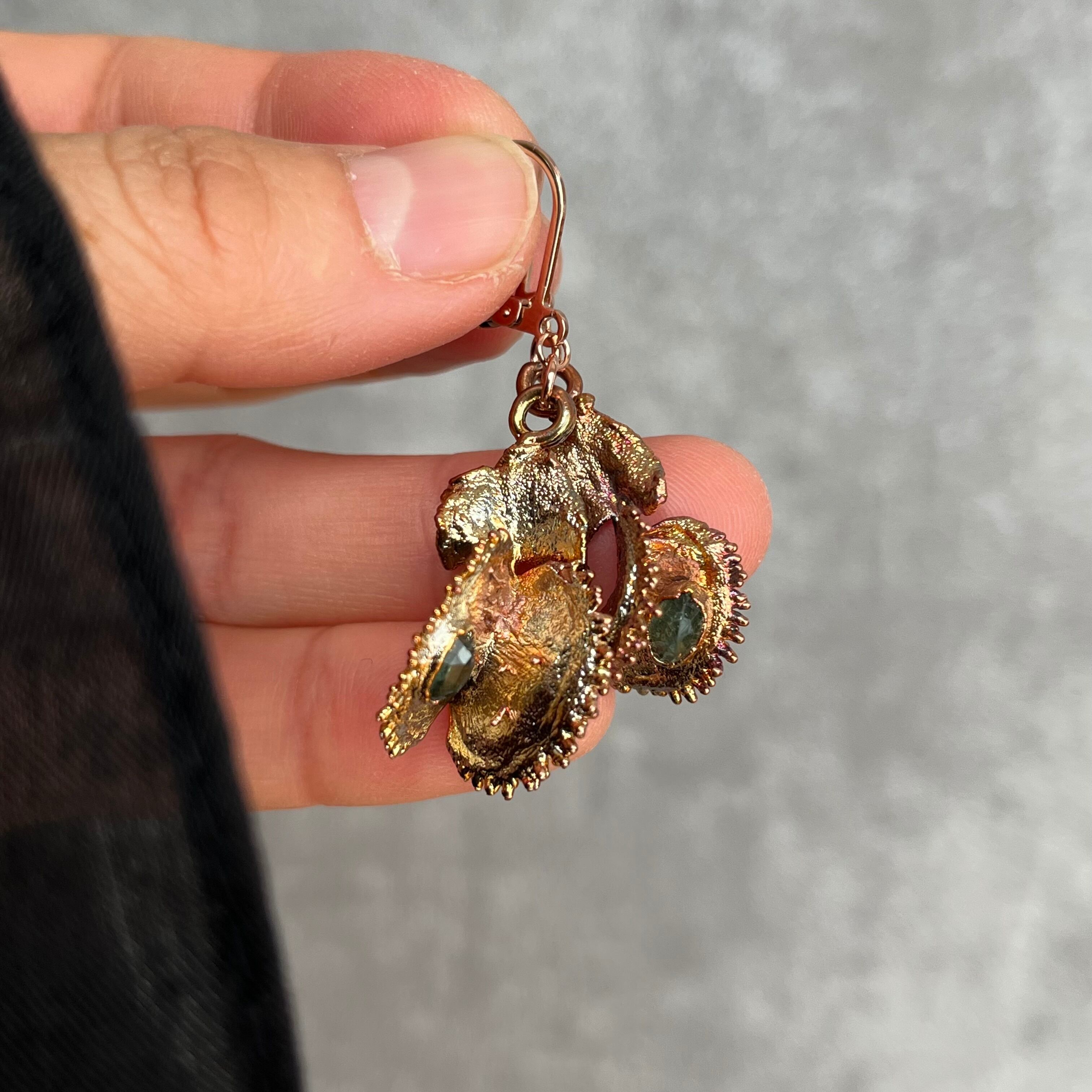 宝石を食べたハエトリグサのピアス83( Bristle tooth×エメラルド×アンティーク)