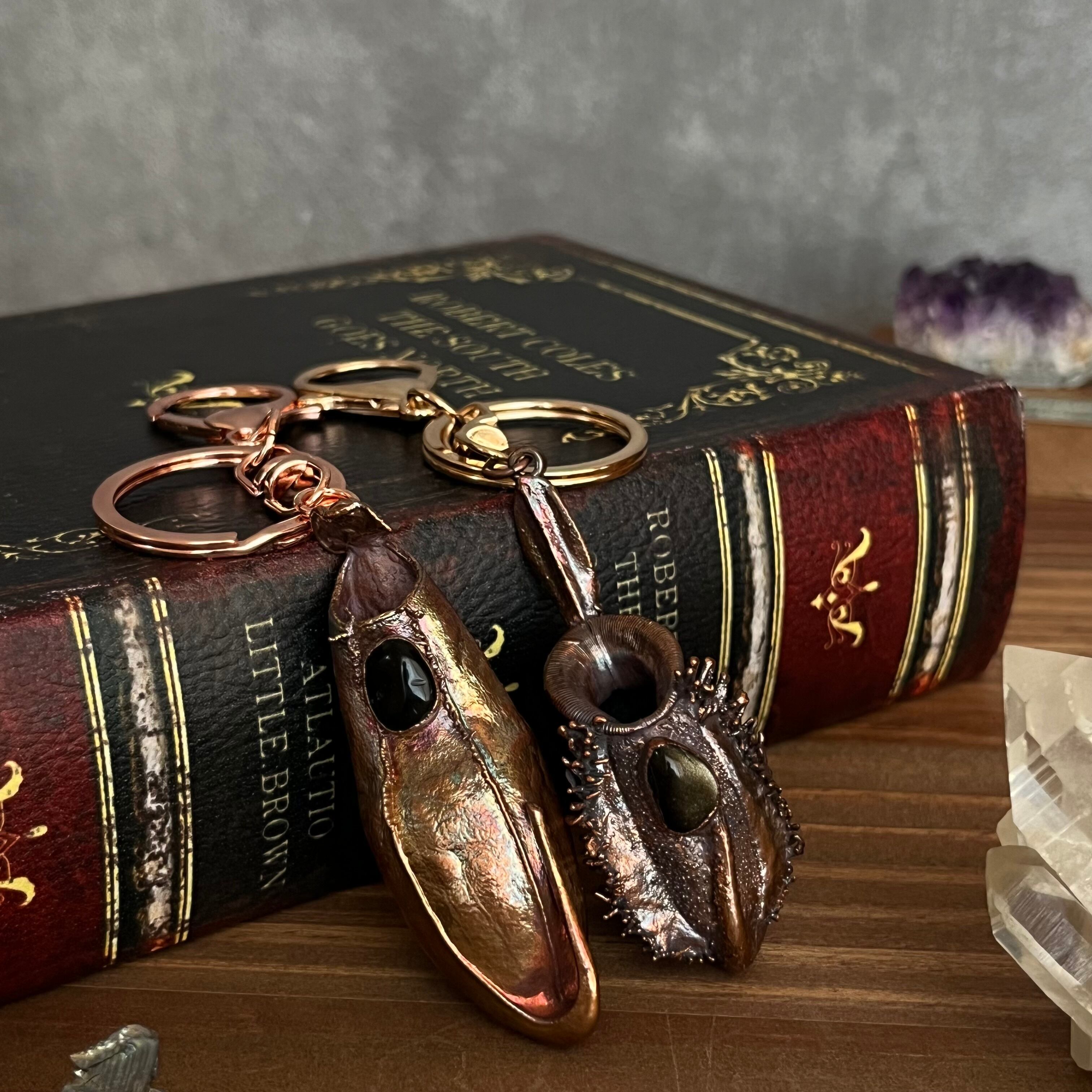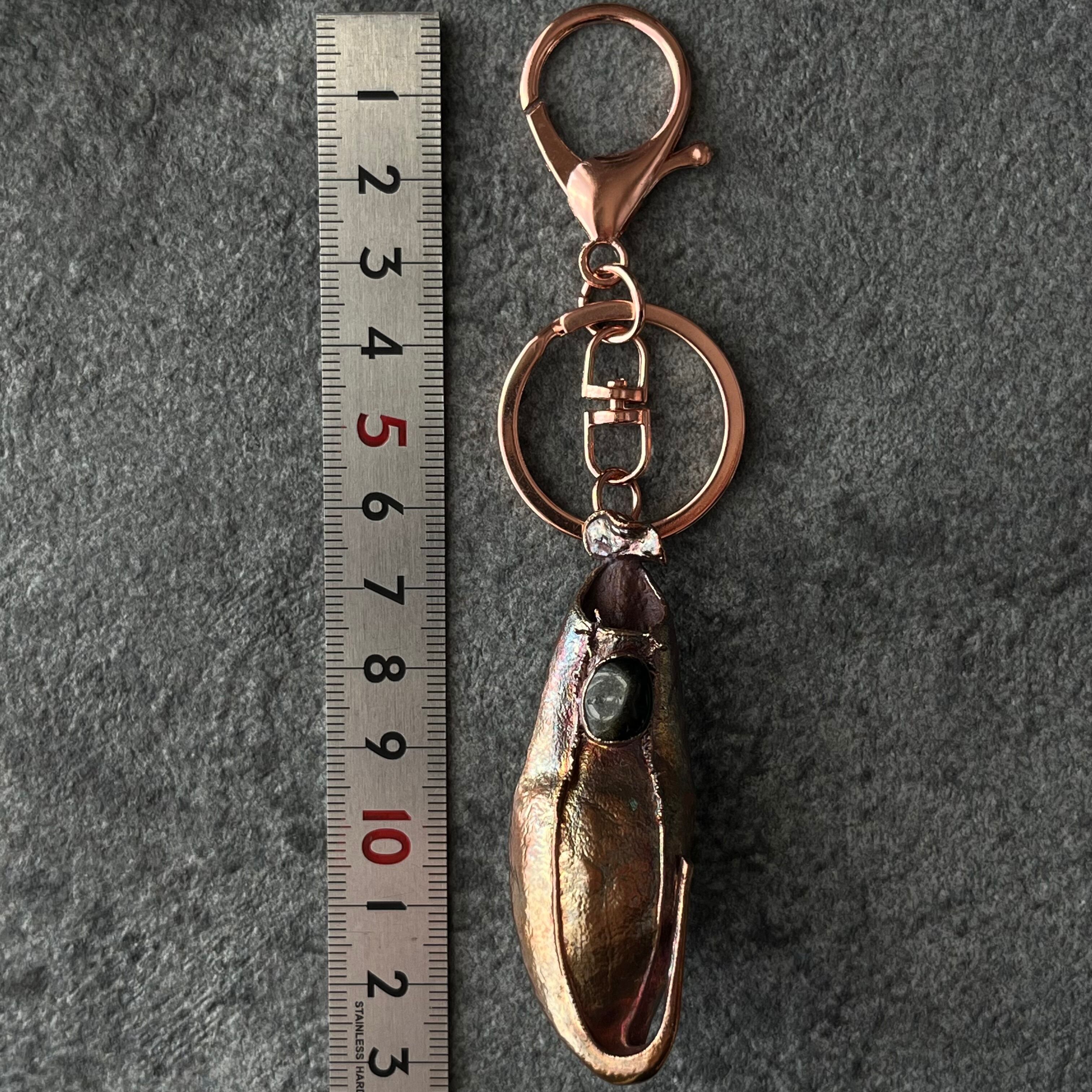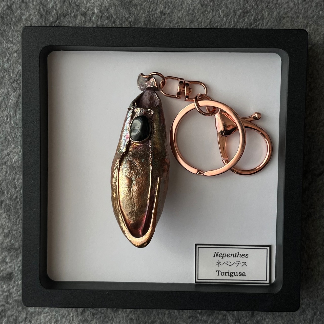 宝石の蜜をこぼすウツボカズラのキーホルダー84(N. gracilis×黒曜石×アンティーク)