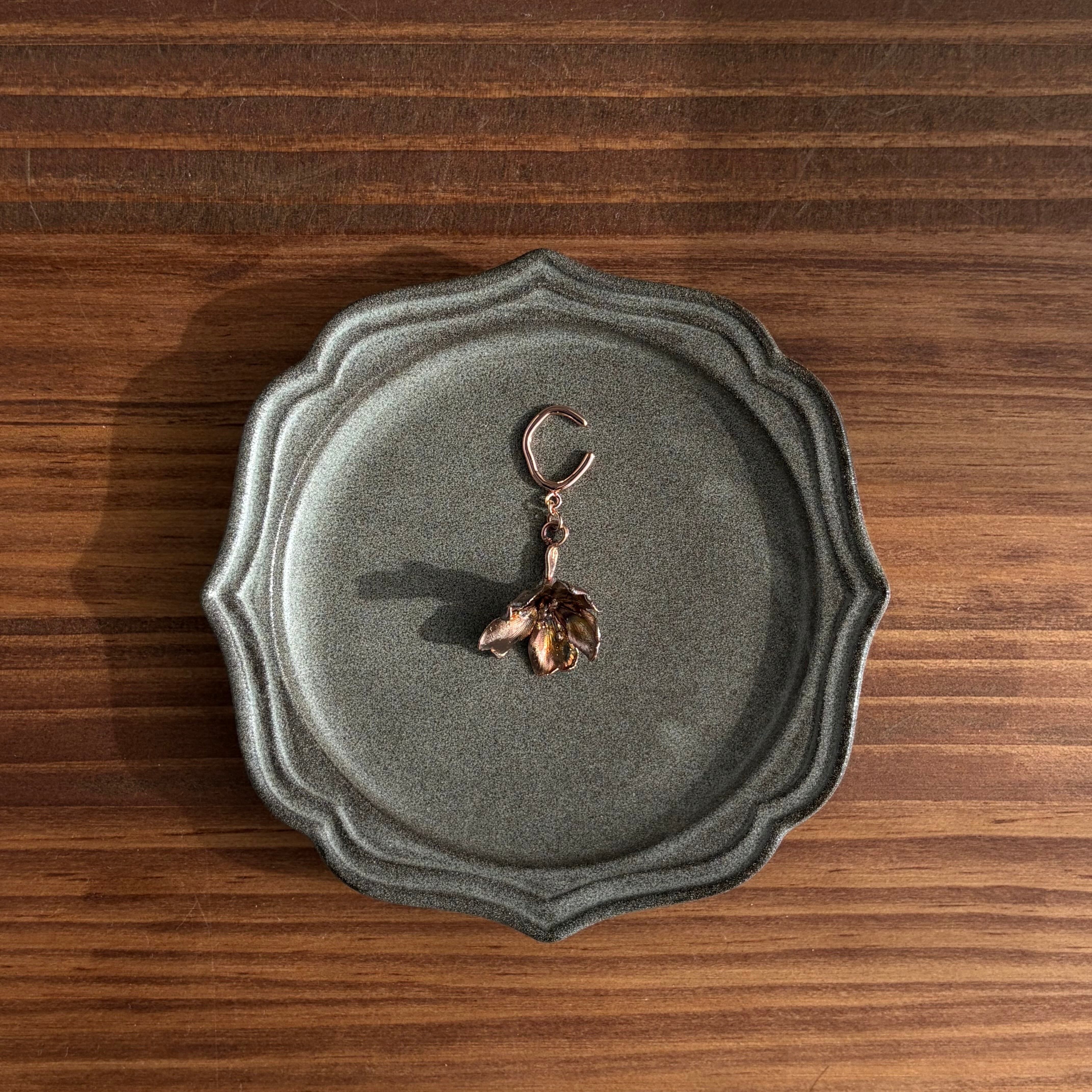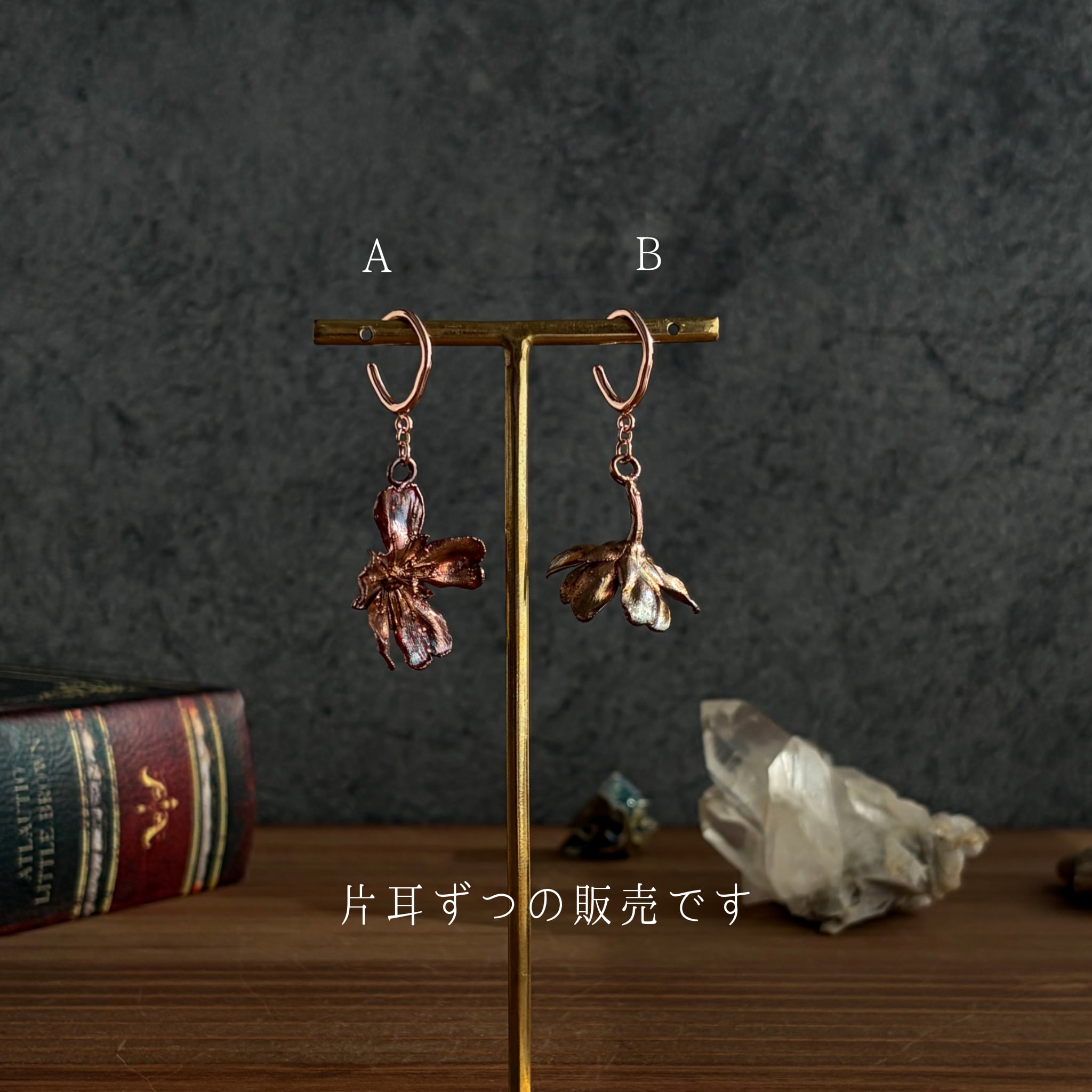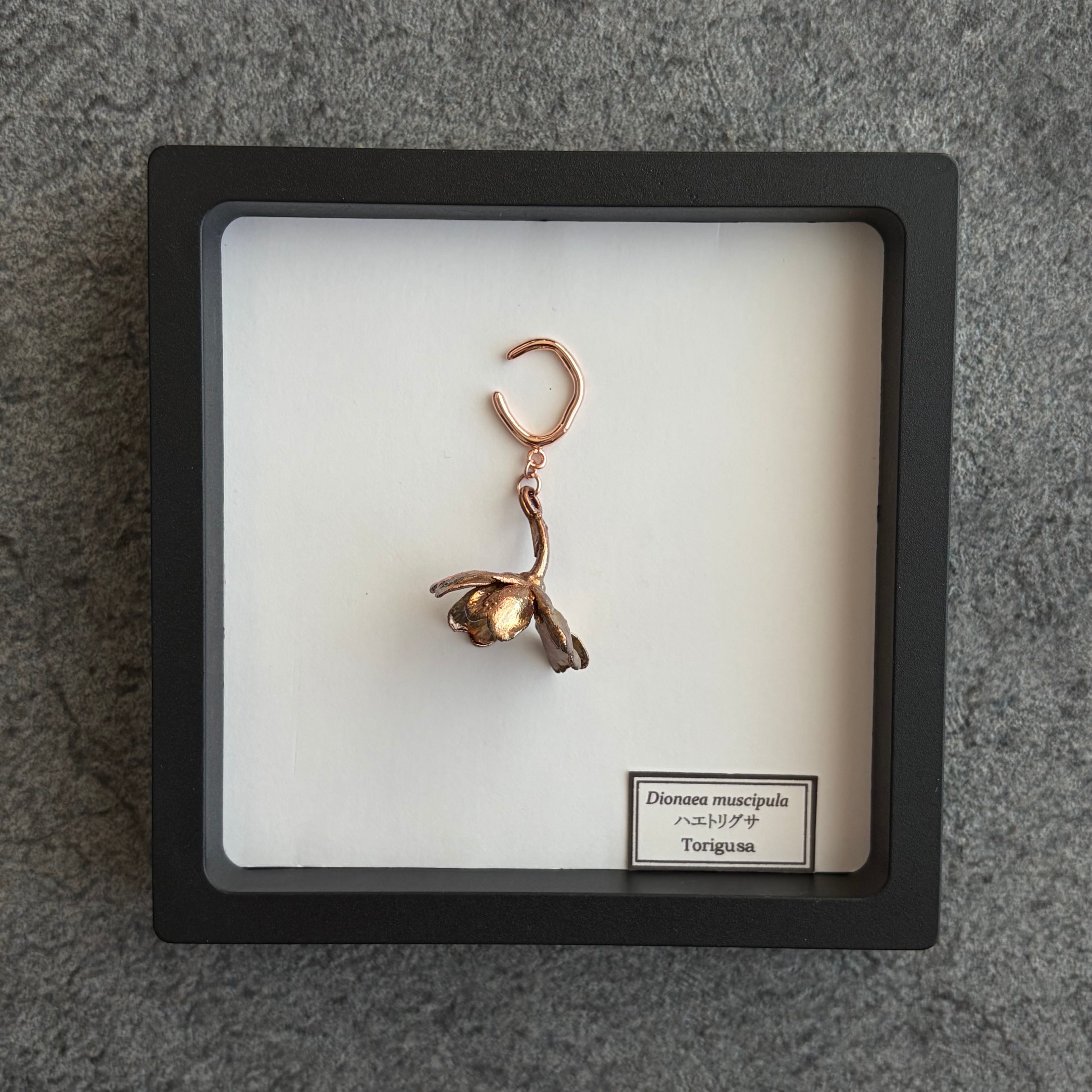 銅になったハエトリグサの花のイヤーカフ90B(片耳用・アンティーク)