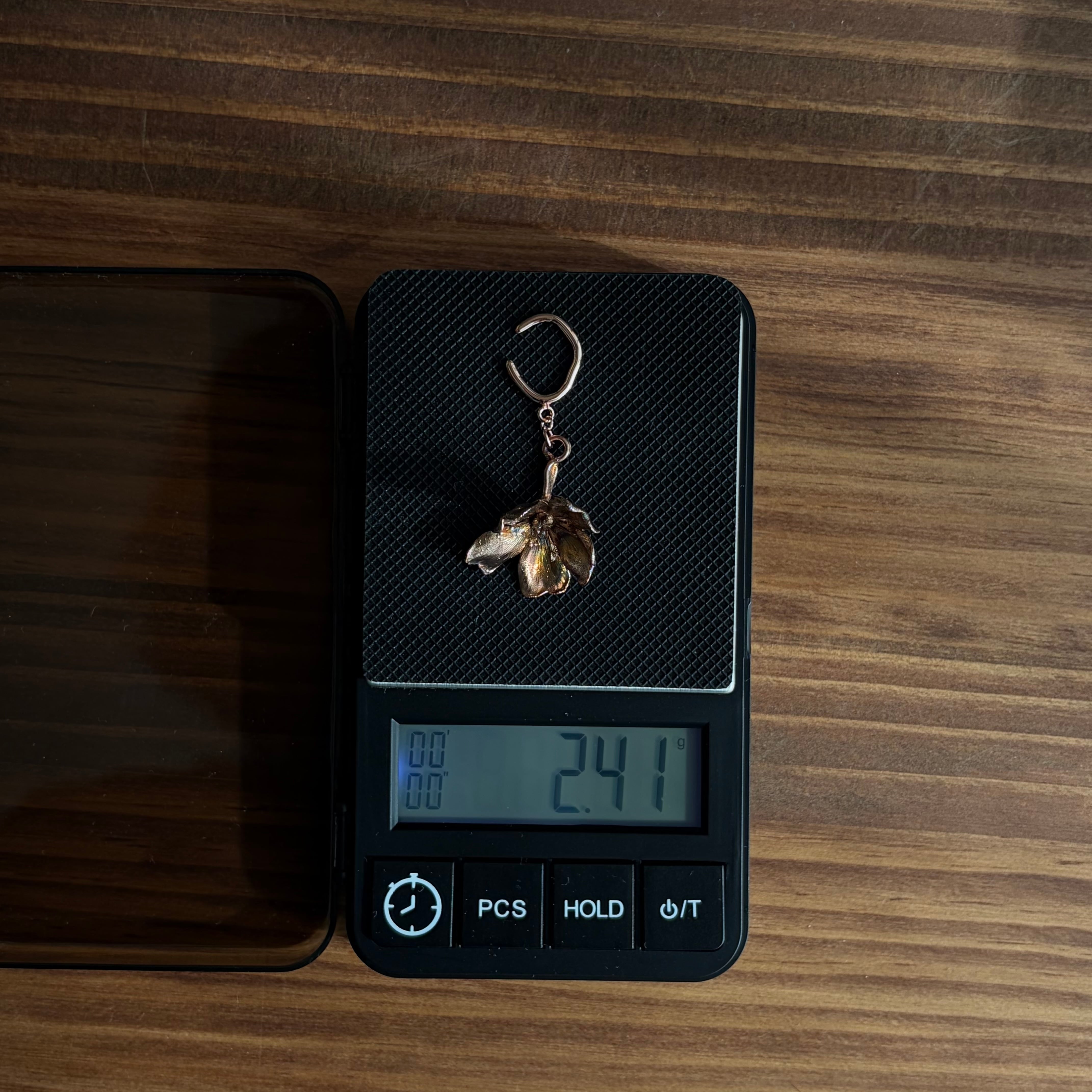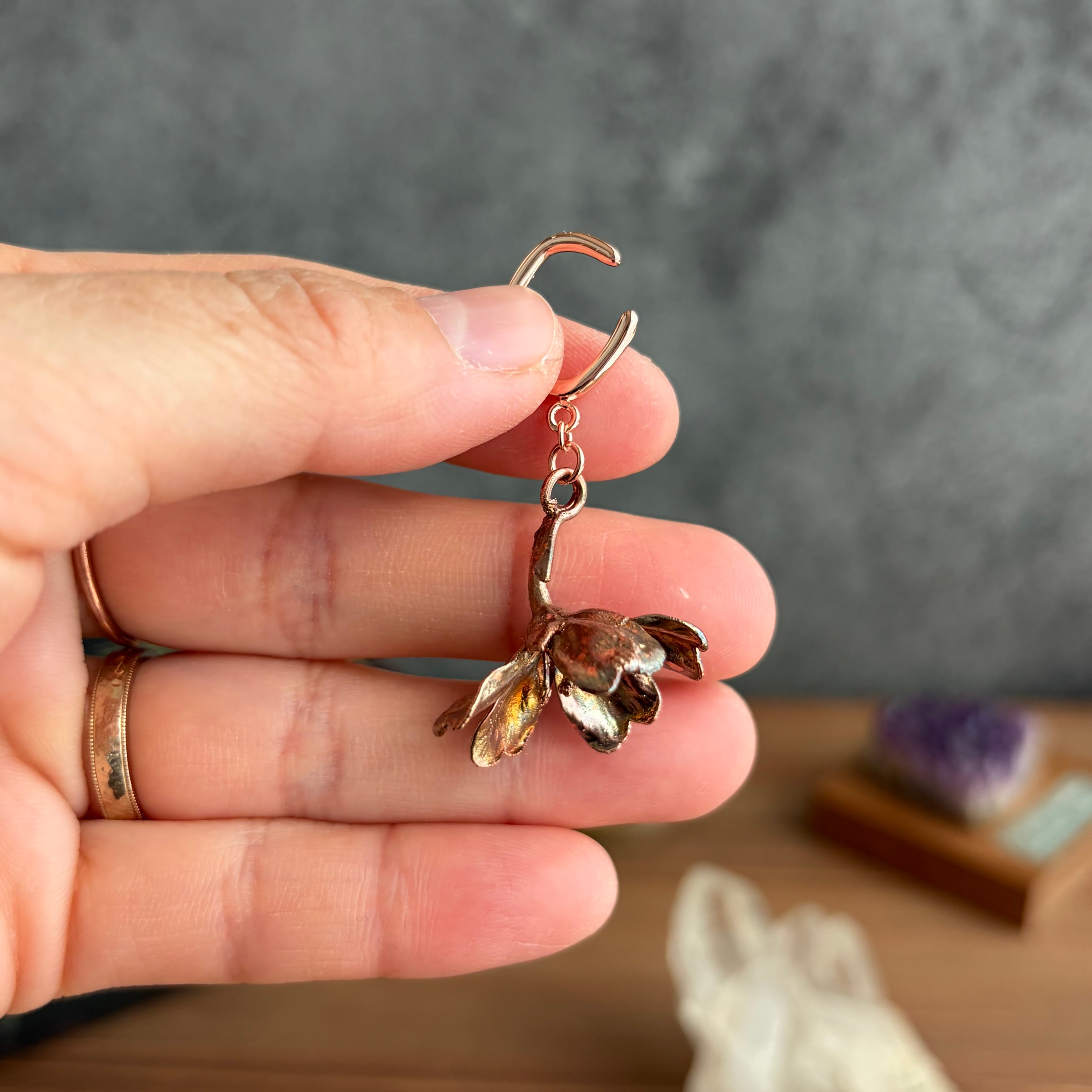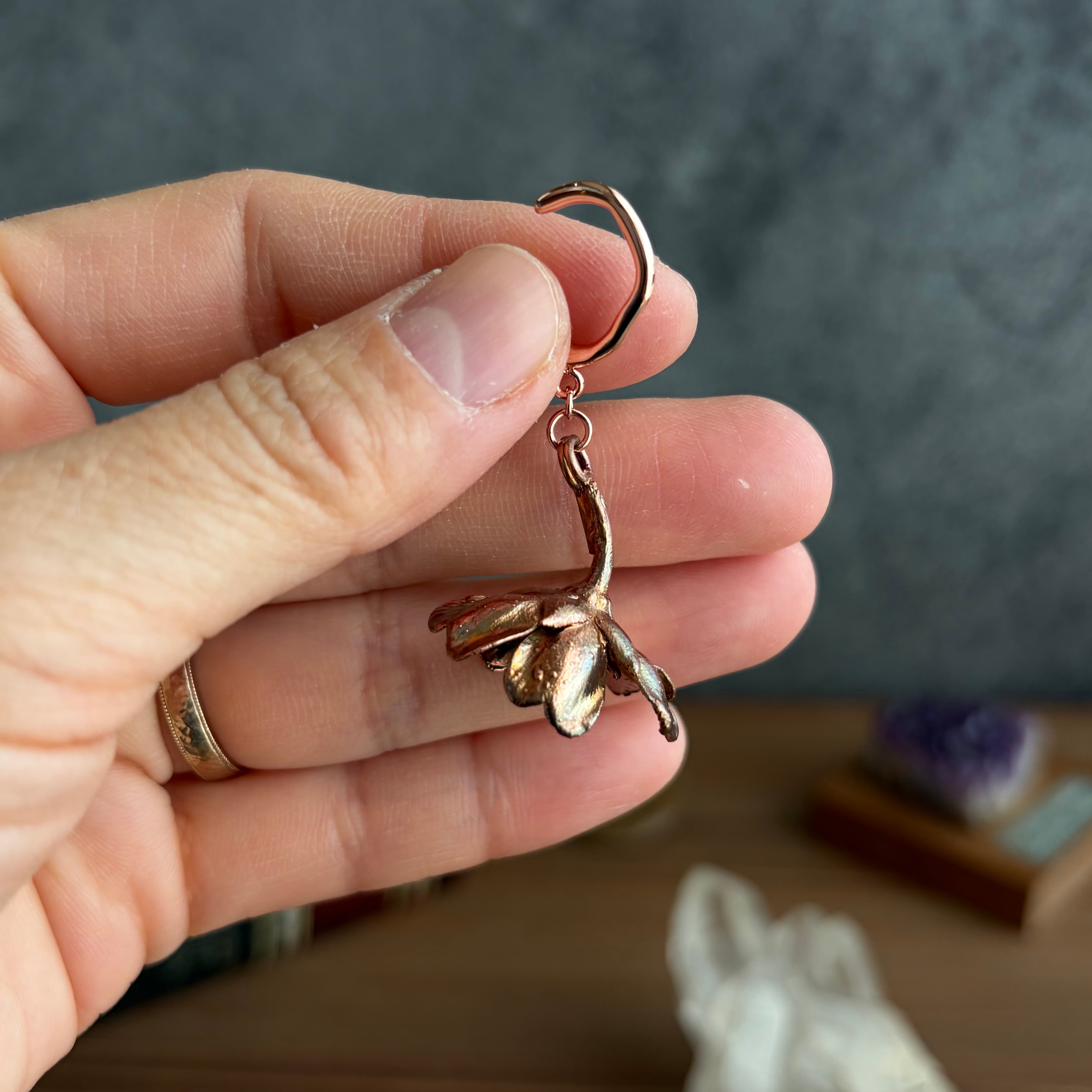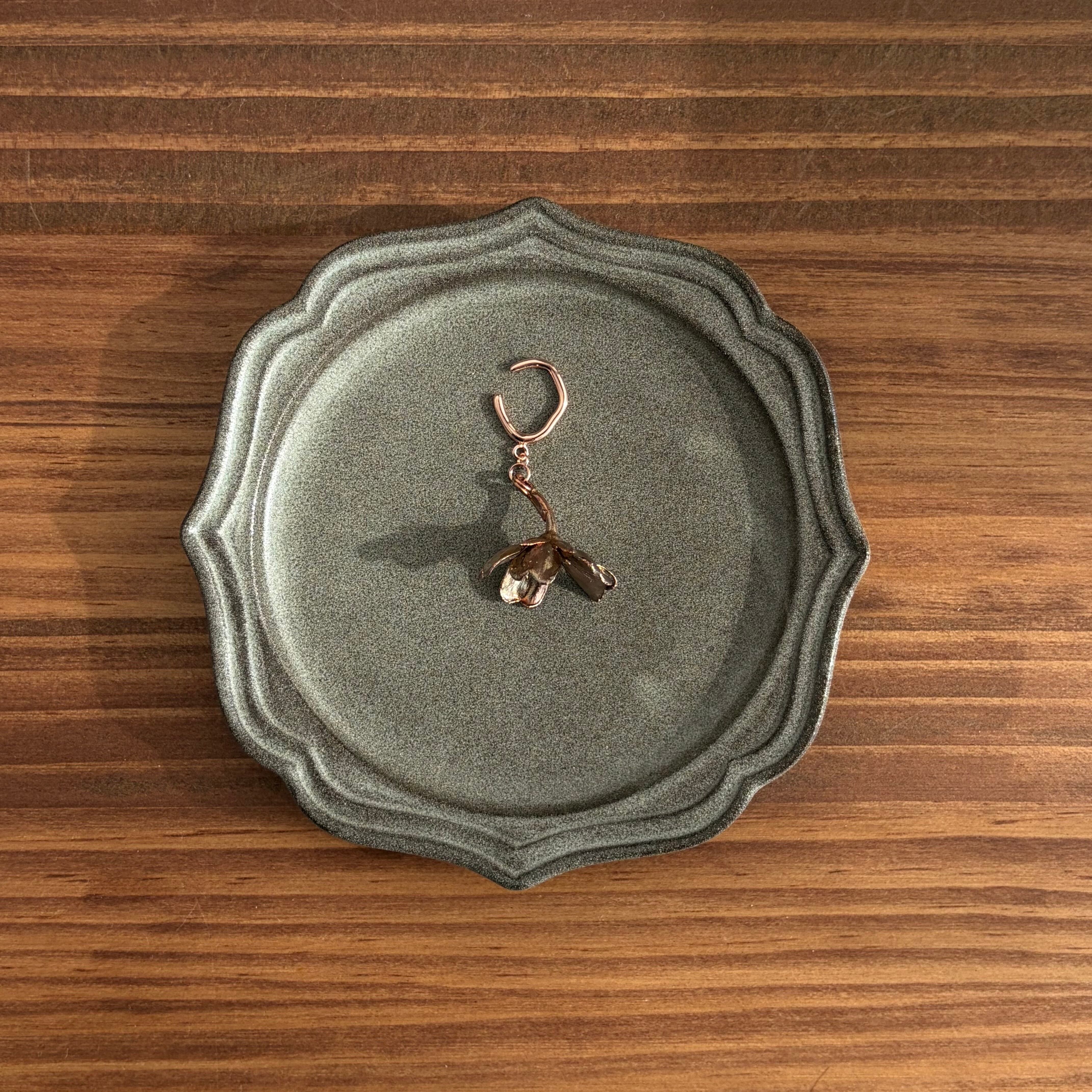 銅になったハエトリグサの花のイヤーカフ90B(片耳用・アンティーク)