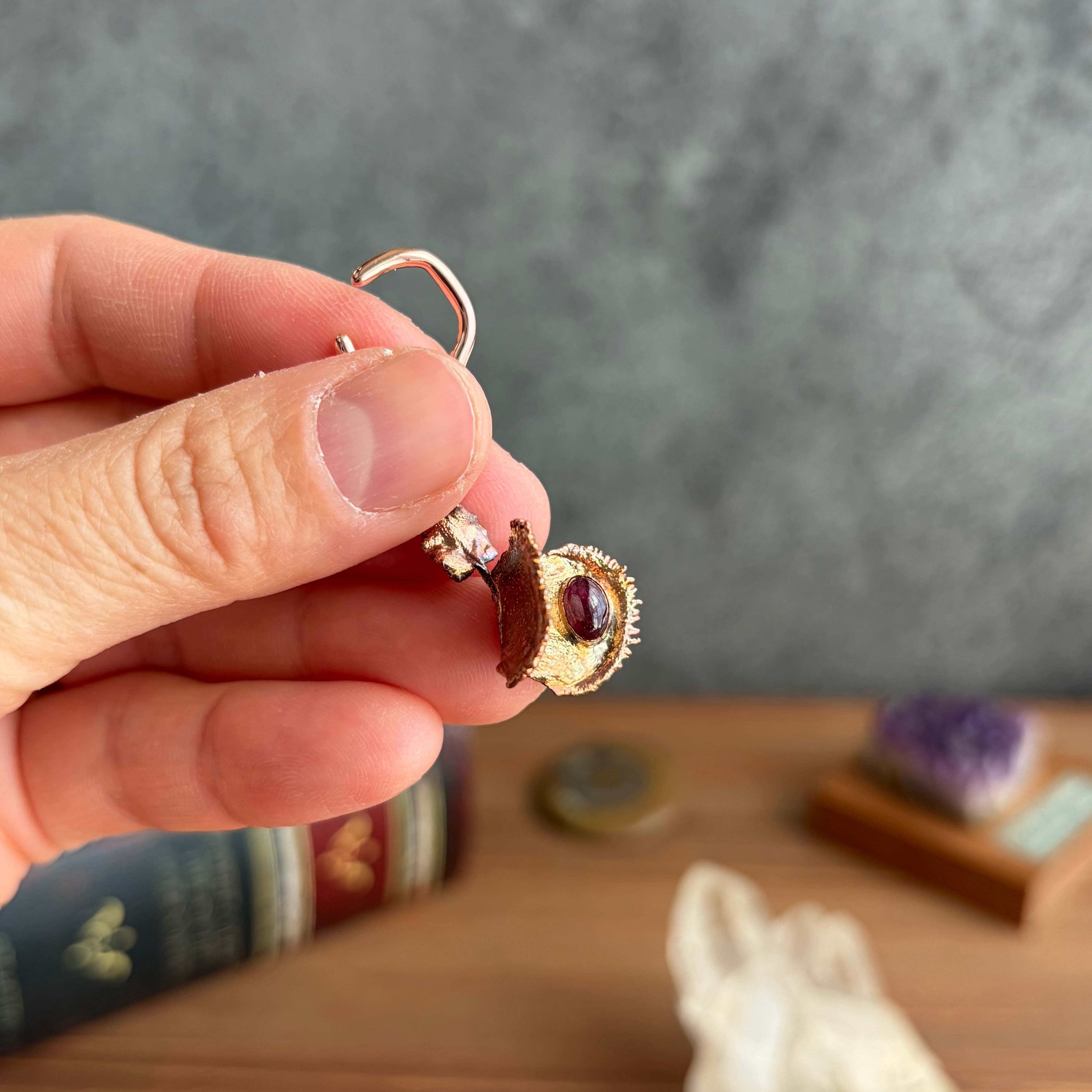 宝石を食べたハエトリグサのイヤーカフ92( Bristle tooth ×ルビー×アンティーク)