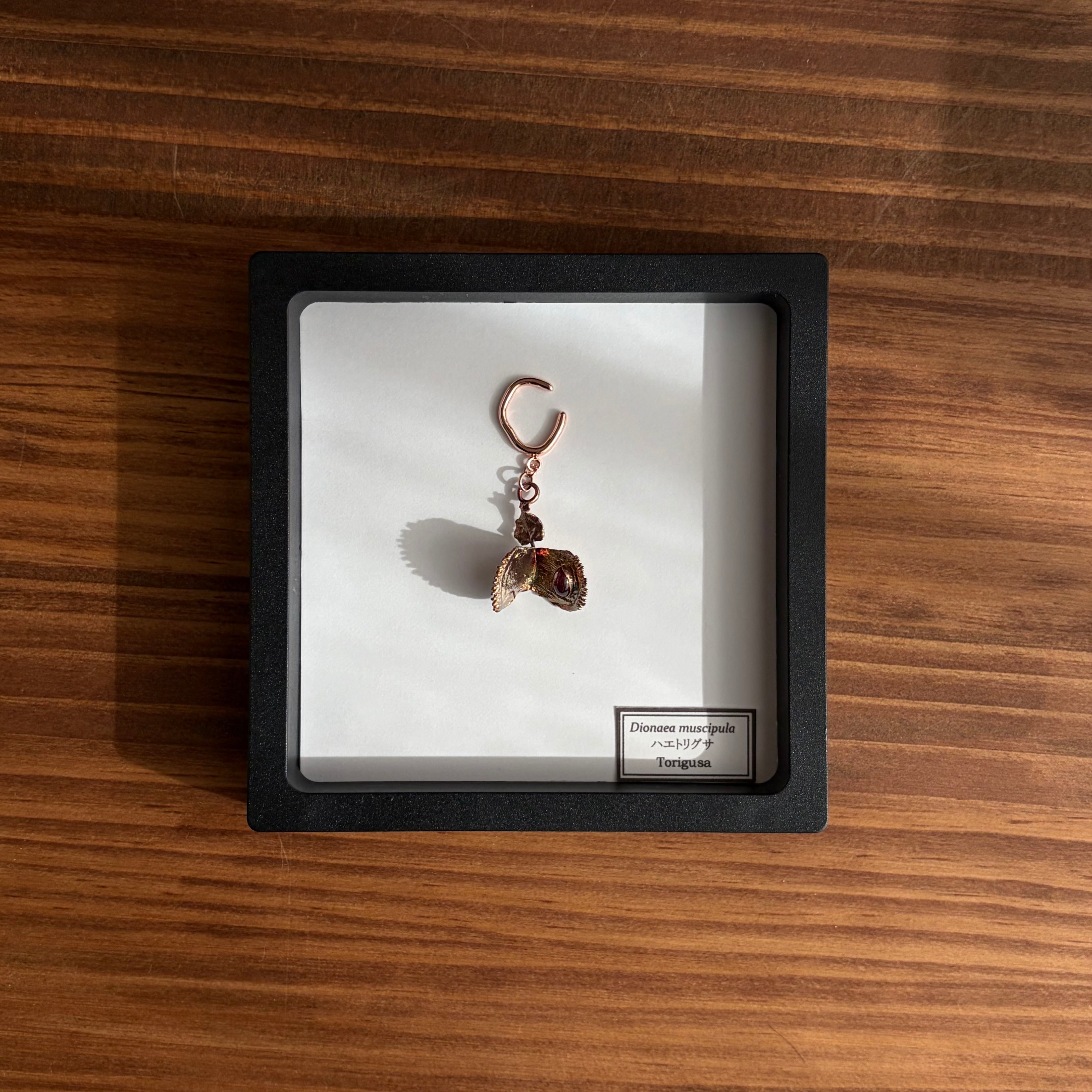 作者が世界で一番大好きな食虫植物・ハエトリグサの捕虫葉で制作したイヤーカフです。