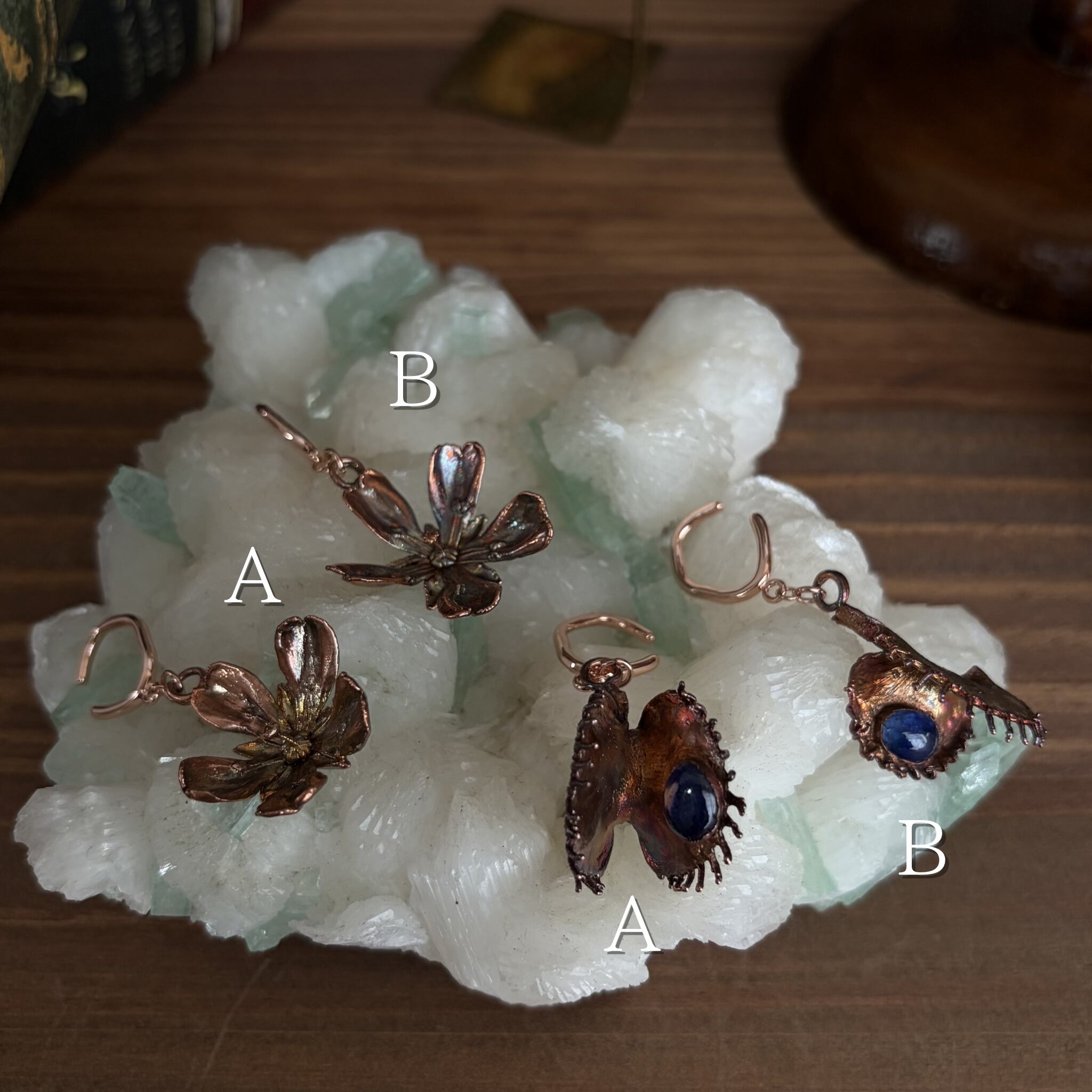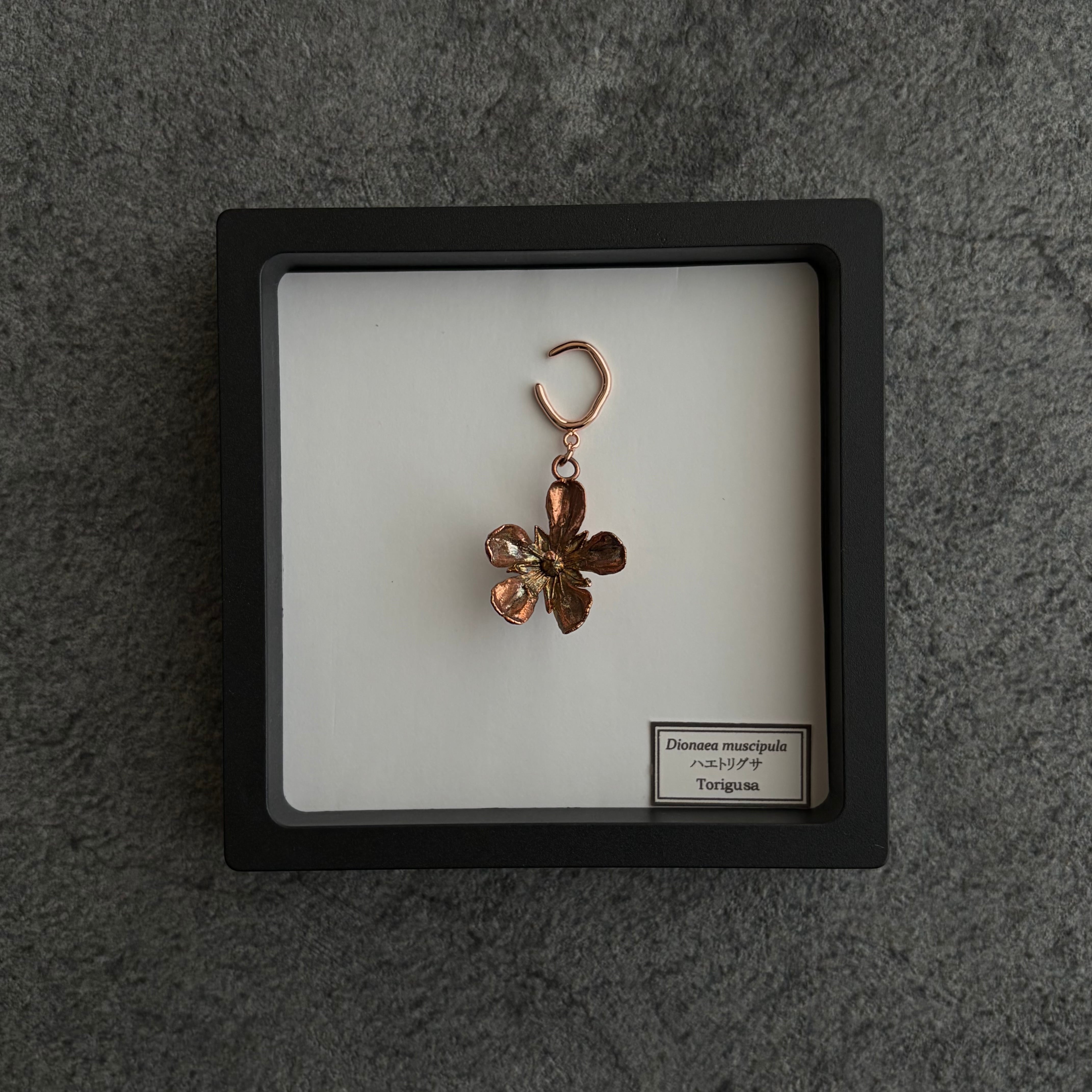 その1:「銅になったハエトリグサの花のイヤーカフ」と一緒に採集し、両耳にお花をぶら下げて楽しみます。