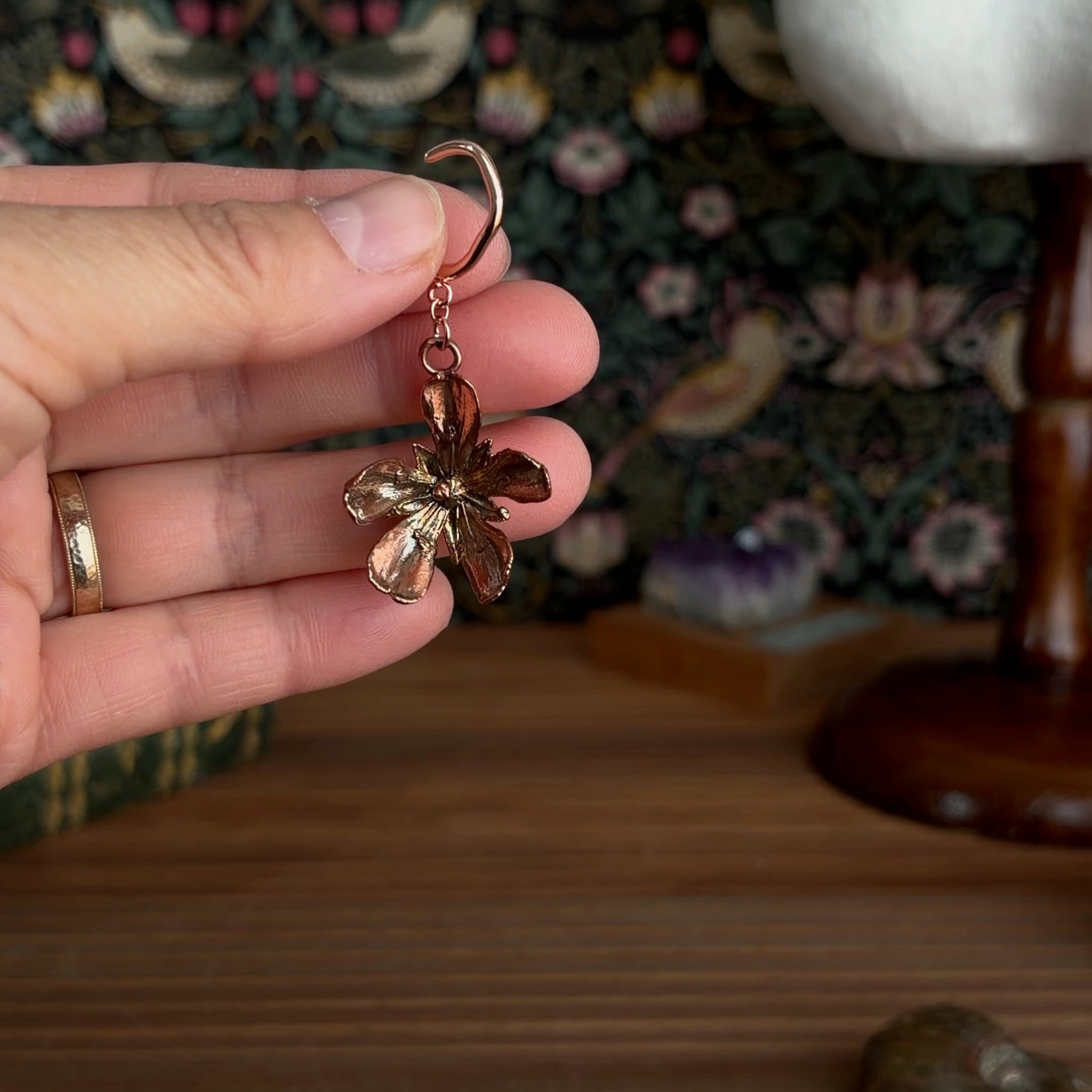 この大切な花の形を、変色を気にせず作品にすることができるエレクトロフォーミングは、まさに作者が求めていた技法でした。