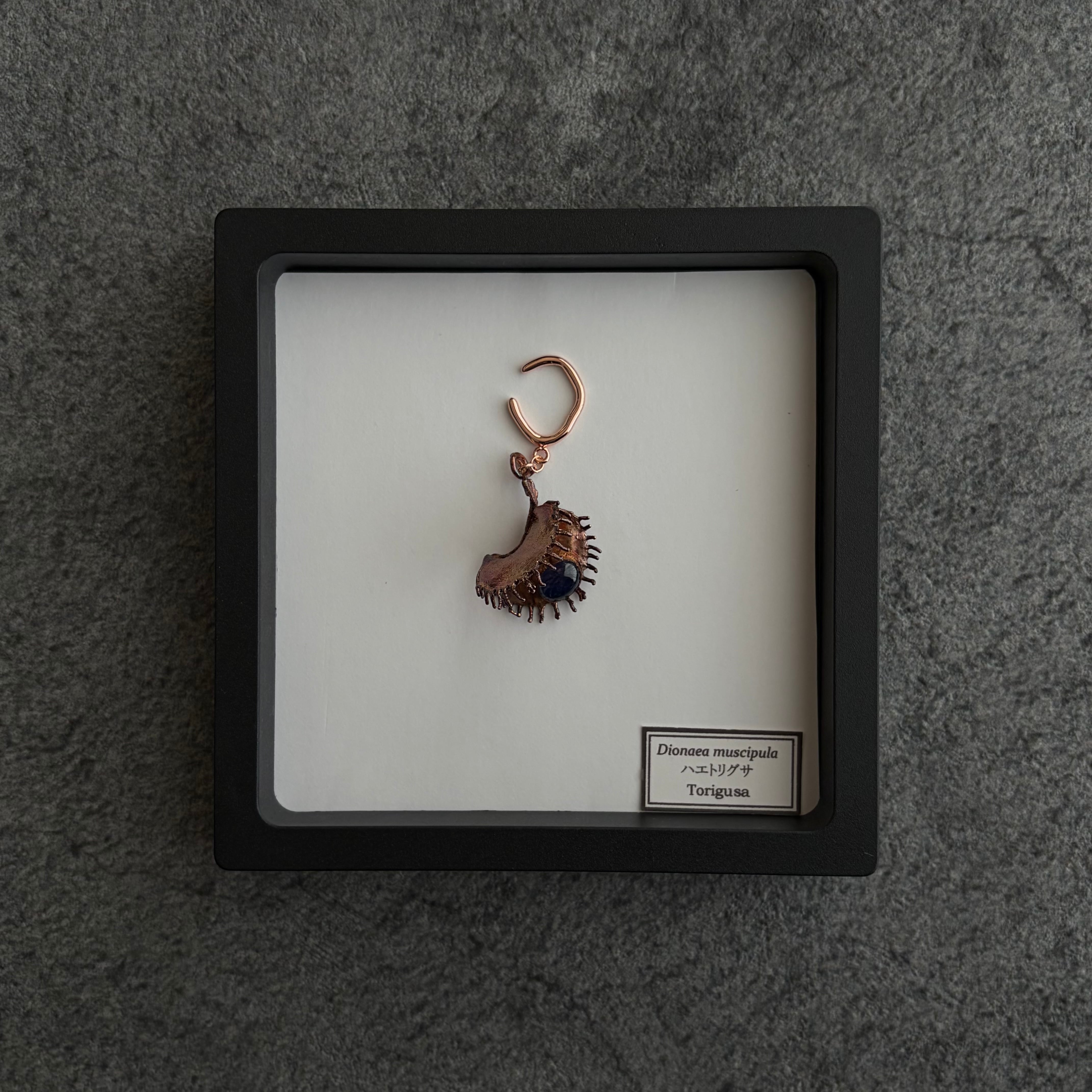作者が世界で一番大好きな食虫植物・ハエトリグサの捕虫葉で制作したイヤーカフです。