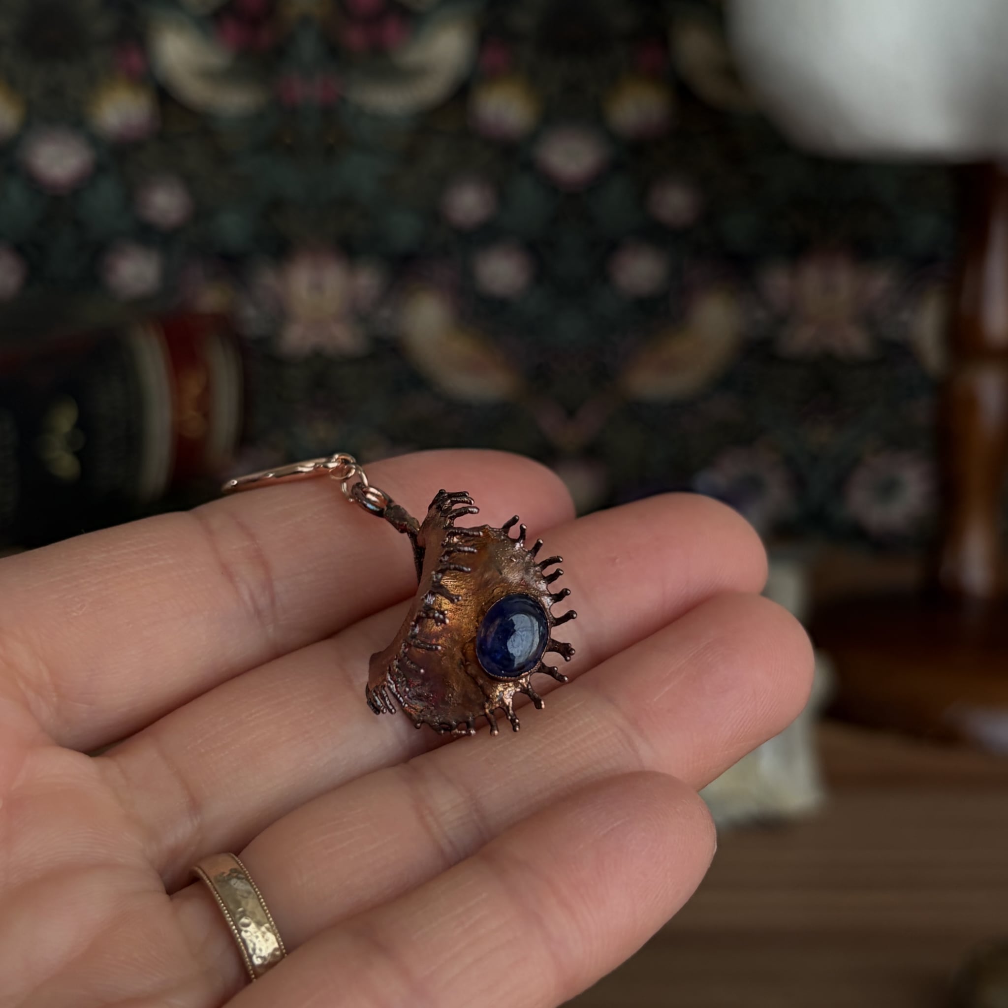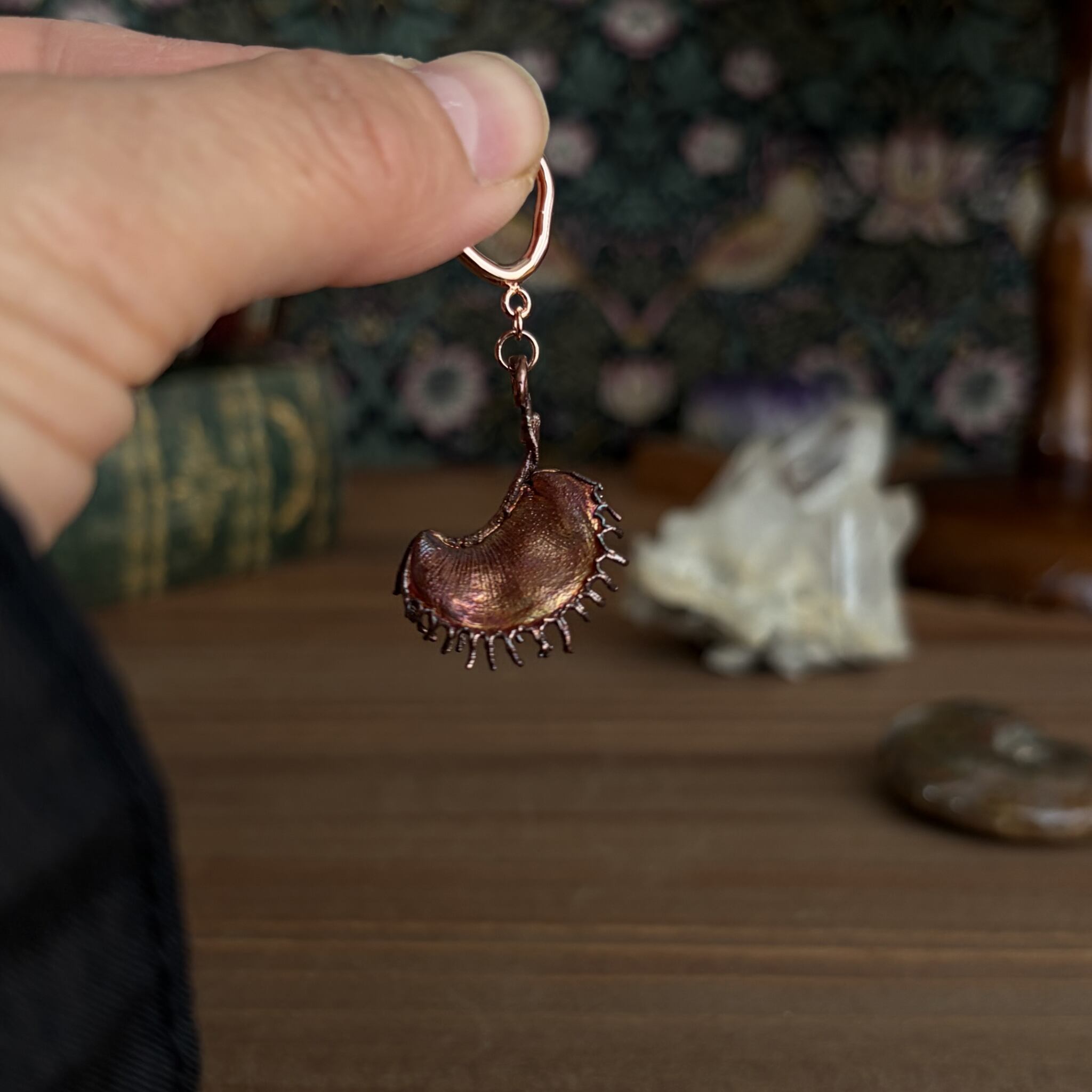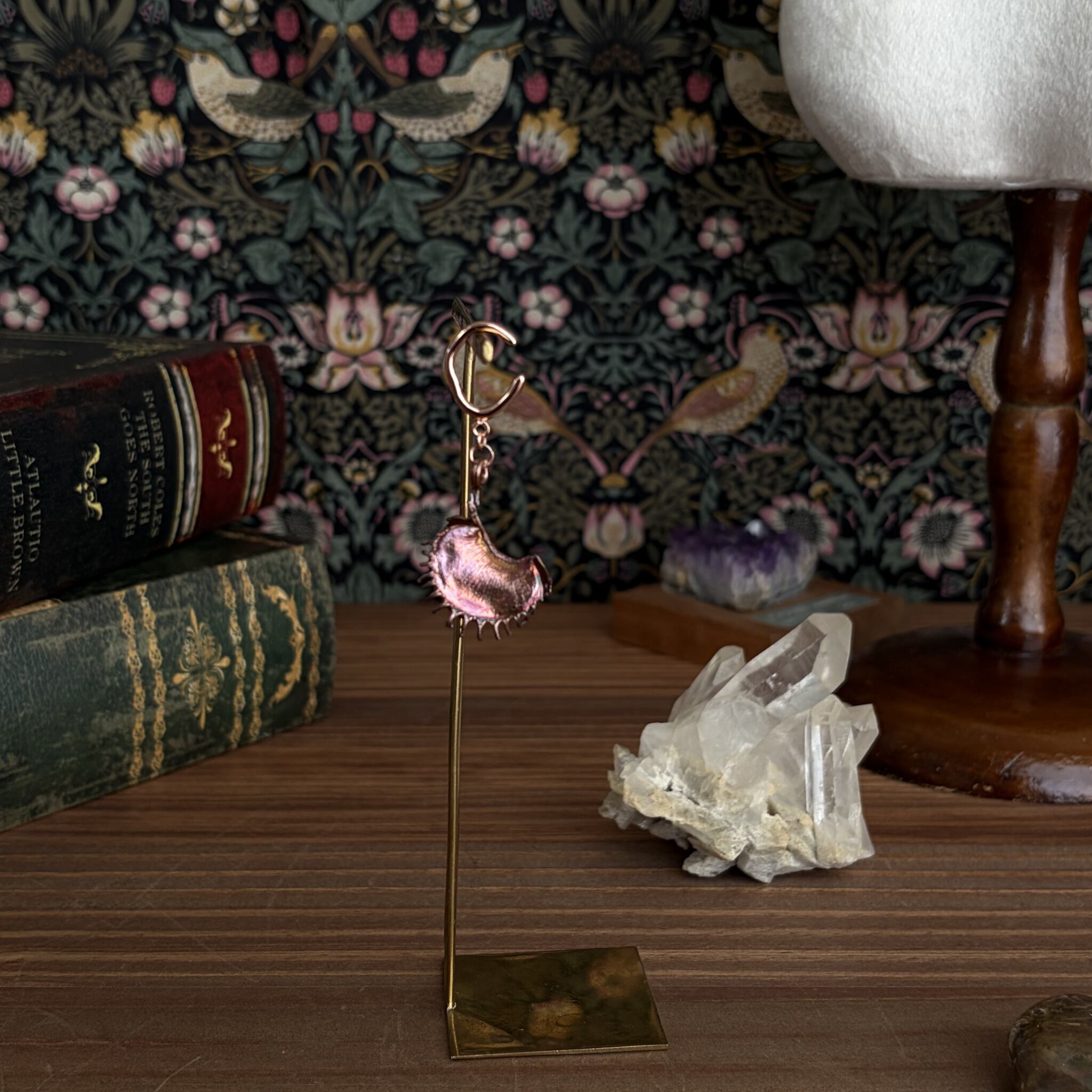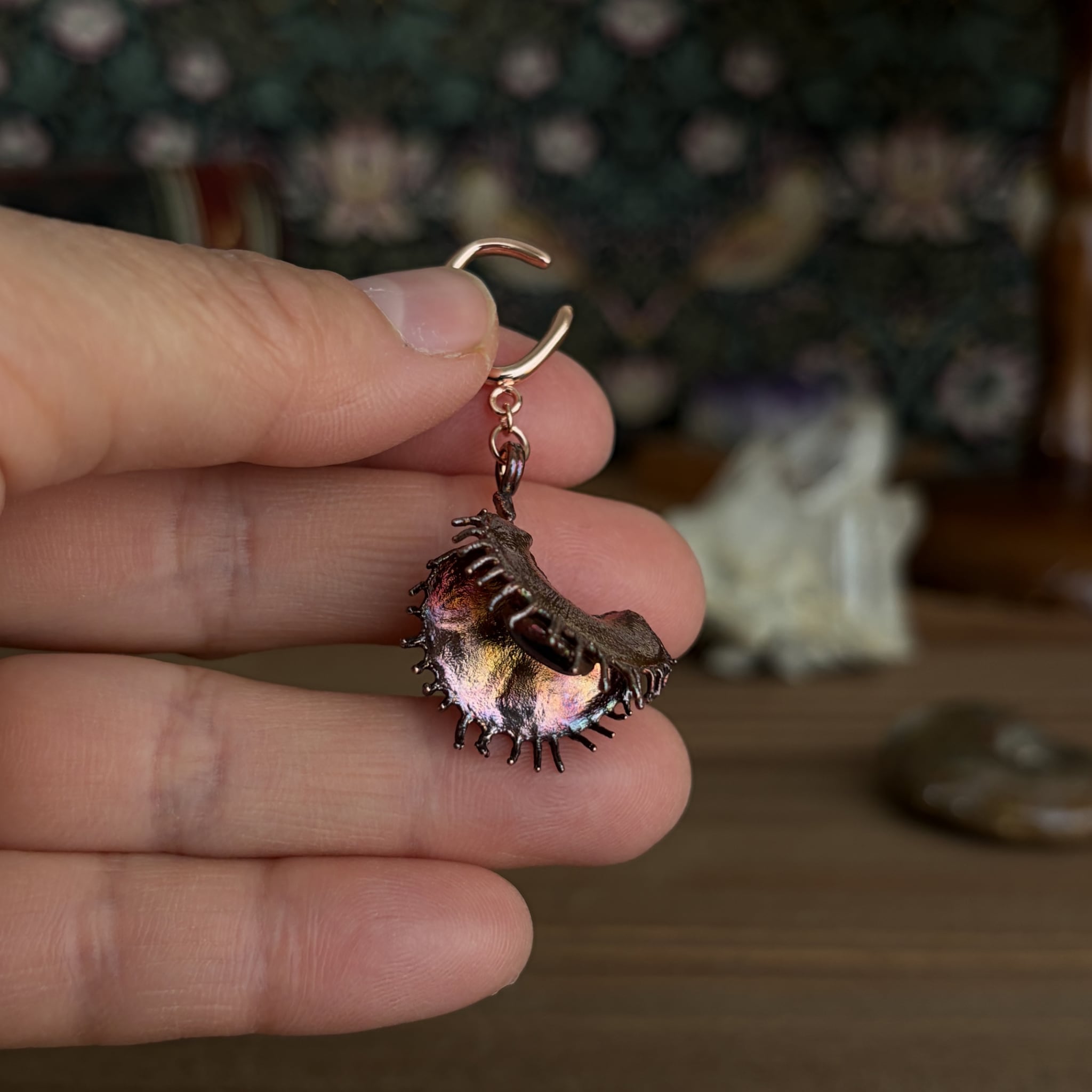 収穫した捕虫葉をエレクトロフォーミングという技法で銅めっきし、アクセサリーに仕立てているため、銅の中には本物のハエトリグサが入っています。