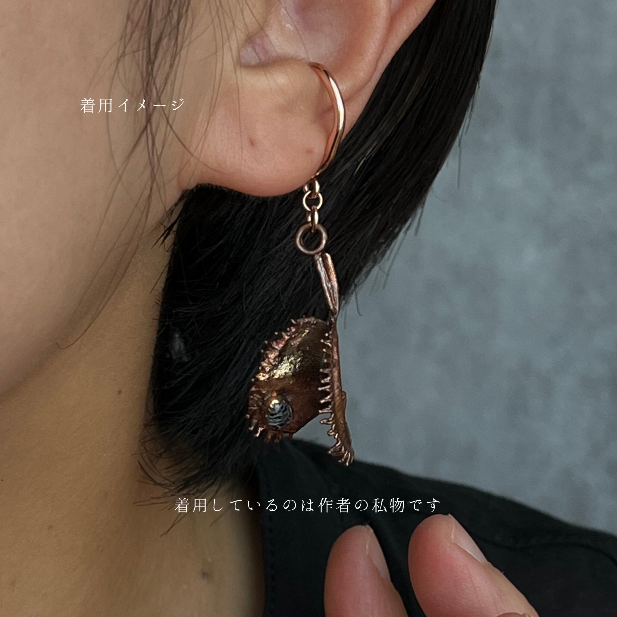 その2:「銅になったハエトリグサの花のイヤーカフ」と一緒に採集し、片耳はハエトリグサのお花、もう片耳は捕虫葉と、アシンメトリーなハエトリコーデとして楽しみます。