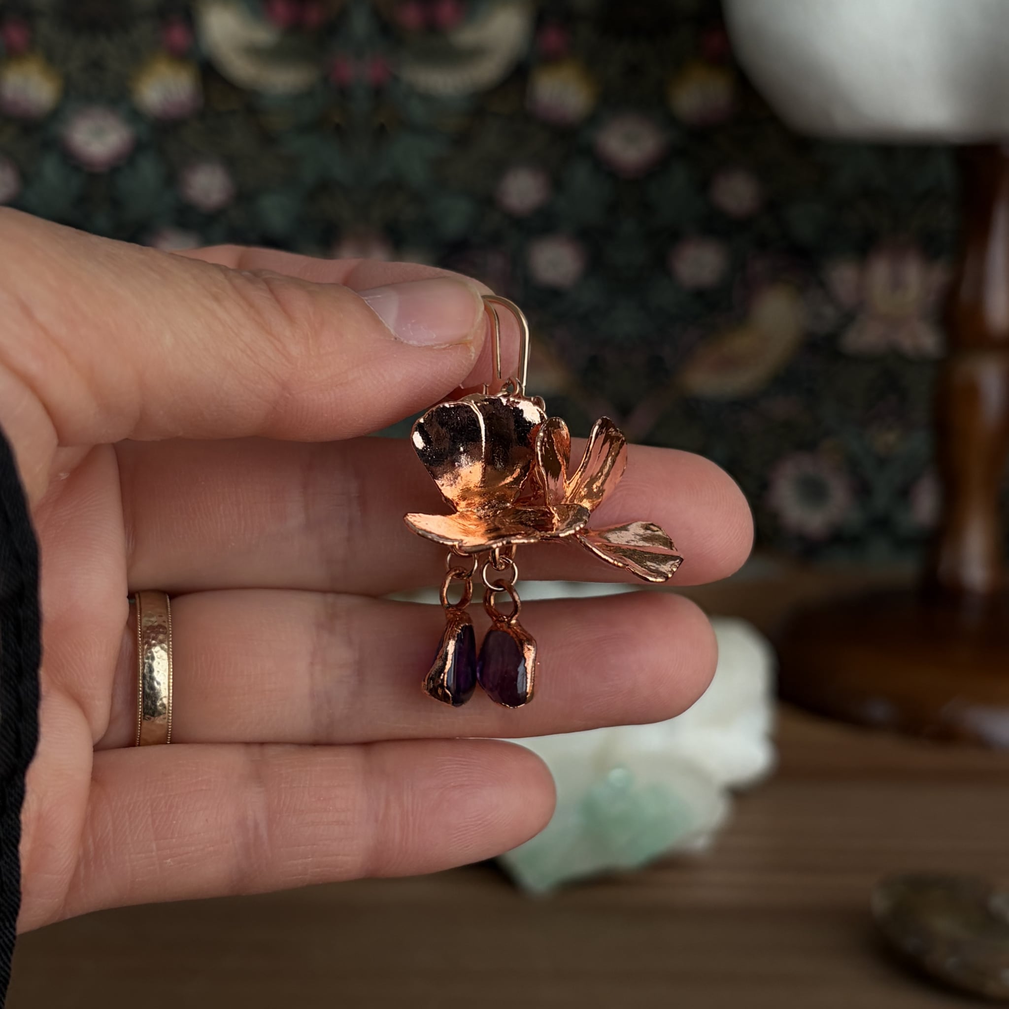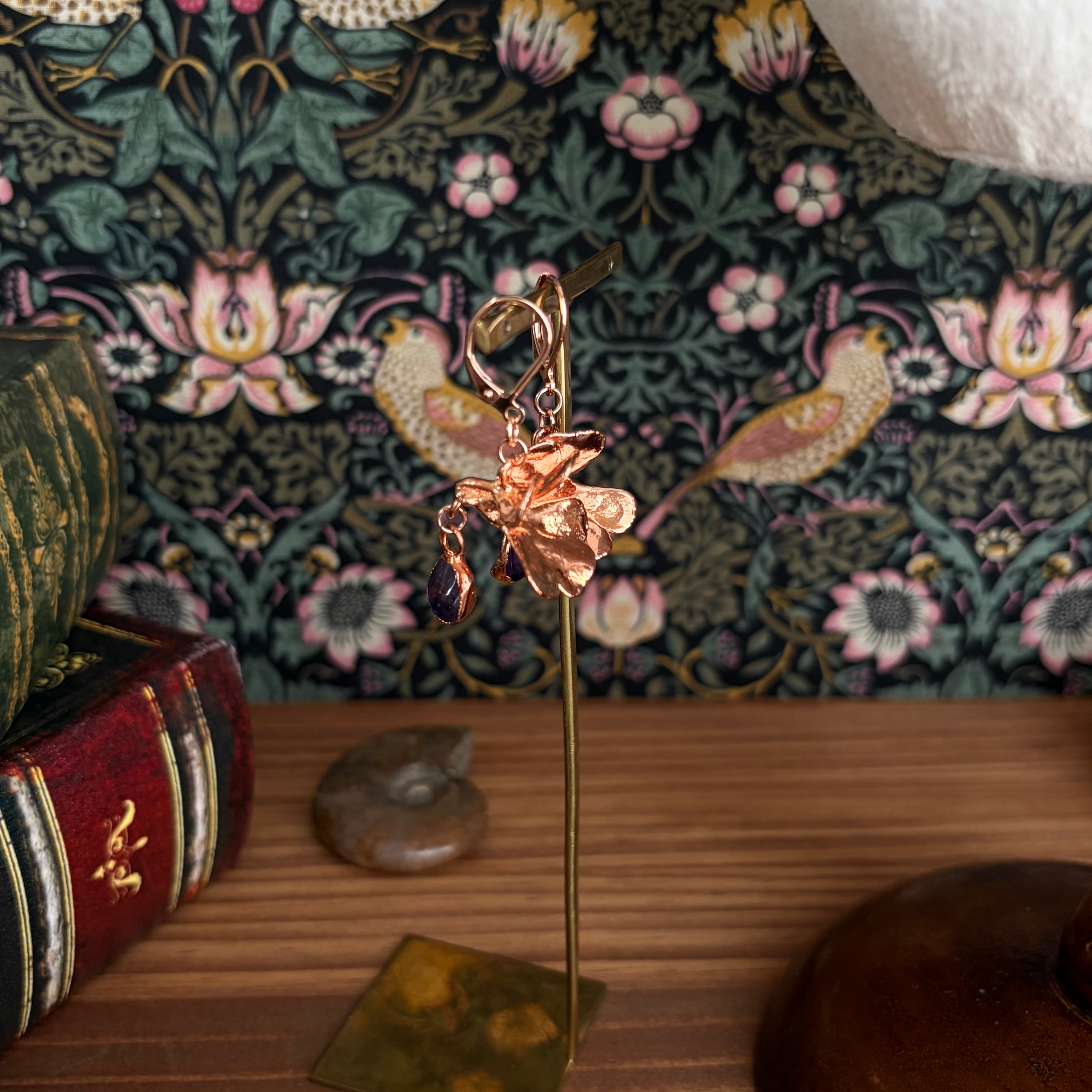ムシトリスミレ「エッセリアナ」の花をエレクトロフォーミングし、ピアス(イヤリング)に仕立てました。
