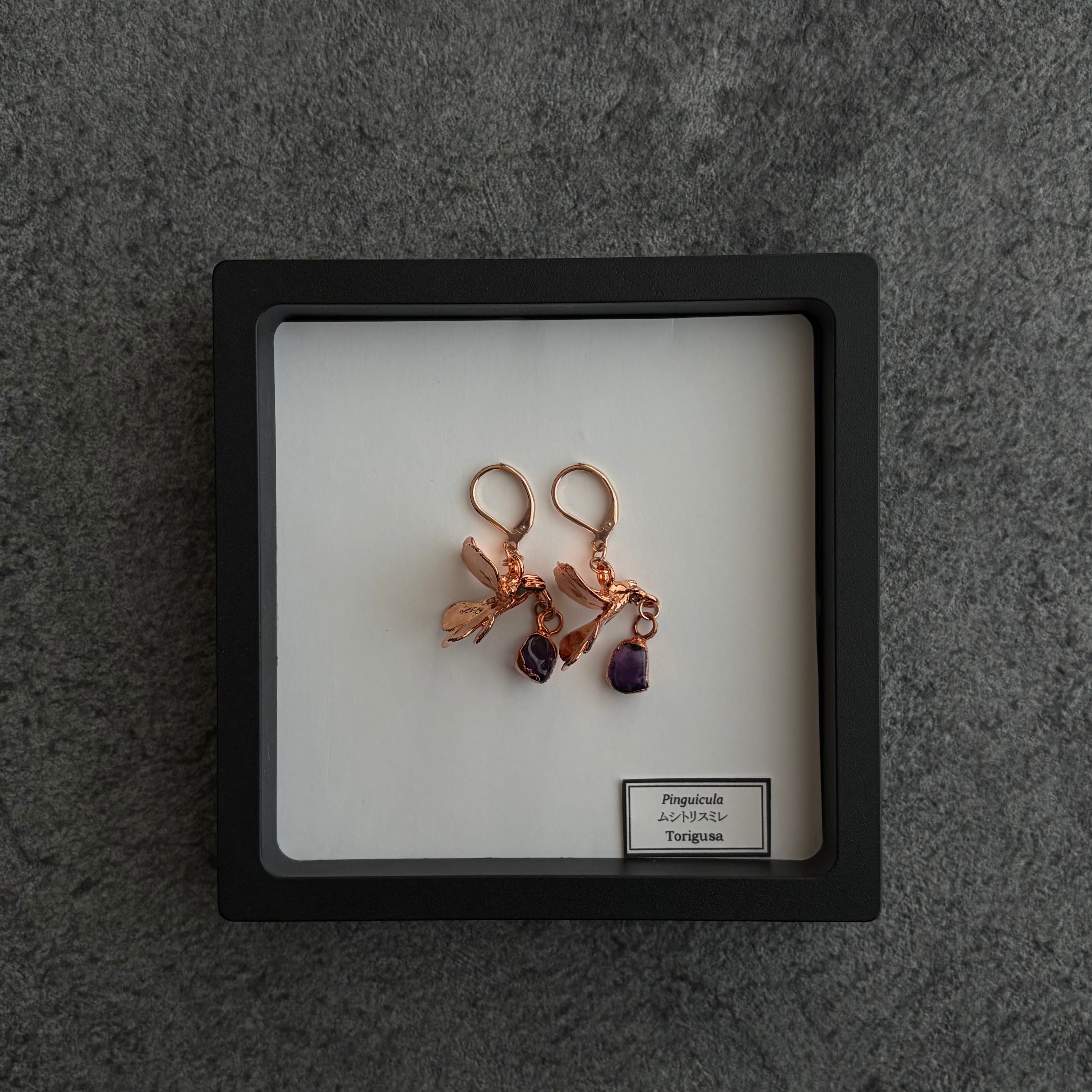 蜜を宝石に変えたムシトリスミレのピアス107(P.esseriana ×アメジスト)
