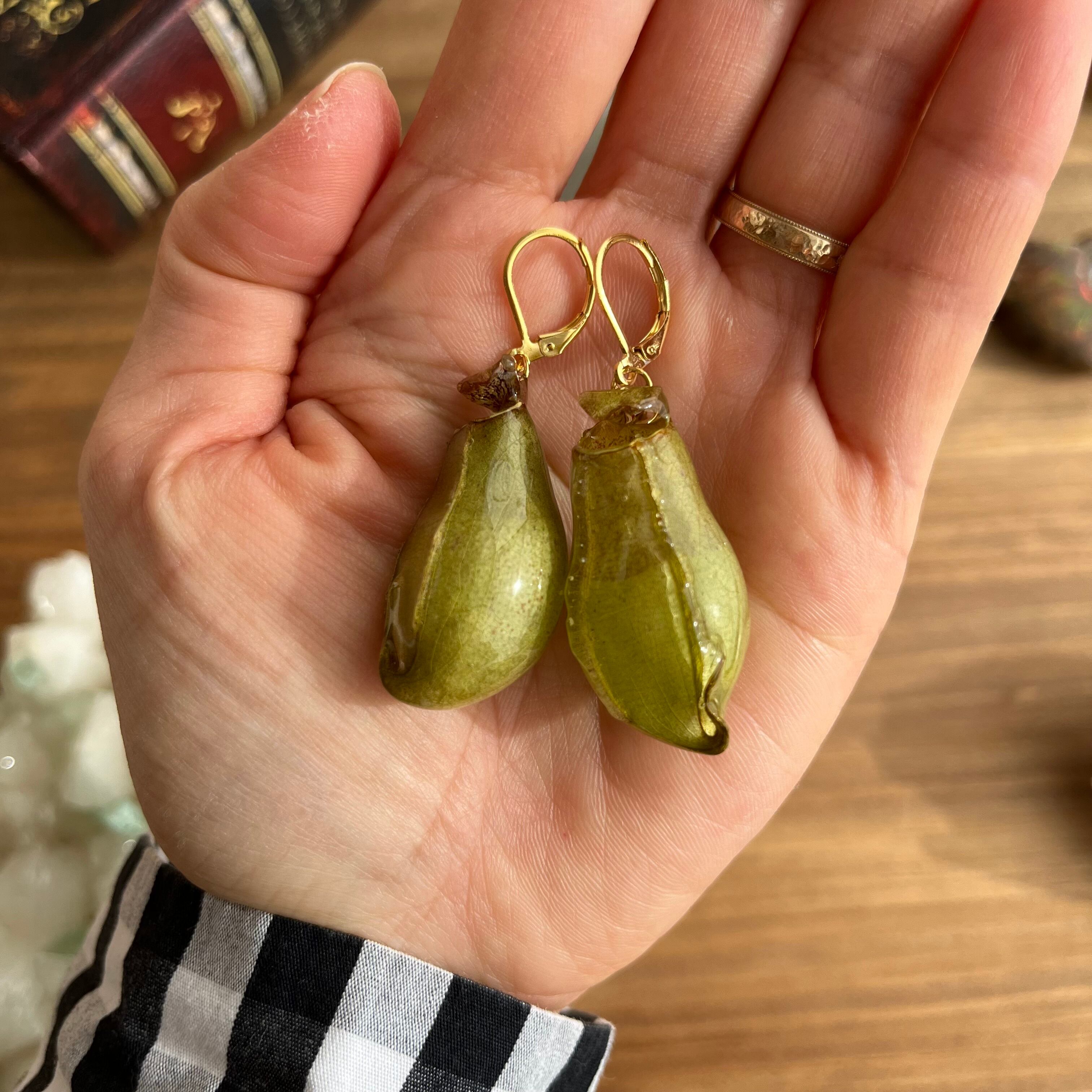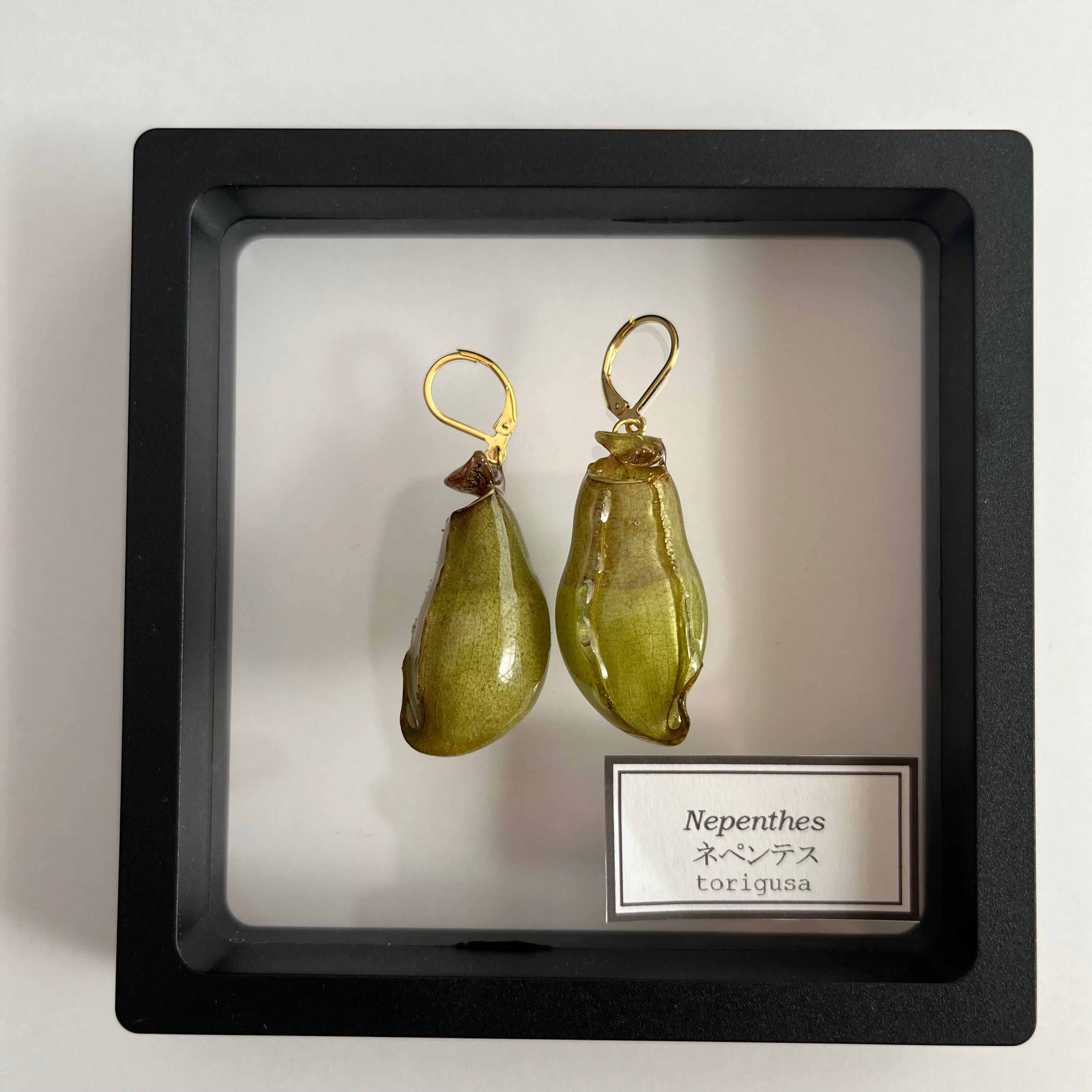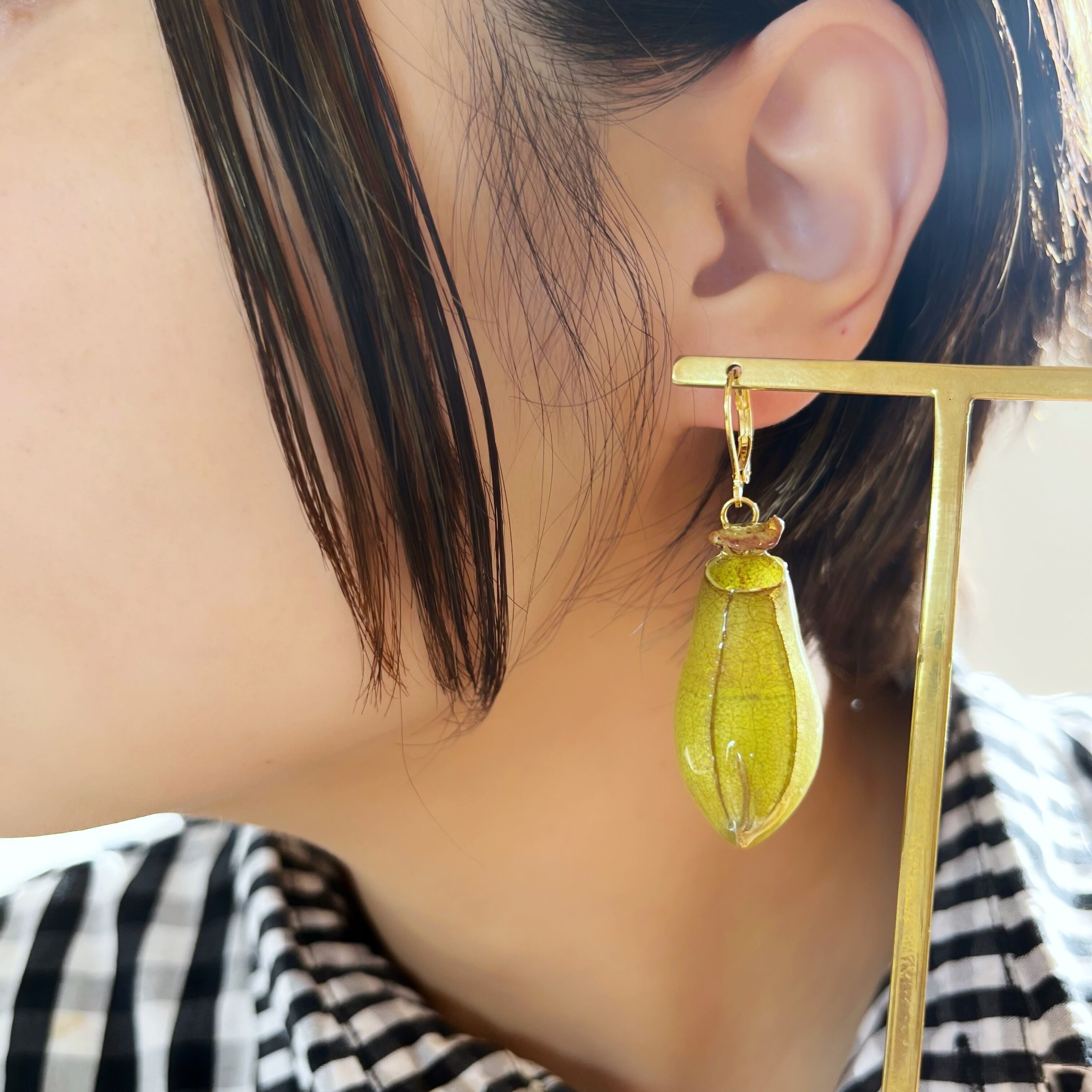 ウツボカズラのピアス、しかも本物を使用したものはどこを探してもなく、身に付けたら人目を引くこと請け合いです。