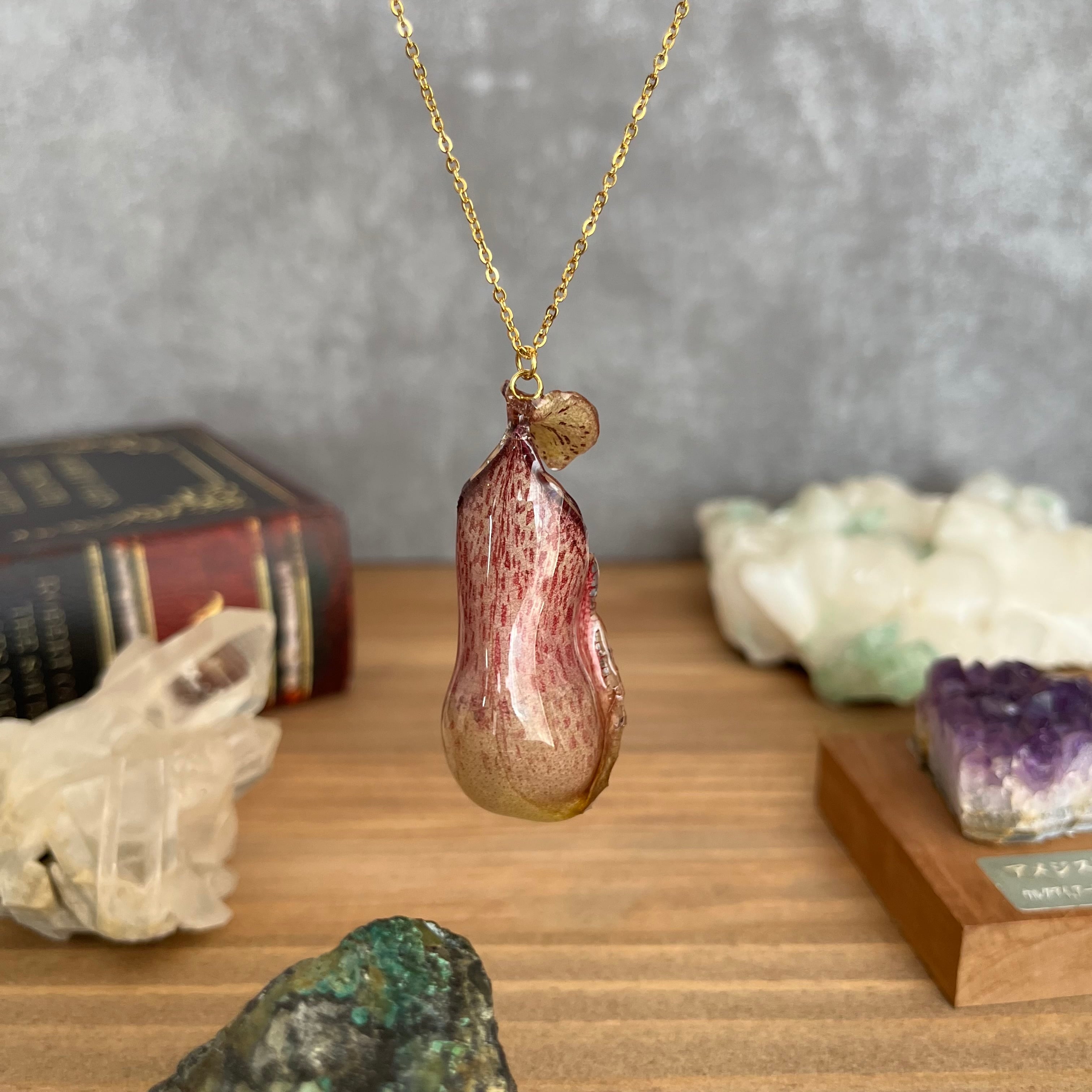 ウツボカズラ(N.hamata x veitchii)の捕虫袋でお作りしたネックレスです!
