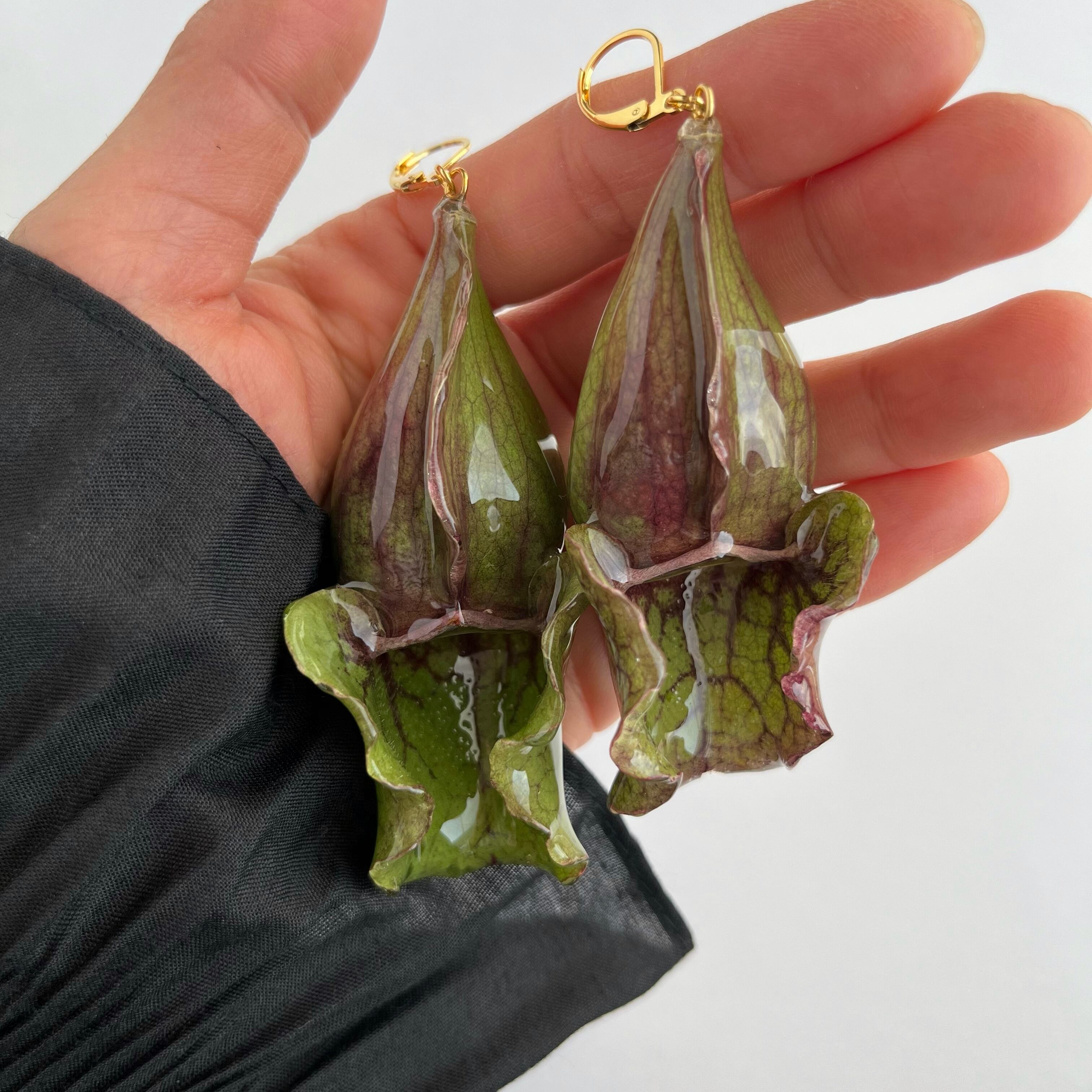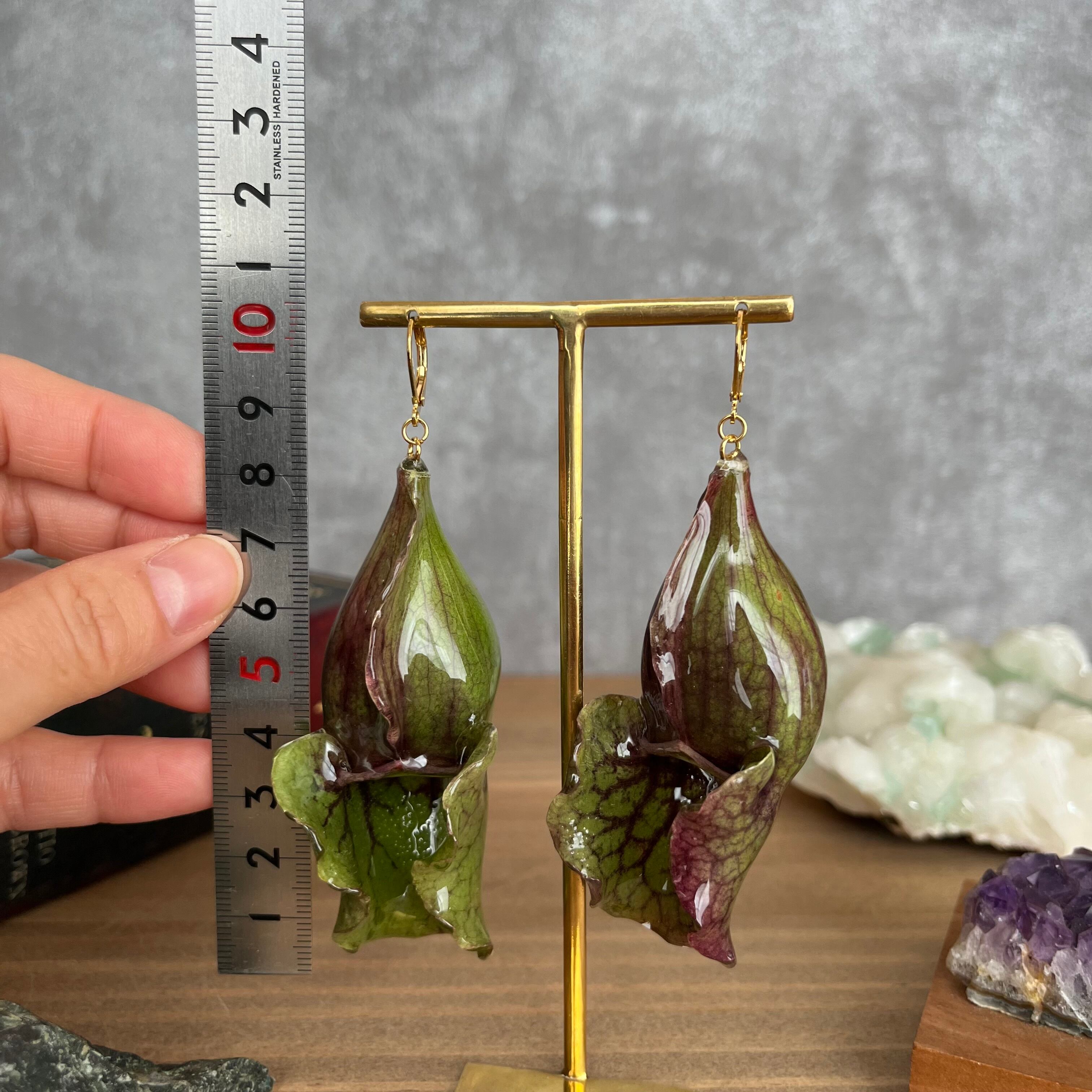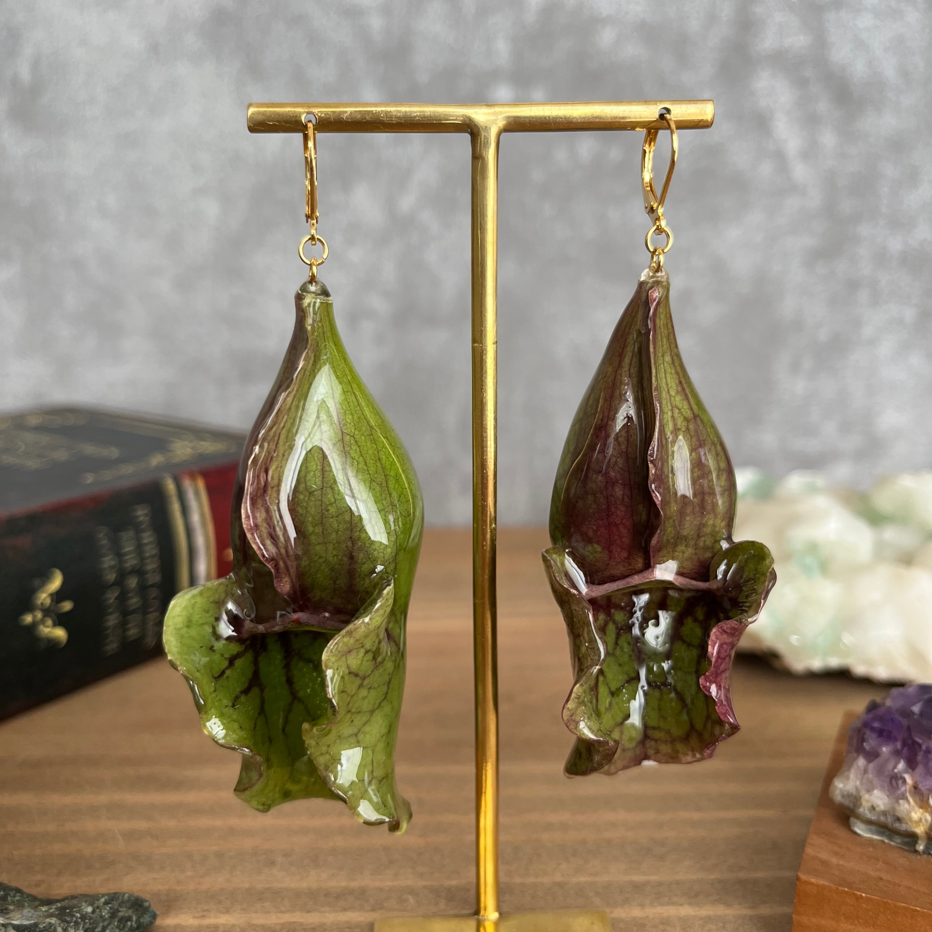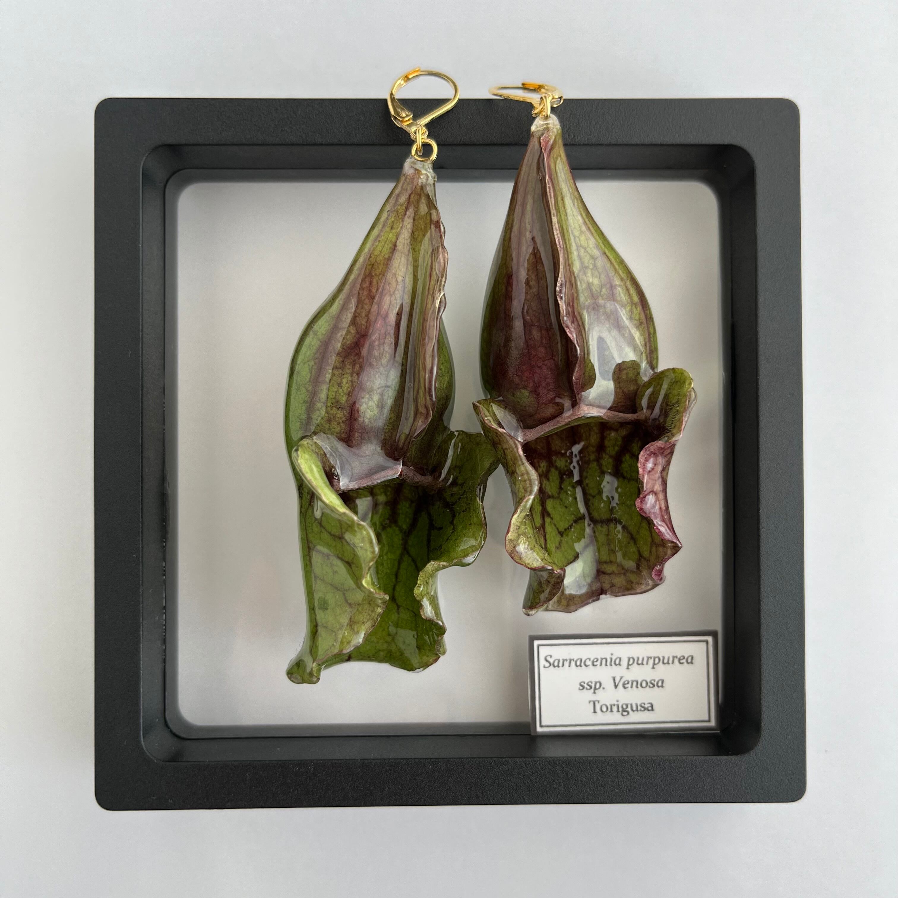 ボリューム満点なサラセニア・プルプレア「ベノーサ」の捕虫葉で制作したピアスです。
