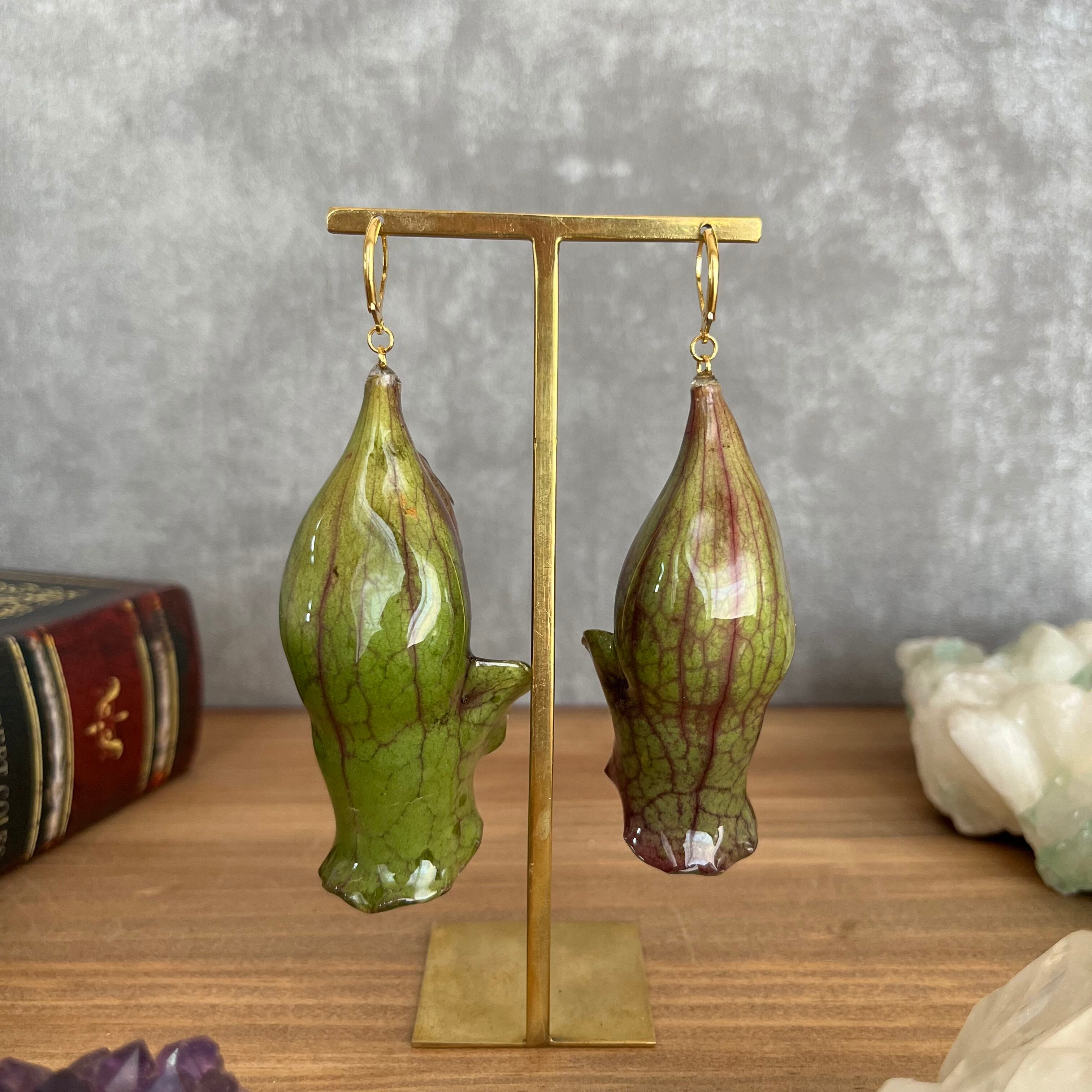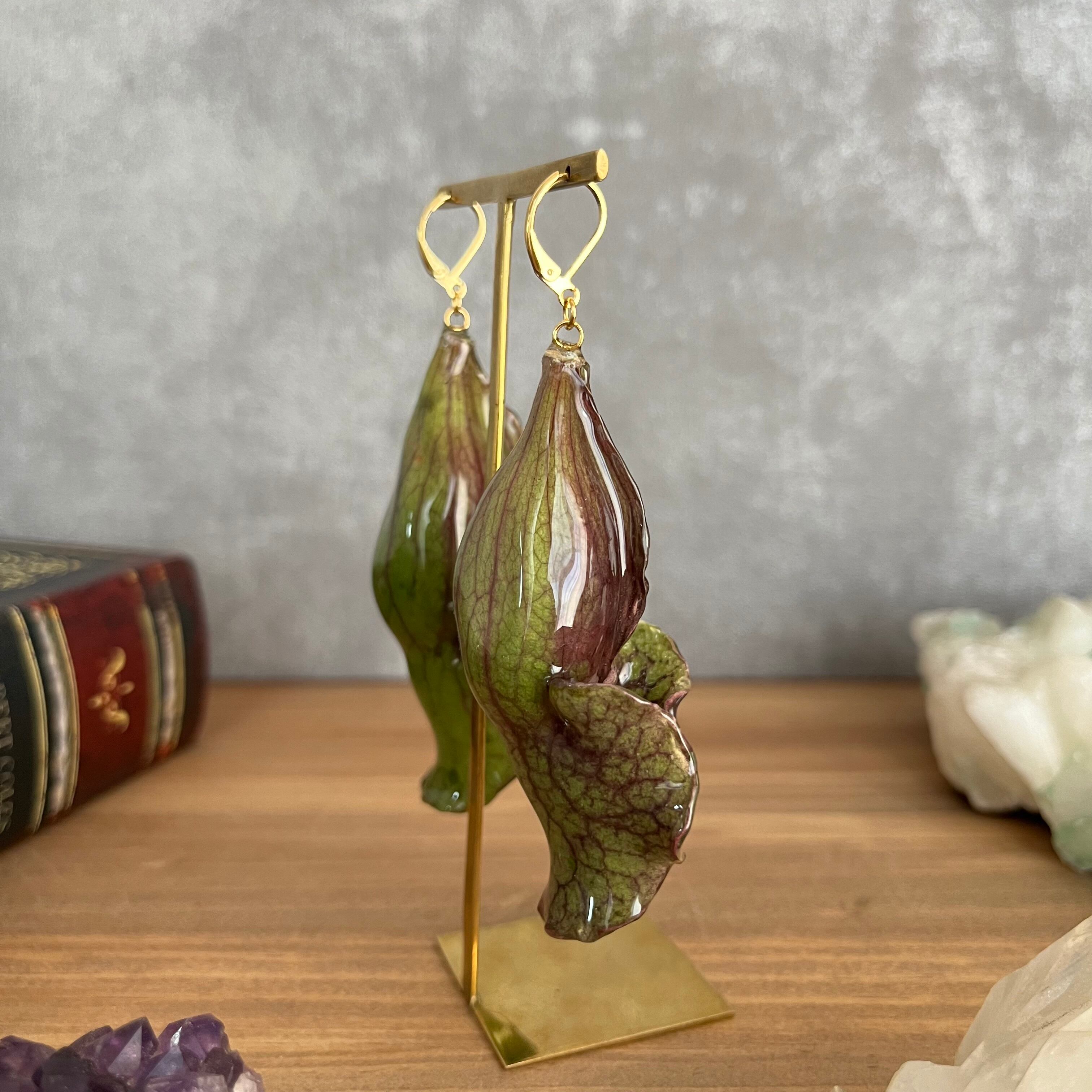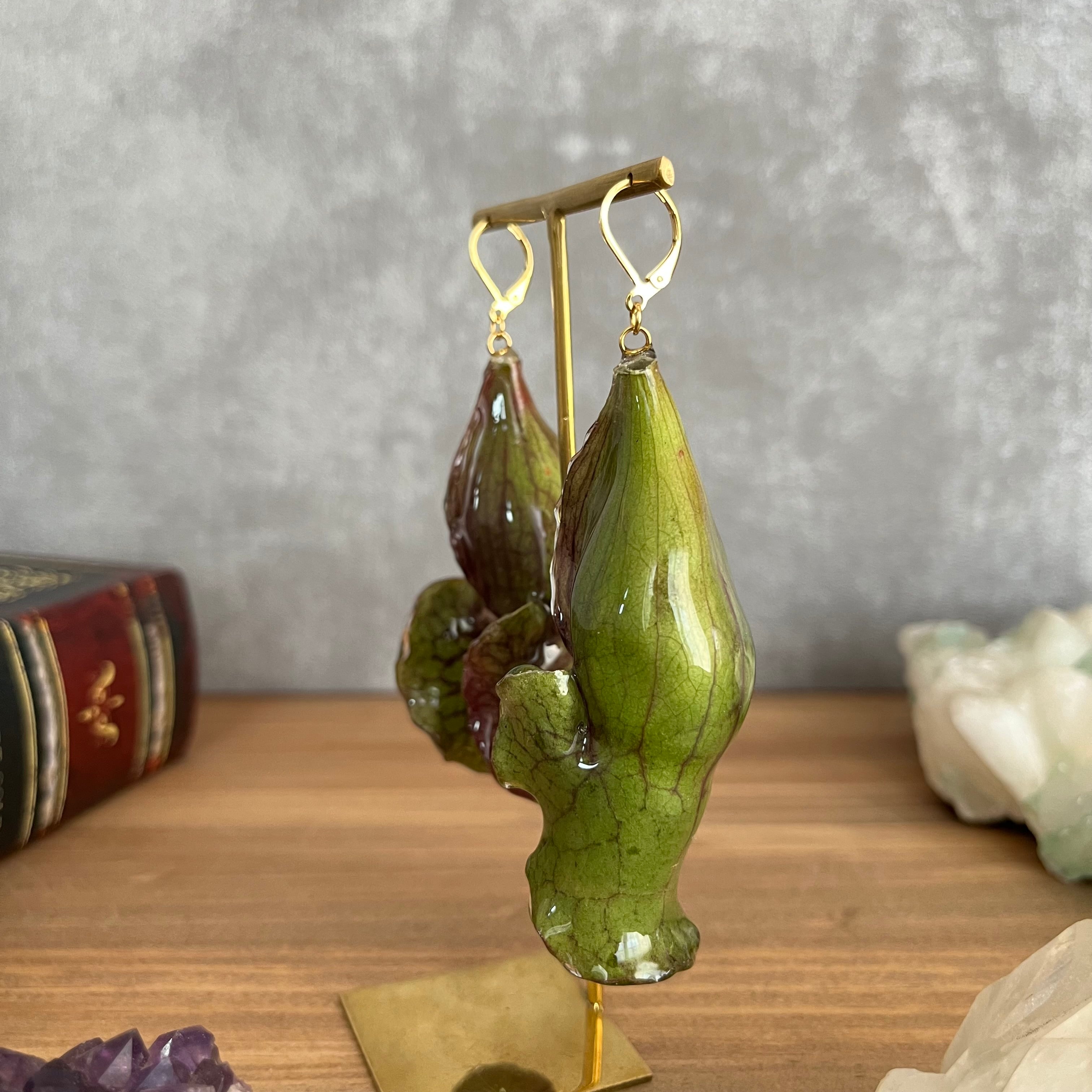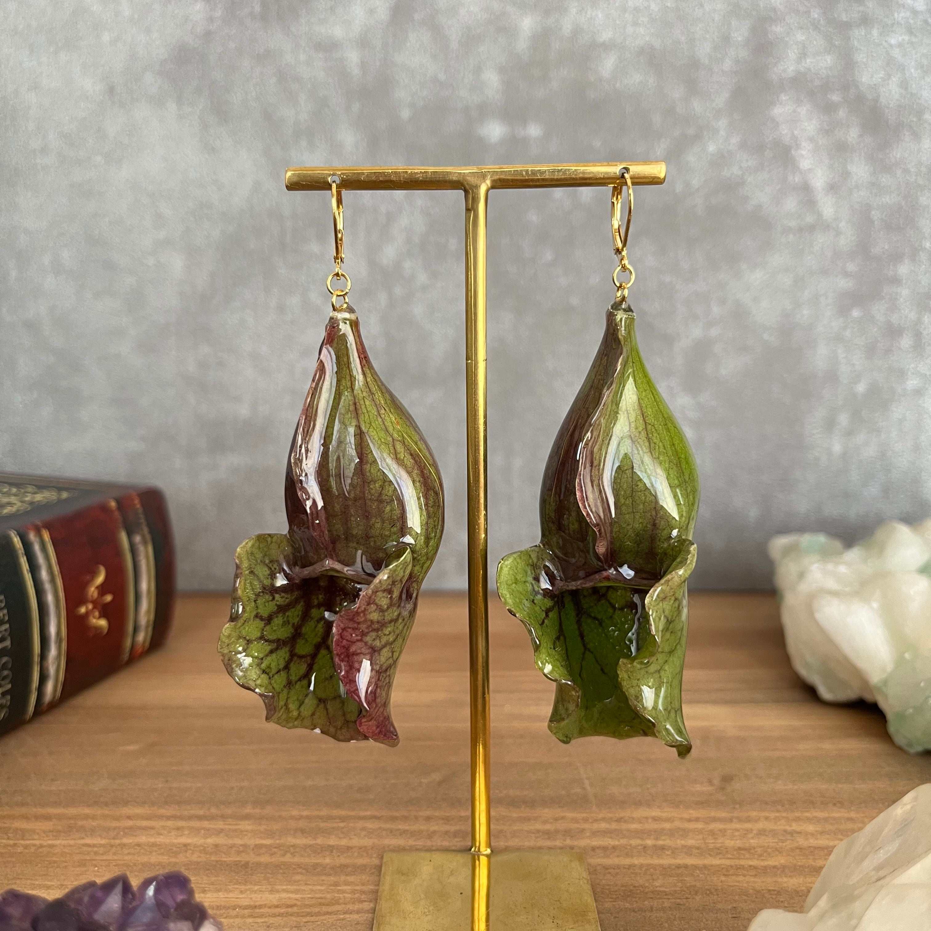 ボリューム満点なサラセニア・プルプレア「ベノーサ」の捕虫葉で制作したピアスです。