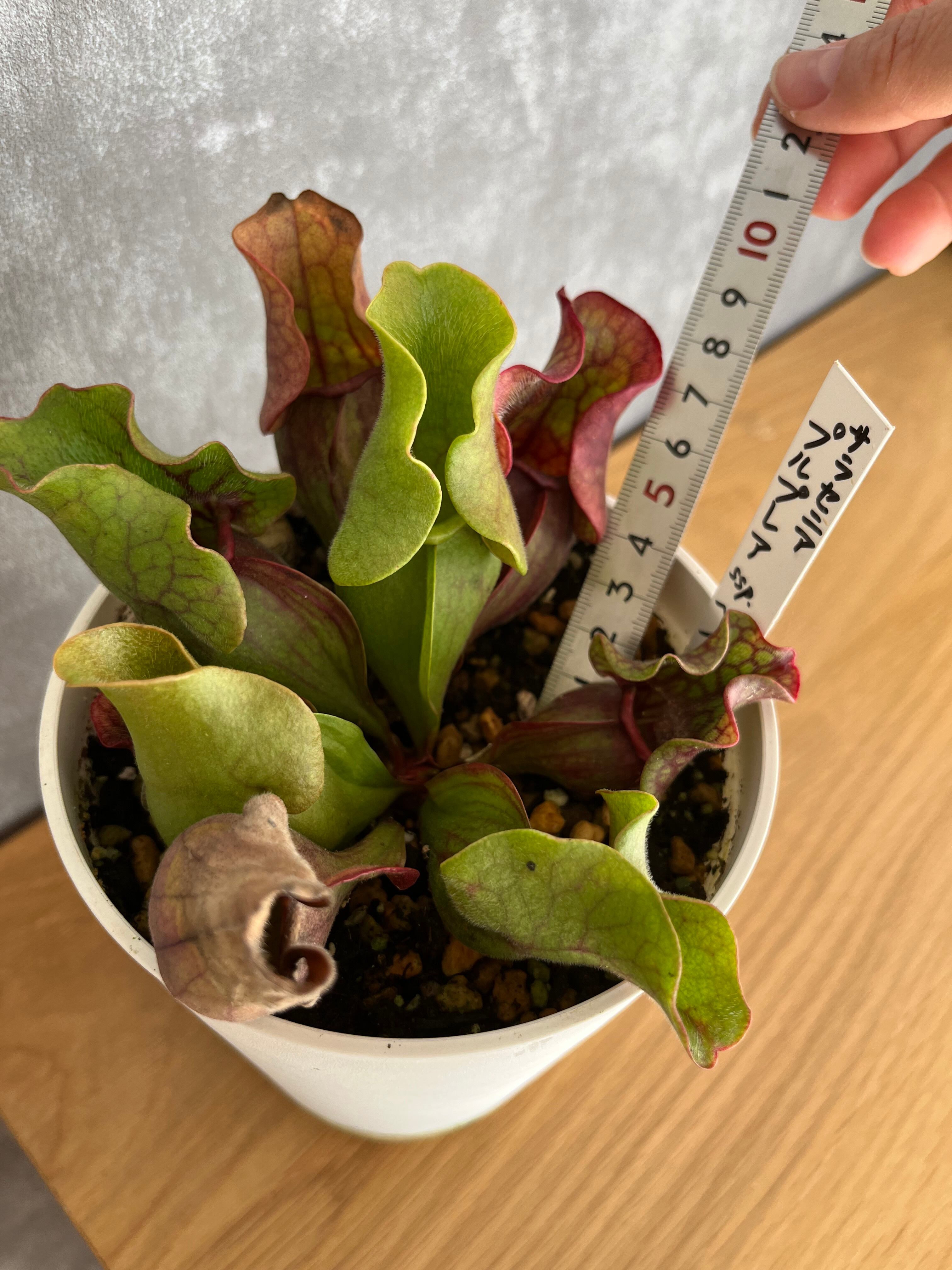 さて、本作に使用したサラセニア・プルプレアは、サラセニアの中でも丸っこくてプリプリな捕虫葉が特徴的なタイプ。