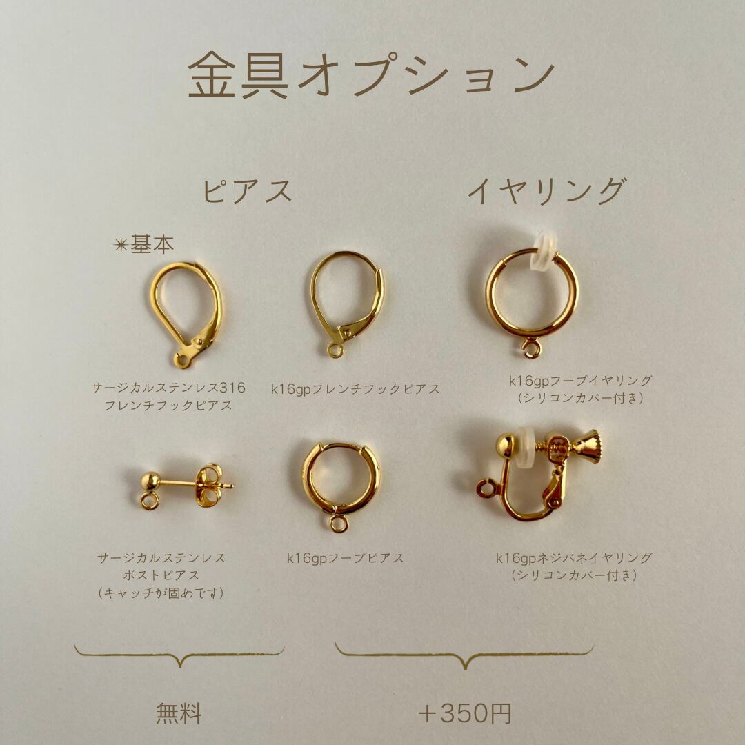 ⚫︎高品質なk16gpのピアスや、イヤリングパーツへの変更も可能ですので、オプションよりお選びください